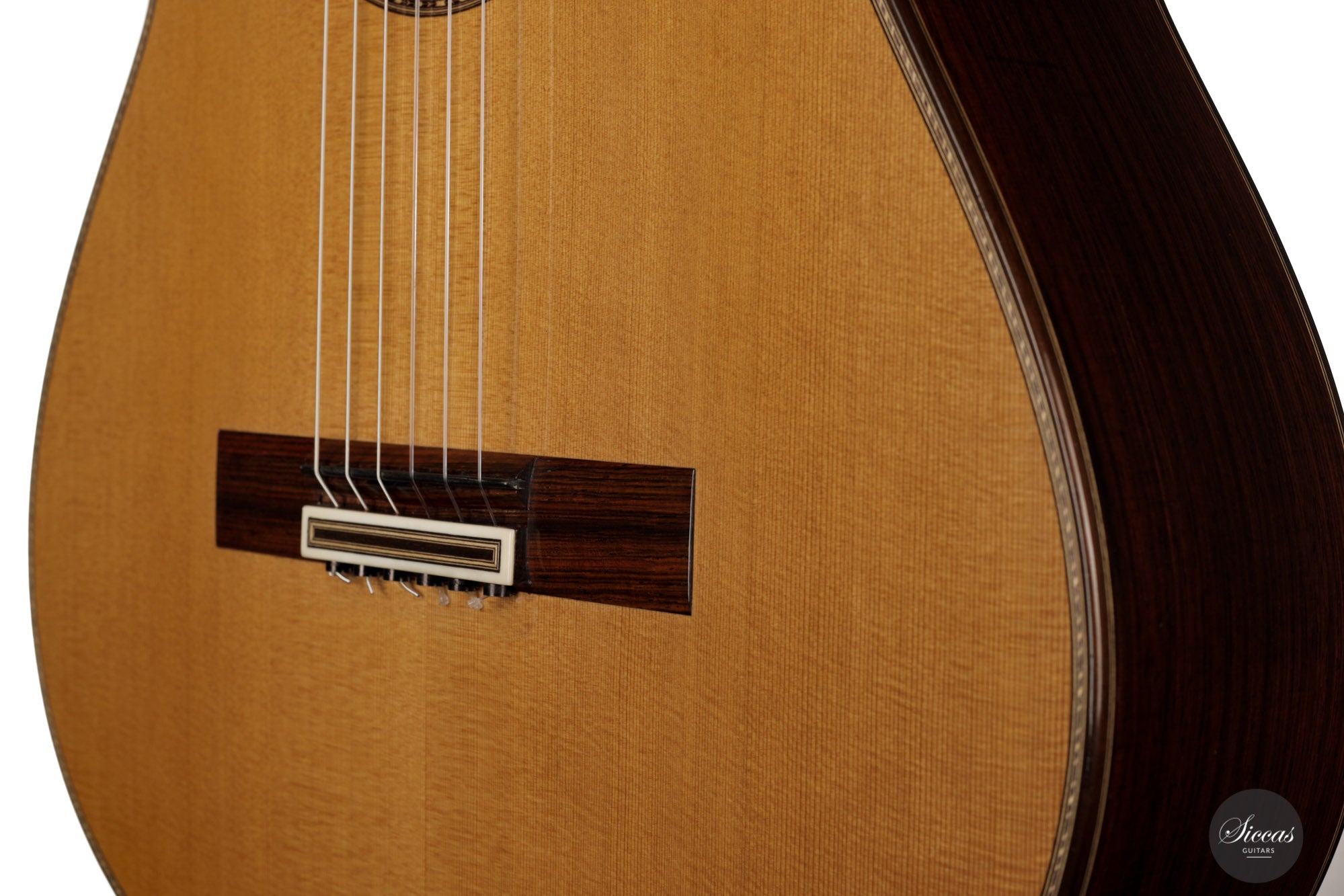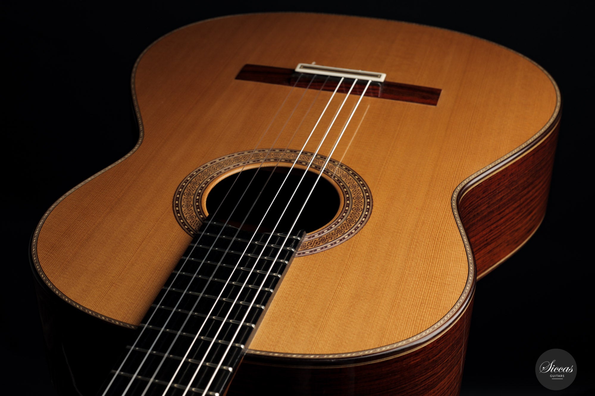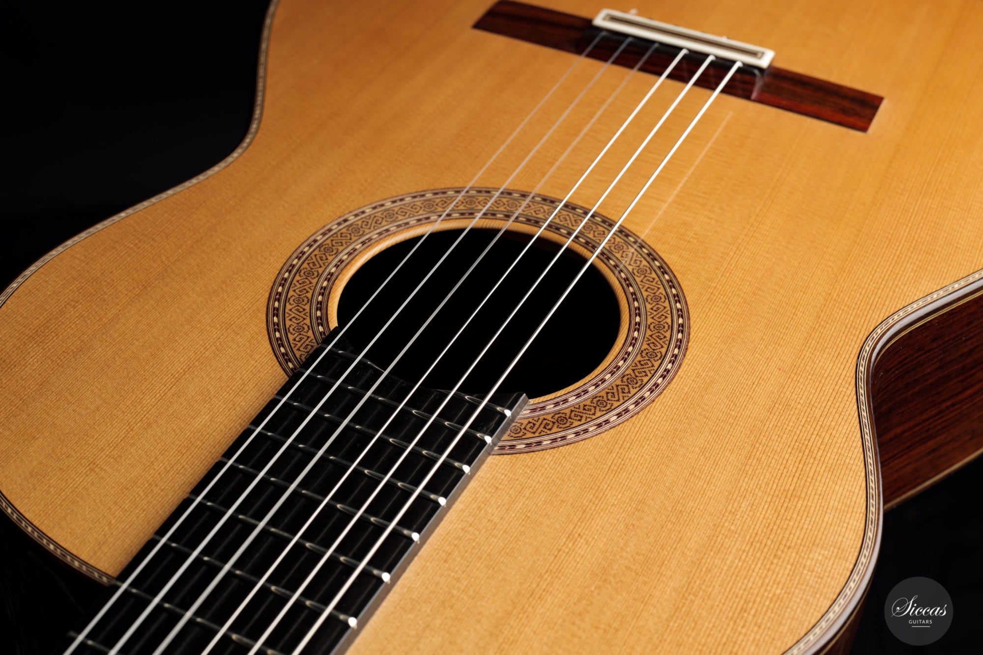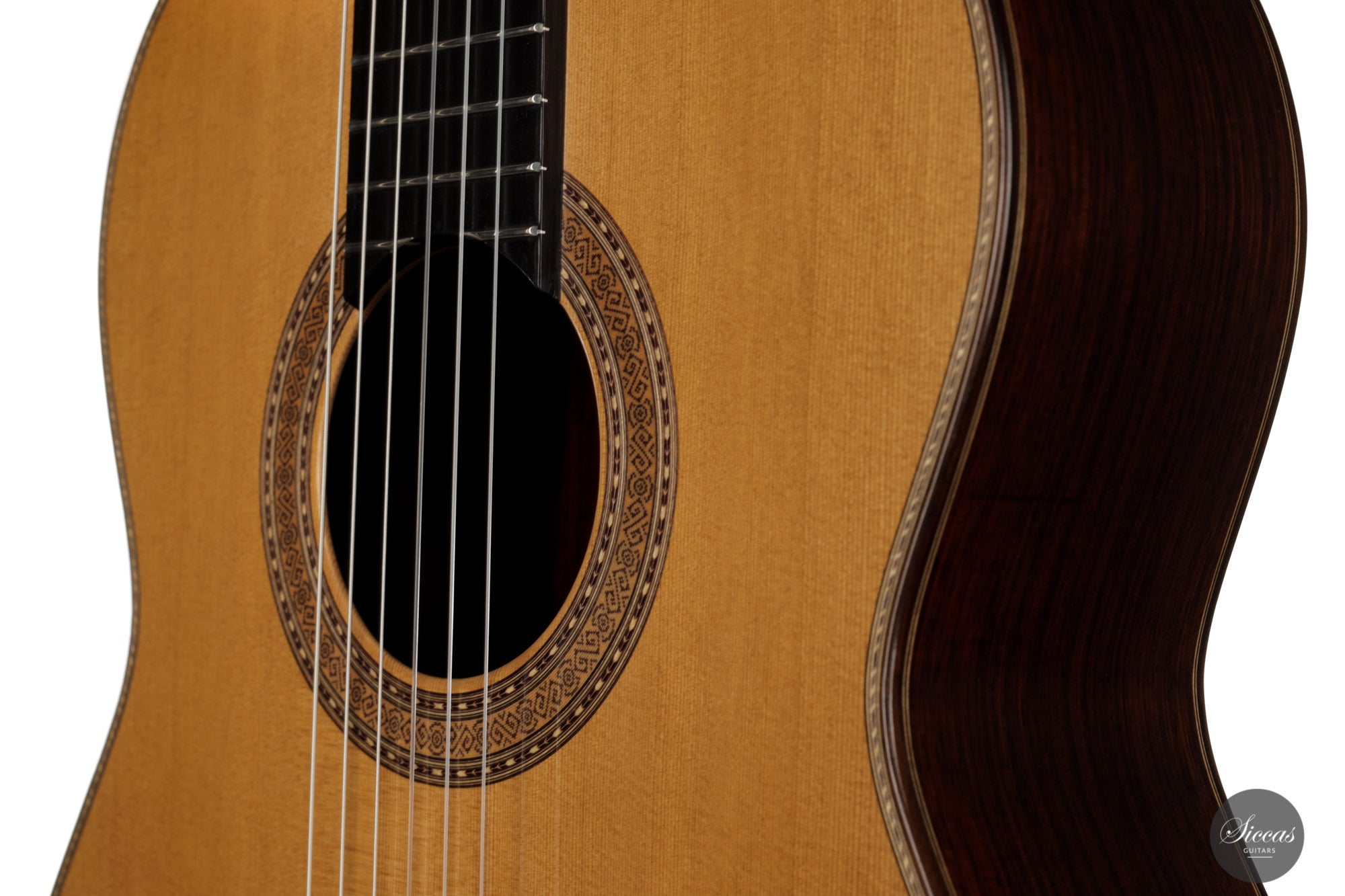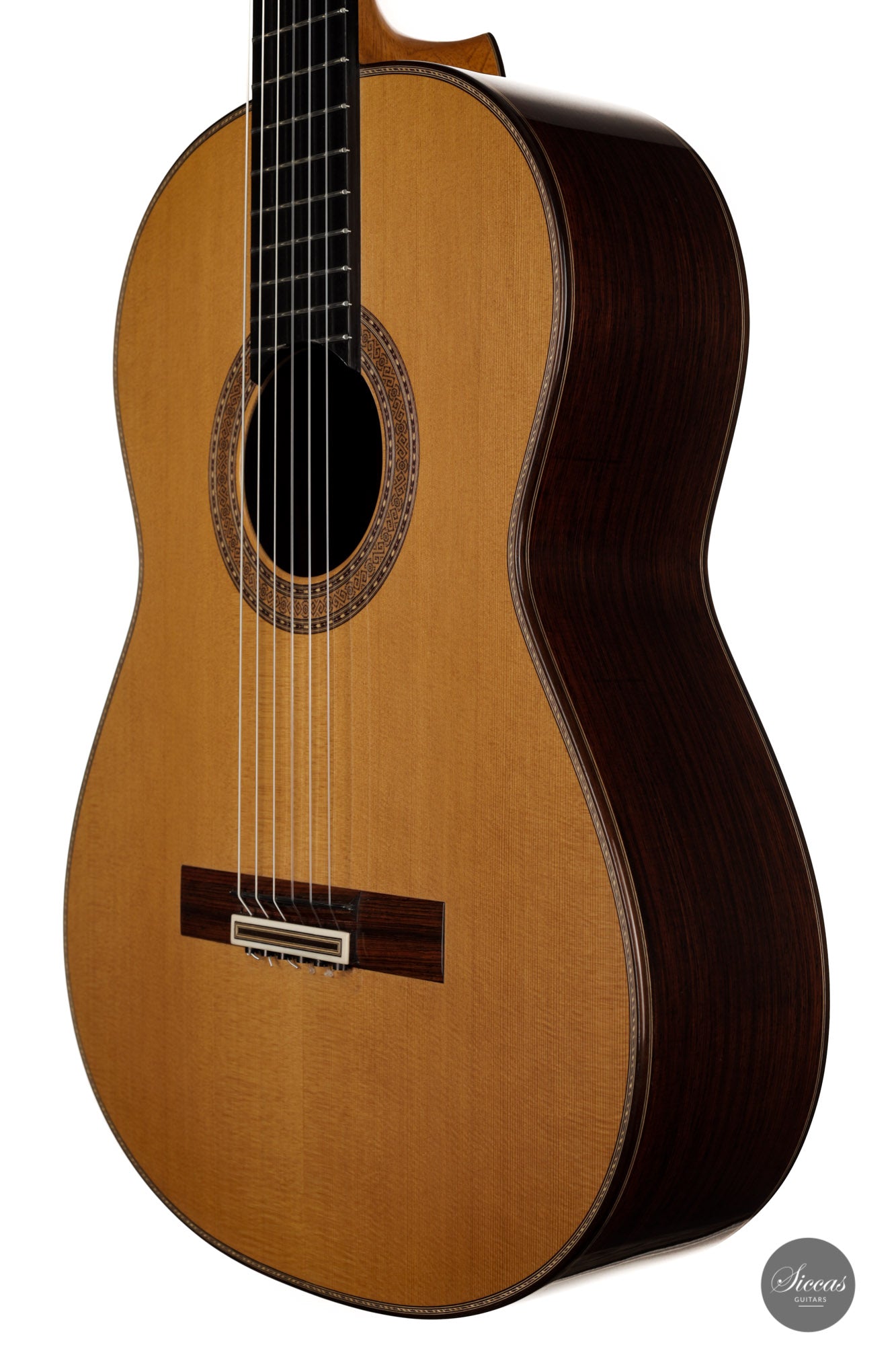 The Concierto model has a fantastic sound projection and volume, making it ideal for concert performances. It has a clear and refined tone, very balanced with a long bell-like sustain. Its voice is indeed very satisfying and this instrument projects strongly so that it can easily fill an auditorium. The wide range of sound colors, the great dynamic possibilities, and the generous resonance make this guitar a truly expressive instrument. Also the craftsmanship and the excellent timber are strikingly beautiful. A gorgeous cedar top matched in an alluring harmony with the back and sides made of superb Cocobolo.