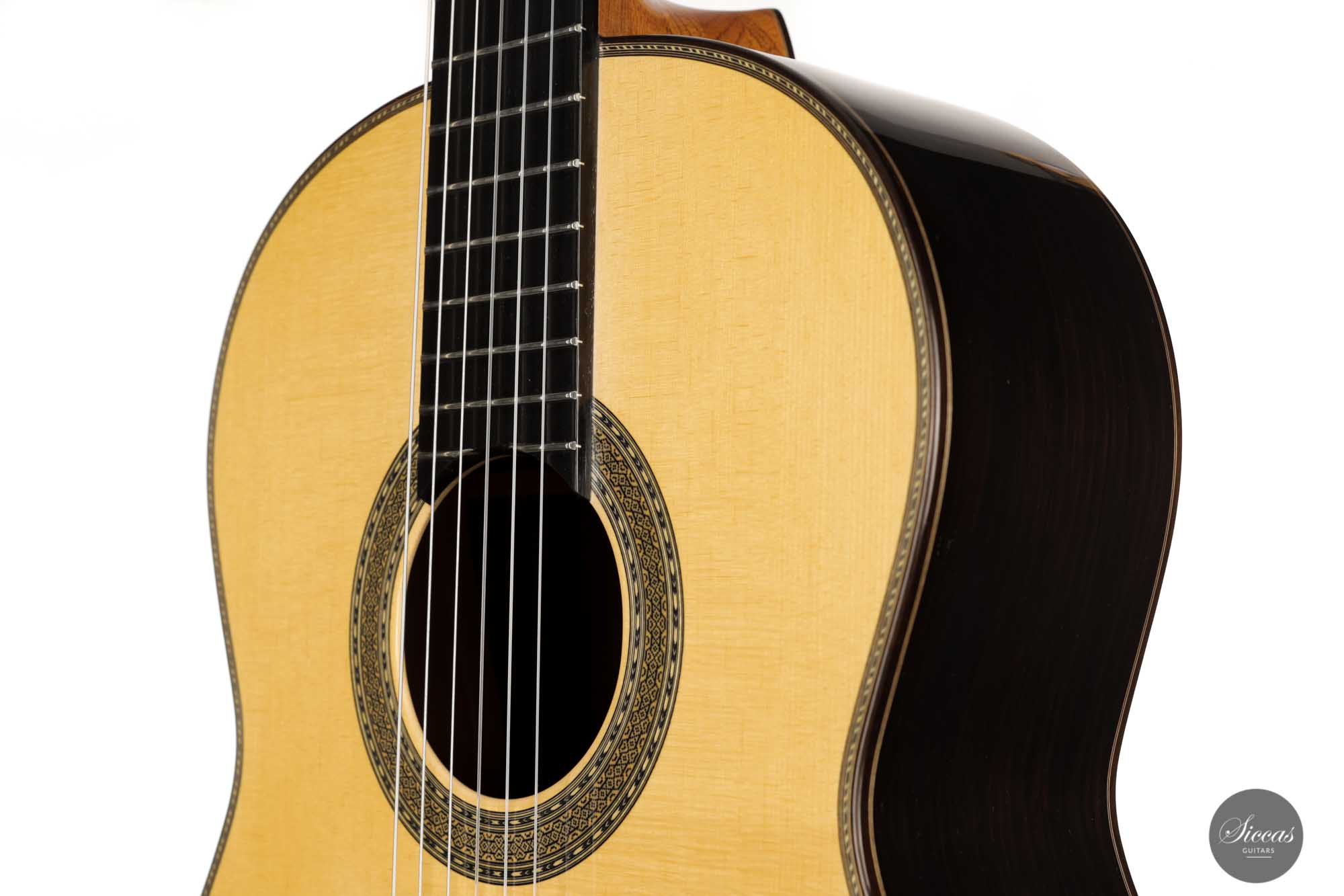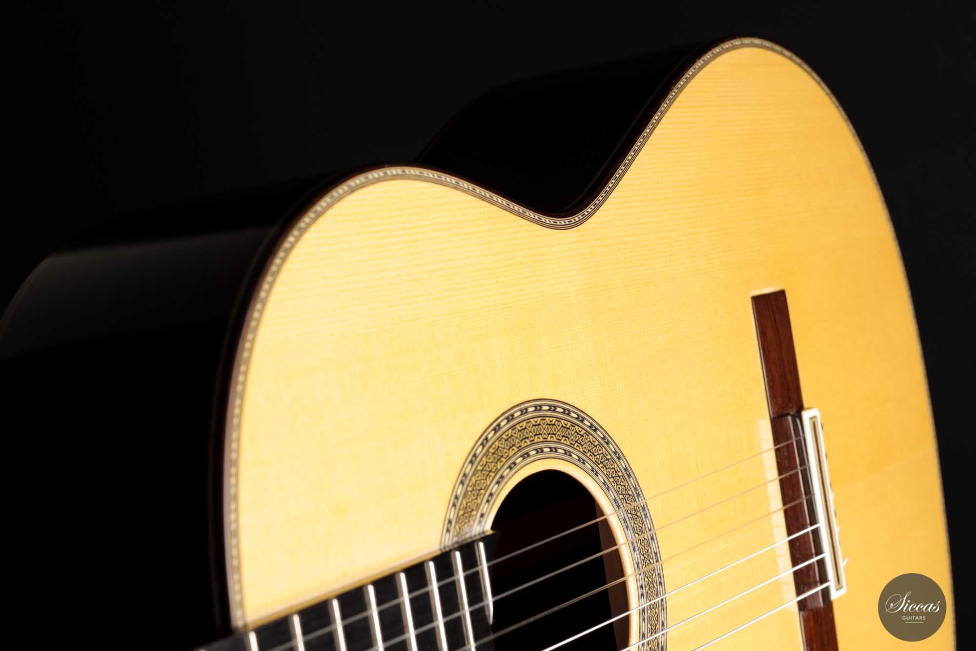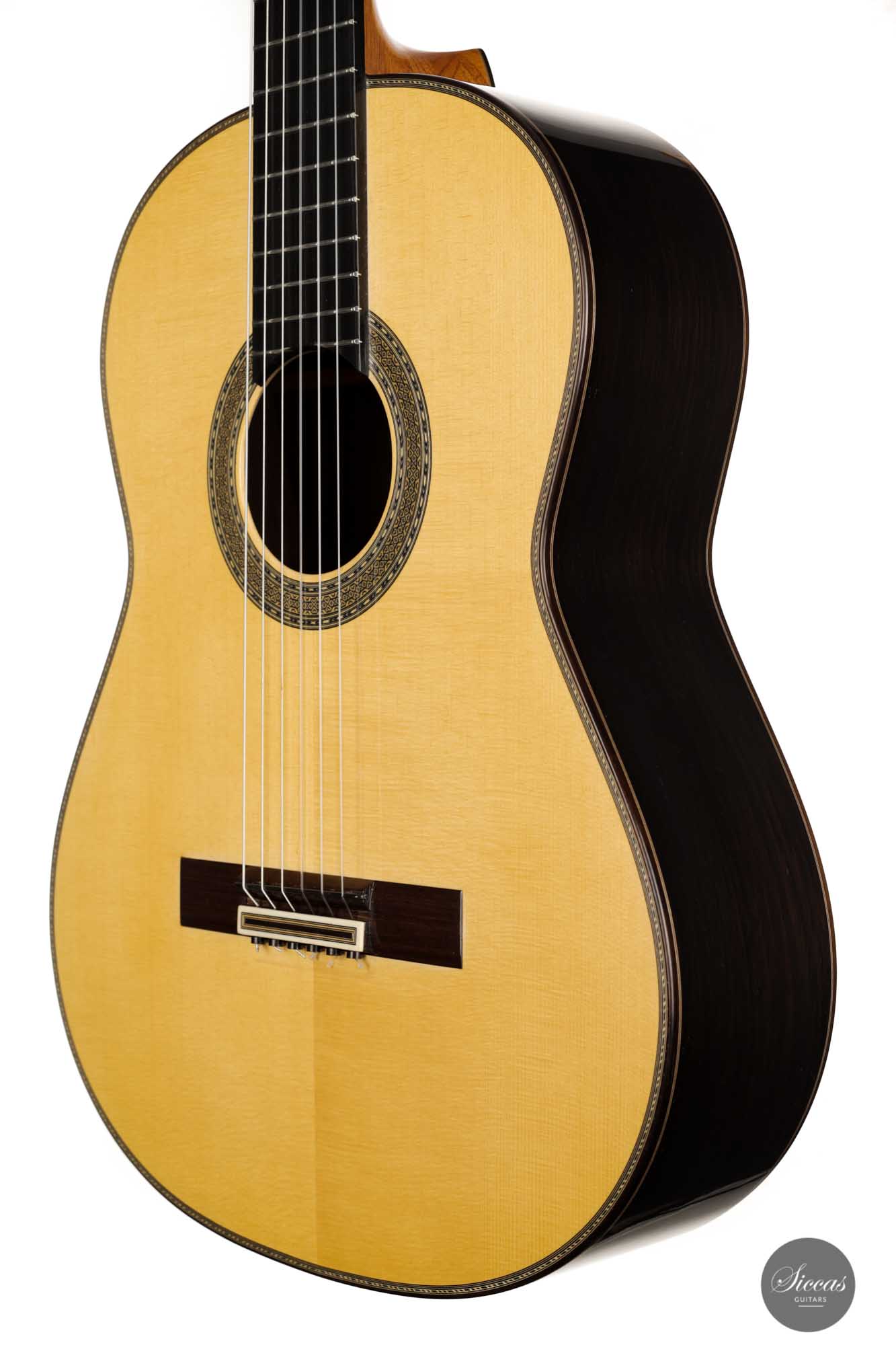 The Jubilee model is a beautiful special edition by Paulino Bernabé Jr. commemorating his 60th birthday in 2020. This Jubilee guitar is also a reminder of the Maestro's many years of passionate work, combining all his experience and craftsmanship with specially selected and rare woods, from old stocks that are a small treasure in themselves. This instrument is the tenth guitar in the Jubilee Series and the only one built with Cites-certified Rio Rosewood. It is a great instrument with filigree and generous ornamentation. It has all the depth and subtlety of the typical Bernabé sound, with excellent and expressive volume and perfect playability.