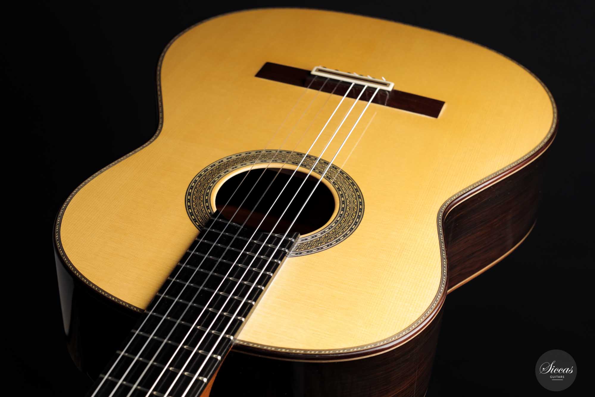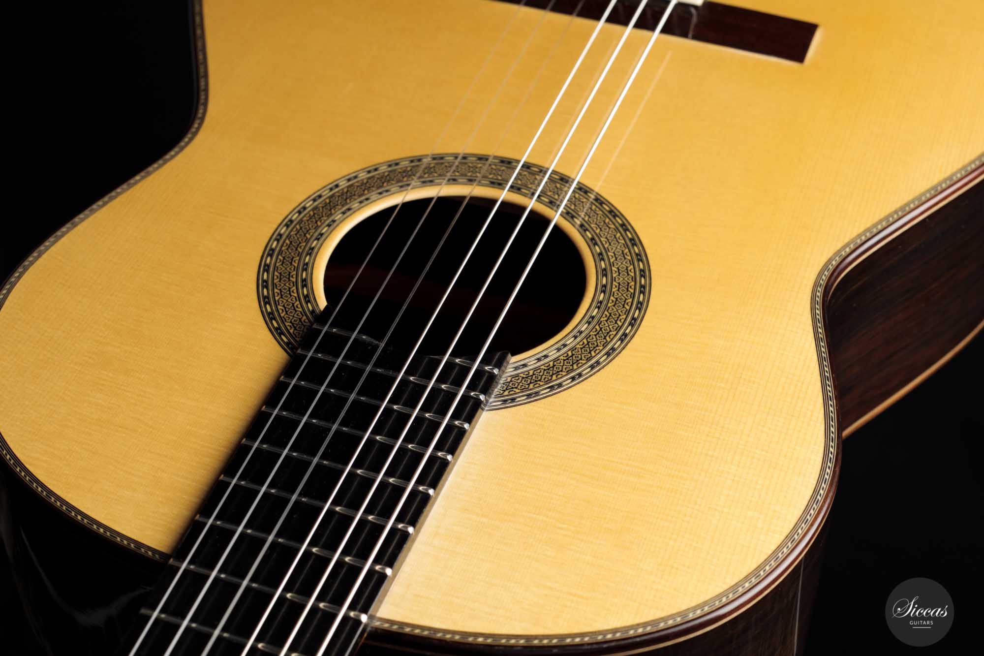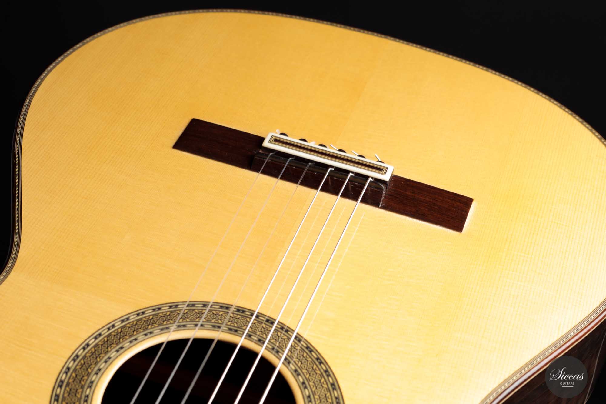 The Jubilee model is a beautiful special edition by Paulino Bernabé Jr. commemorating his 60th birthday in 2020. This Jubilee guitar is also a reminder of the Maestro's many years of passionate work, combining all his experience and craftsmanship with specially selected and rare woods, from old stocks that are a small treasure in themselves. This instrument is the tenth guitar in the Jubilee Series and the only one built with Cites-certified Rio Rosewood. It is a great instrument with filigree and generous ornamentation. It has all the depth and subtlety of the typical Bernabé sound, with excellent and expressive volume and perfect playability.