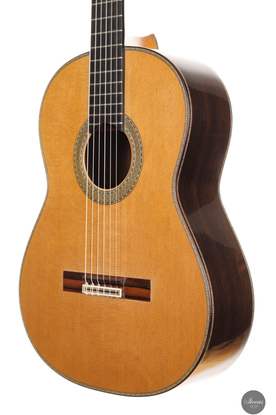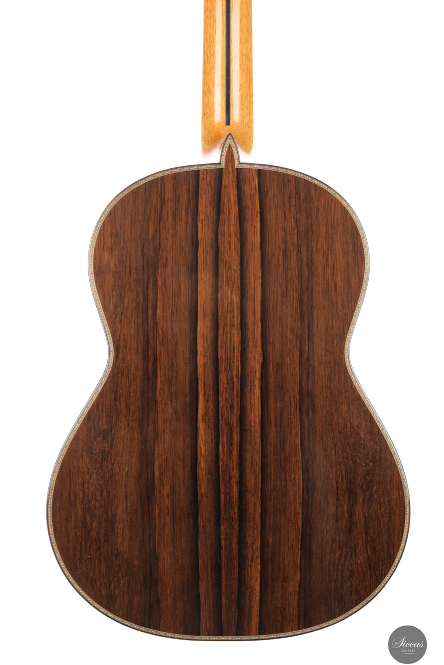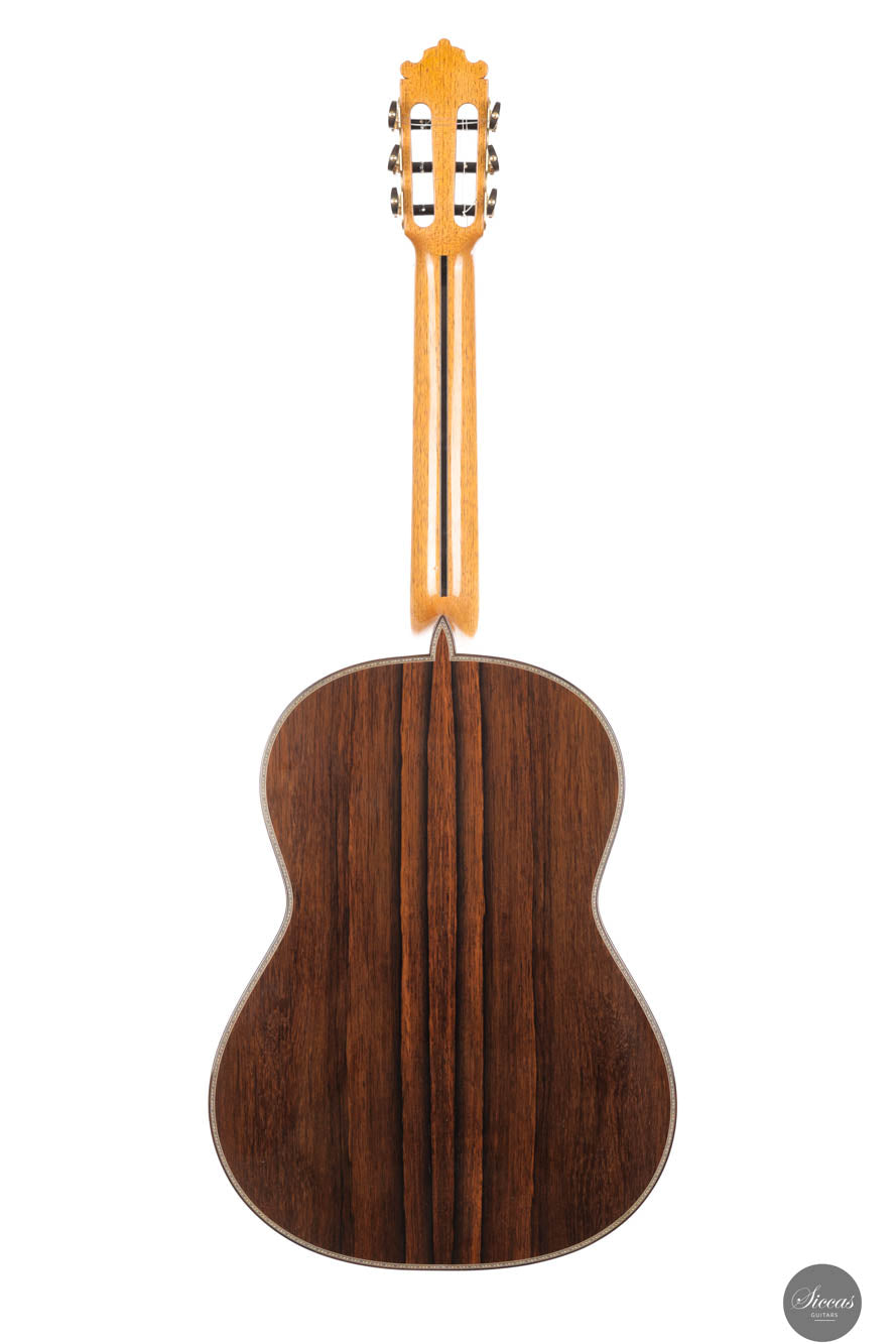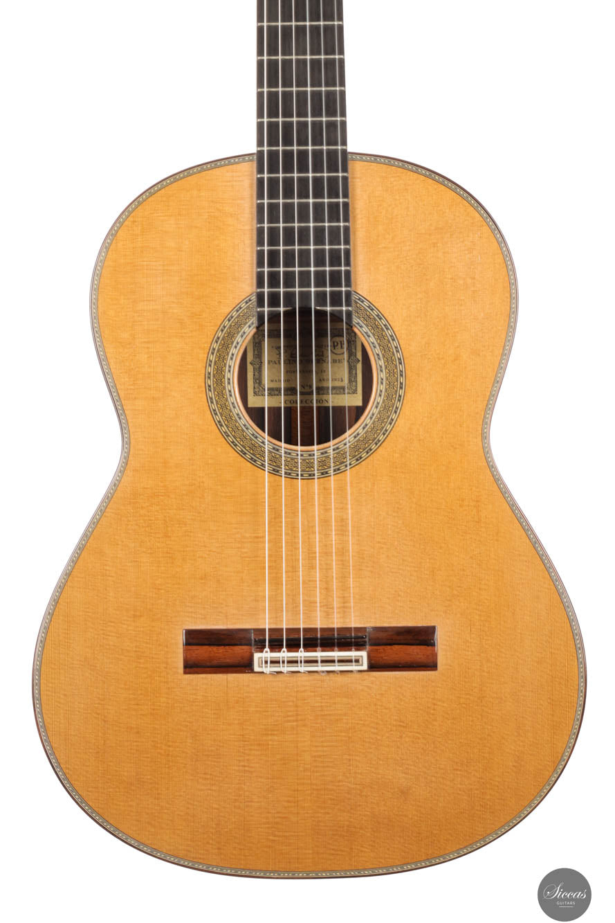 This Colección is a new beautiful, and unique model by Paulino Bernabé Jr. Only a handful of these limited-edition guitars will be built, using Paulino’s best and rarest wood stock, combining his decades of experience and fantastic craftsmanship skills. Each of the guitars in the Colección series is unique, and we are delighted to present the number 8, built in 2023. This guitar features a stunning Madagascar rosewood back and sides with fabulous patterns. It is an absolute dream to look at and the dark, reddish cedar top not only gives this guitar an outstanding artful appearance, but also complements its highly responsive and well-projected tone. The guitar is in excellent condition with very minimal playing wear and displaying a common small string mark behind the bridge. The basses are deep and dark, while the trebles are live and bright. As a modern Spanish guitar, it fulfils all the requirements of a fine concert instrument, such as a great sound volume and easy playability.