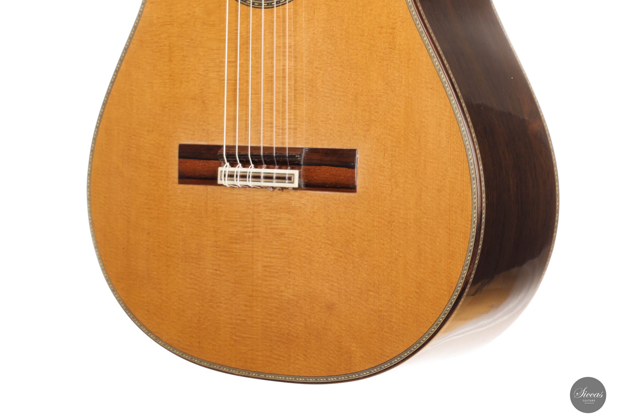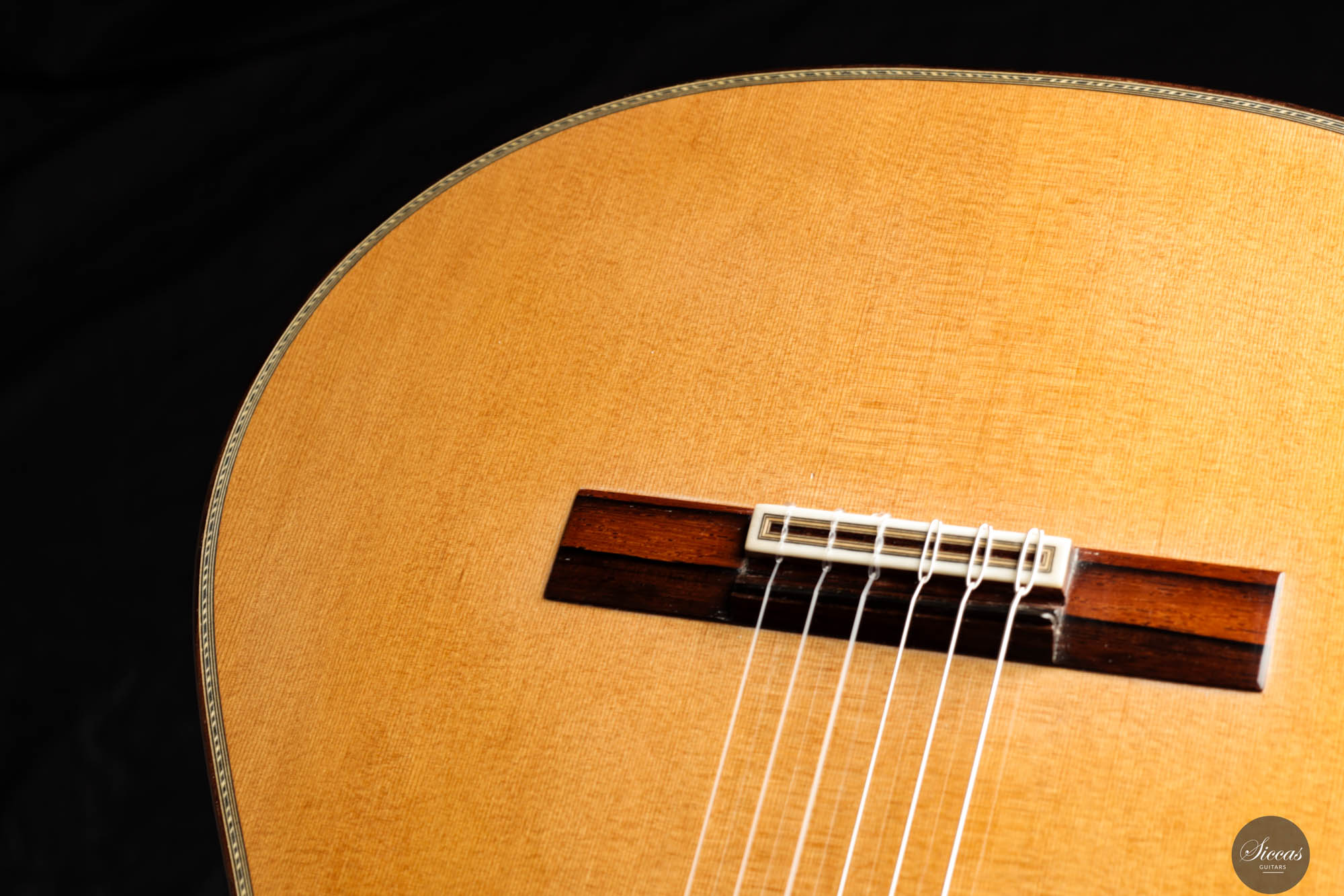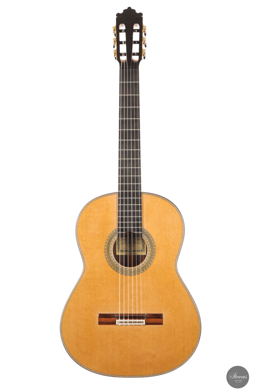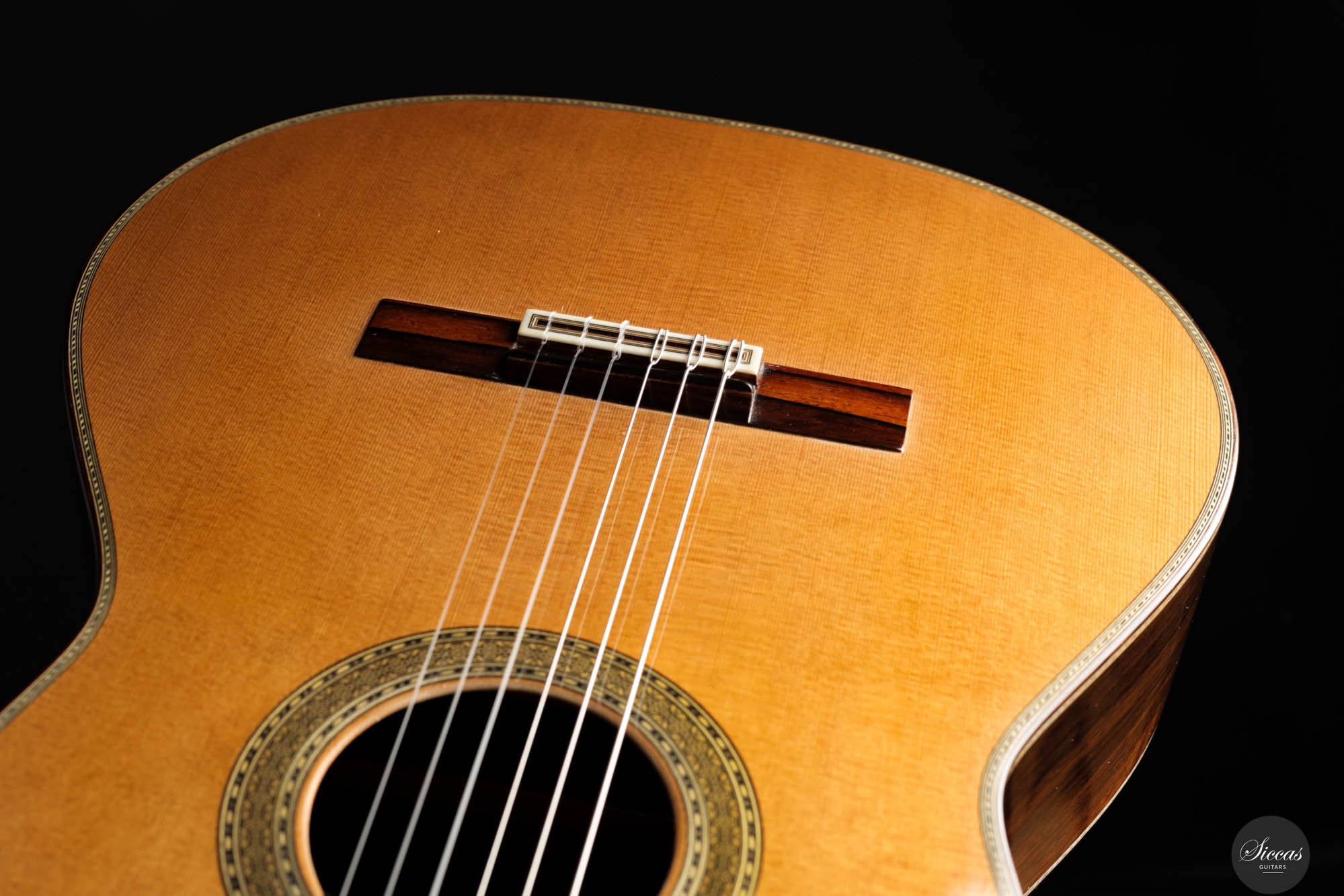 This Colección is a new beautiful, and unique model by Paulino Bernabé Jr. Only a handful of these limited-edition guitars will be built, using Paulino’s best and rarest wood stock, combining his decades of experience and fantastic craftsmanship skills. Each of the guitars in the Colección series is unique, and we are delighted to present the number 8, built in 2023. This guitar features a stunning Madagascar rosewood back and sides with fabulous patterns. It is an absolute dream to look at and the dark, reddish cedar top not only gives this guitar an outstanding artful appearance, but also complements its highly responsive and well-projected tone. The guitar is in excellent condition with very minimal playing wear and displaying a common small string mark behind the bridge. The basses are deep and dark, while the trebles are live and bright. As a modern Spanish guitar, it fulfils all the requirements of a fine concert instrument, such as a great sound volume and easy playability.