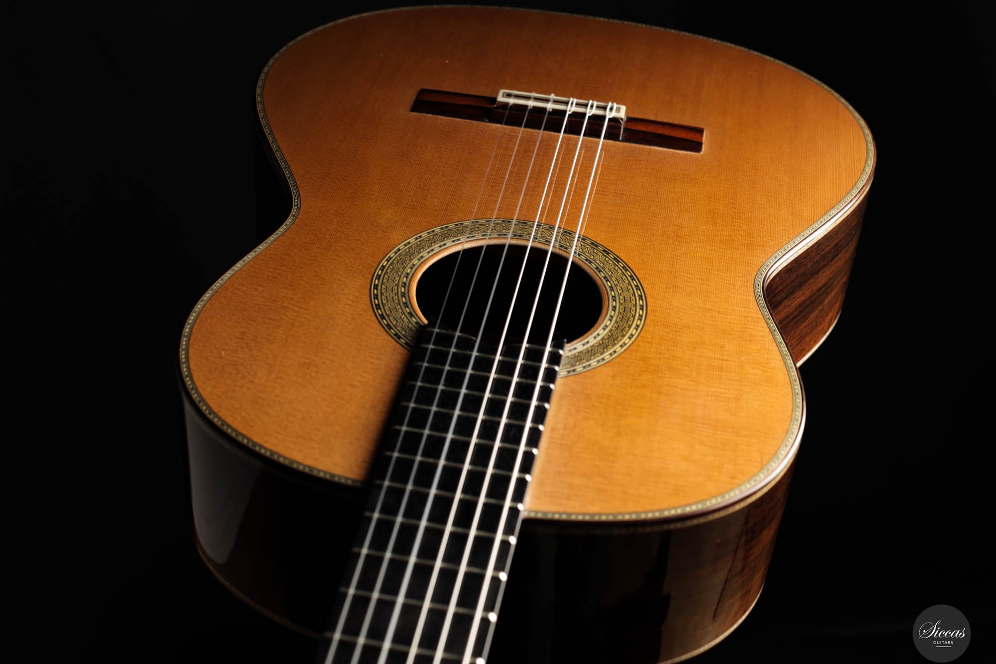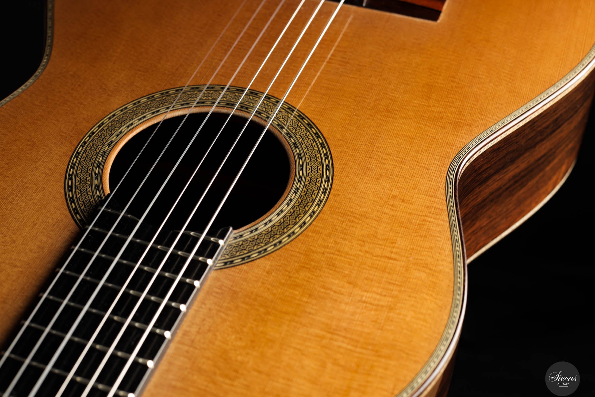 The classical guitar, with its soft nylon strings and characteristic timbre, has become a symbol of chamber music, Spanish tradition, and concert repertoire. Its modern form was shaped by Antonio de Torres in the 19th century, setting the standard for the body, fan bracing, and the 65-centimeter scale length that are still used today. Instruments in this category open up a rich palette from the refined Romantic miniatures of Tárrega to the majestic concertos of Rodrigo. Here you will find guitars that preserve historical continuity and at the same time inspire new interpretations.