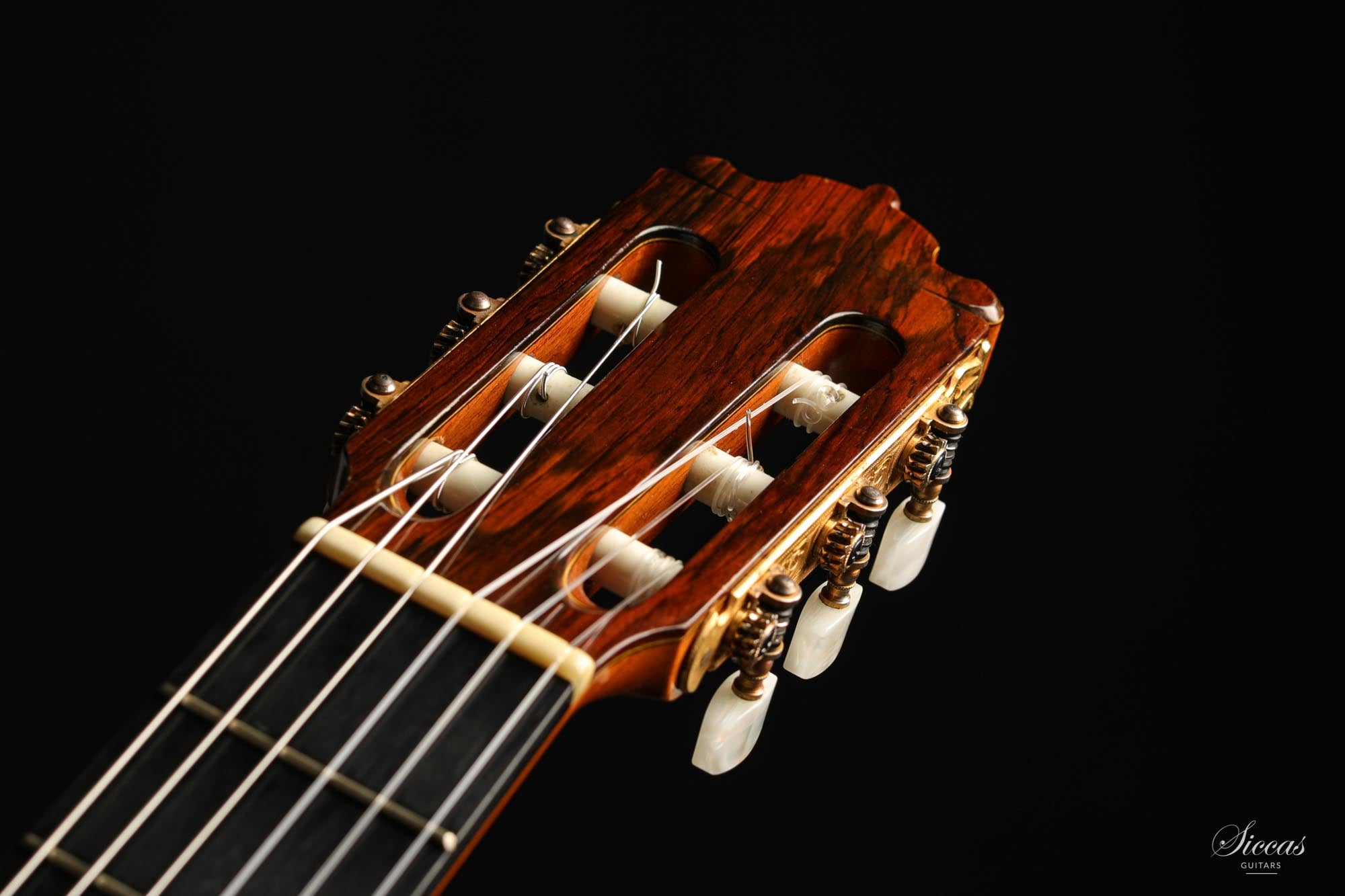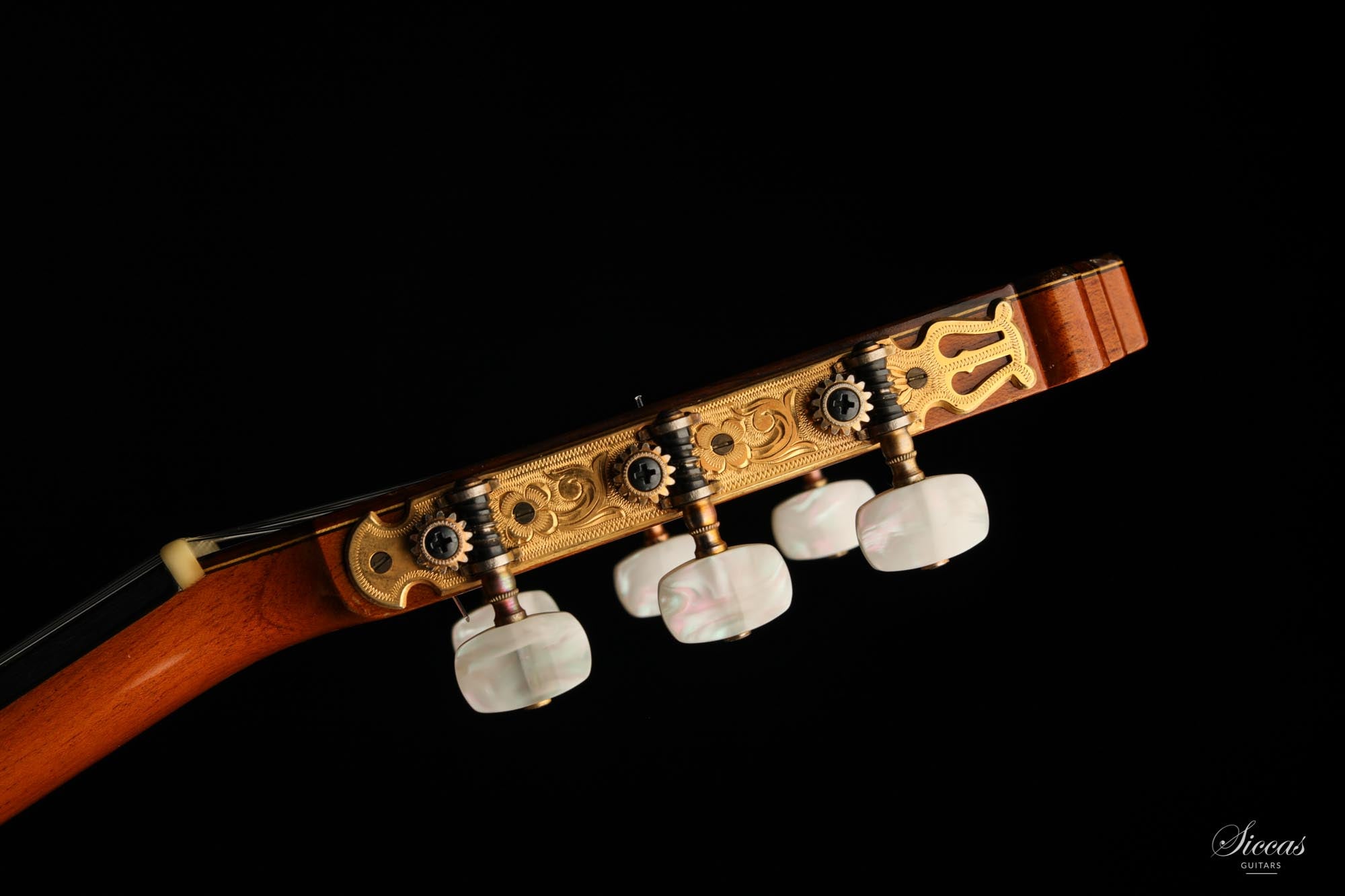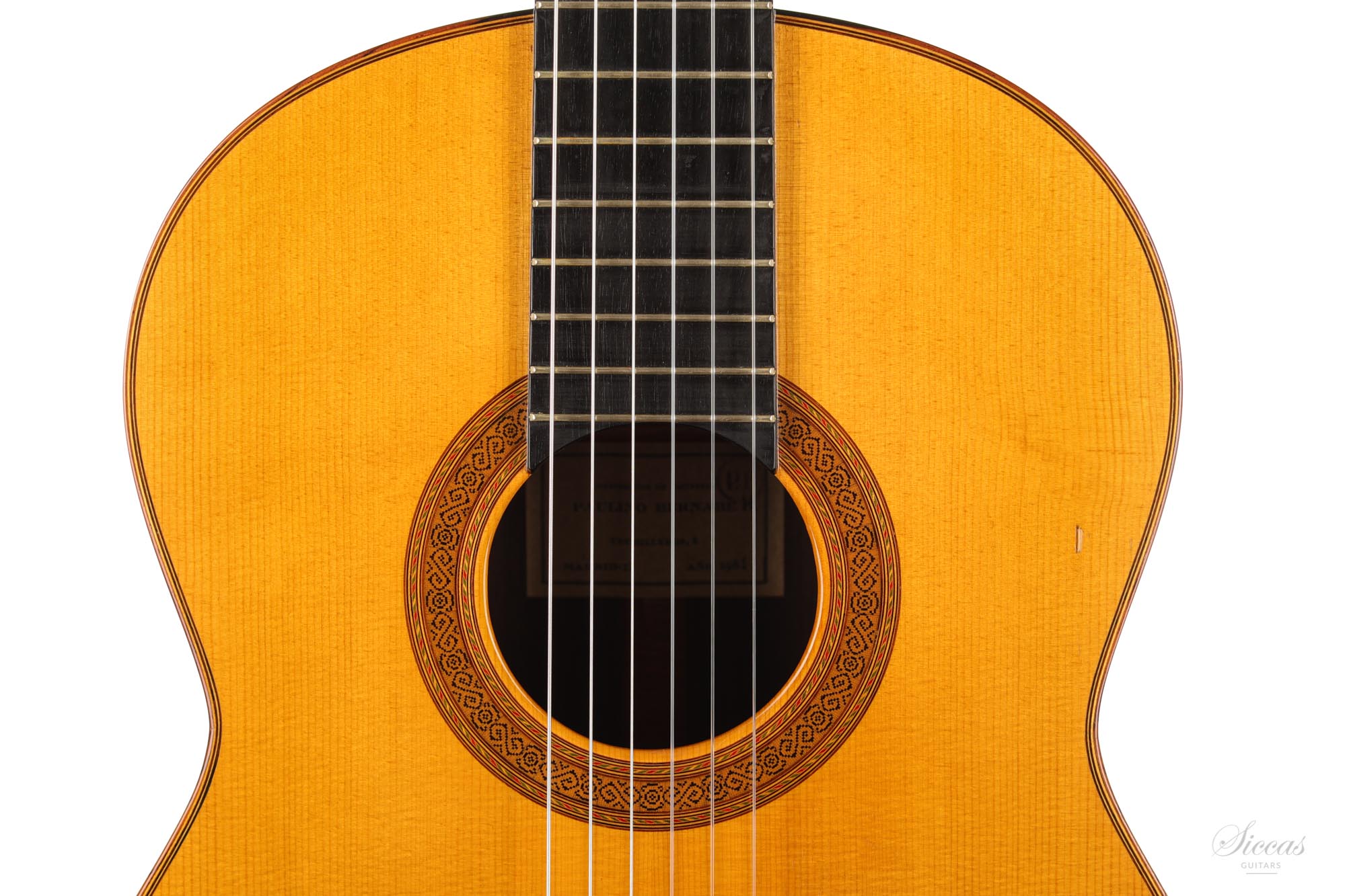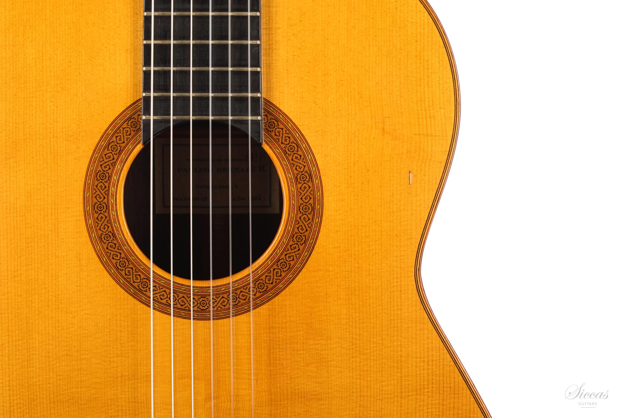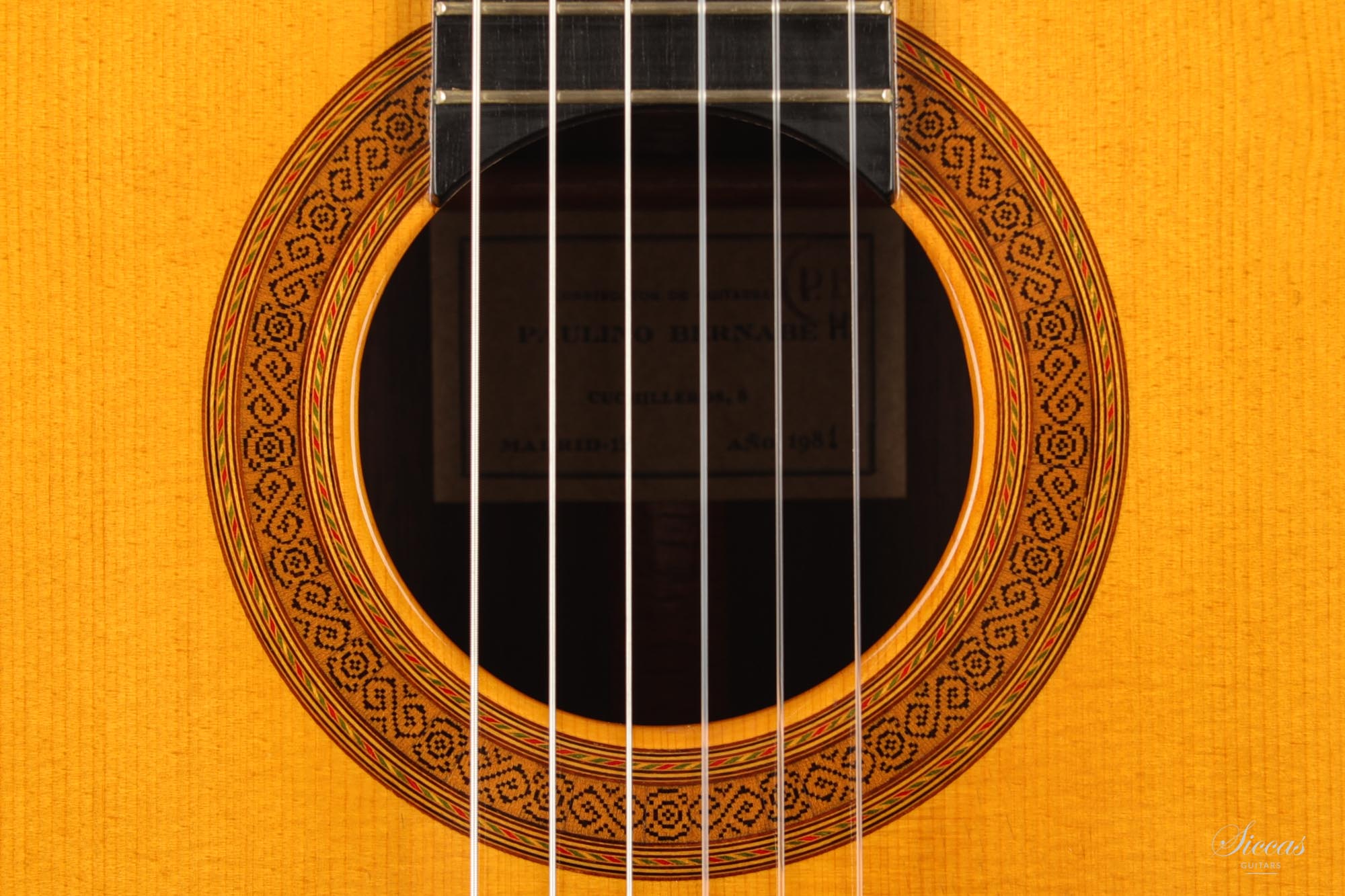 This beautiful guitar is a fantastic and rare example of the collaboration between Paulino Bernabe Sr. and Jr. in the early 1980s. As you can see from the handwritten note H on the label, Paulino Bernabe "Hijo" was involved in building this guitar. Inside the top there is also a signature of Paulino Bernabe Sr. This guitar is therefore, like the guitars of Romanillos & son, Smallman & sons, etc., an impressive testimony of the traditional know-how that has been handed down through several generations in the luthier families.