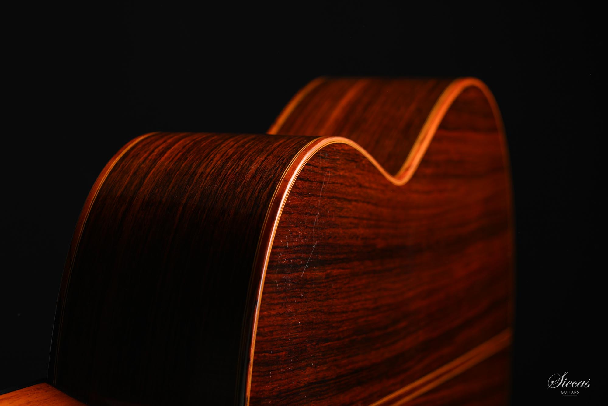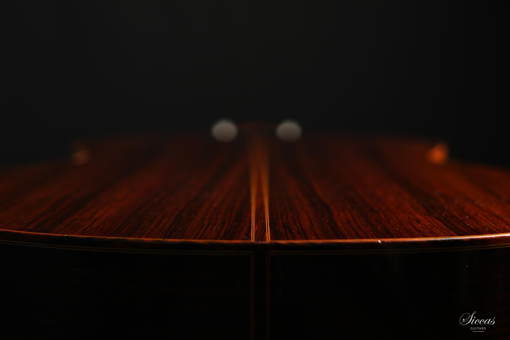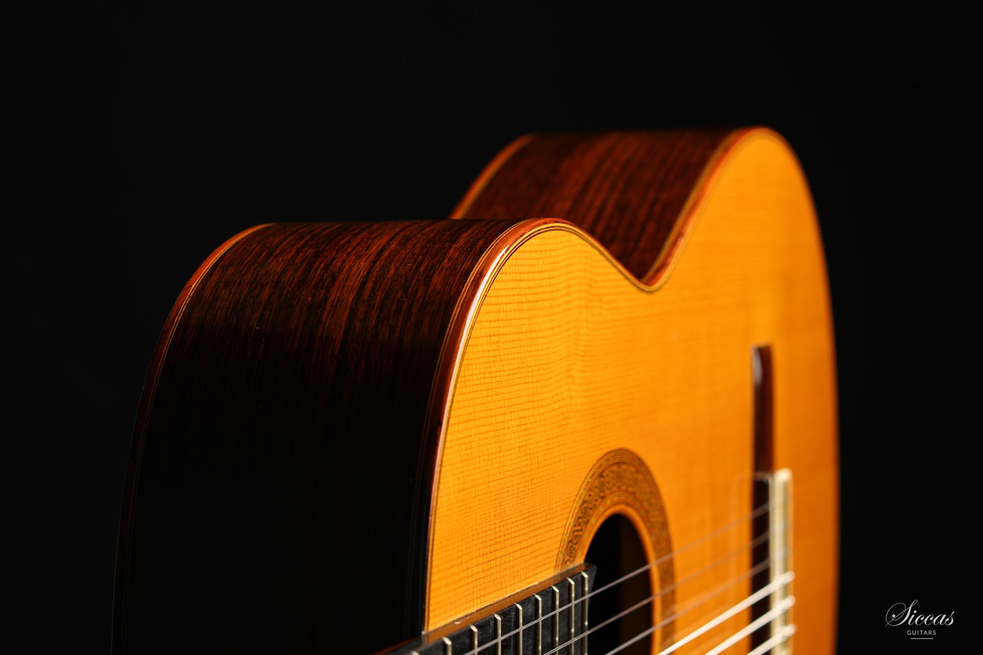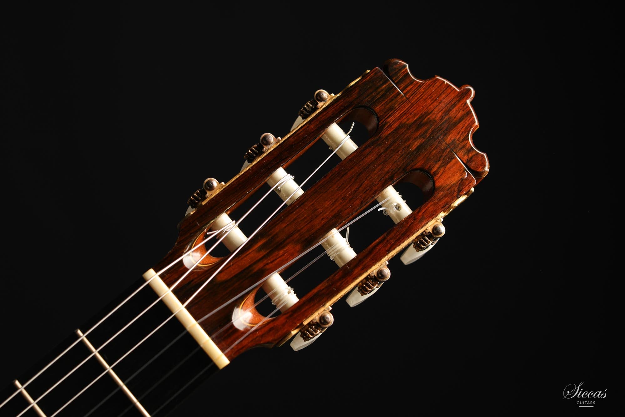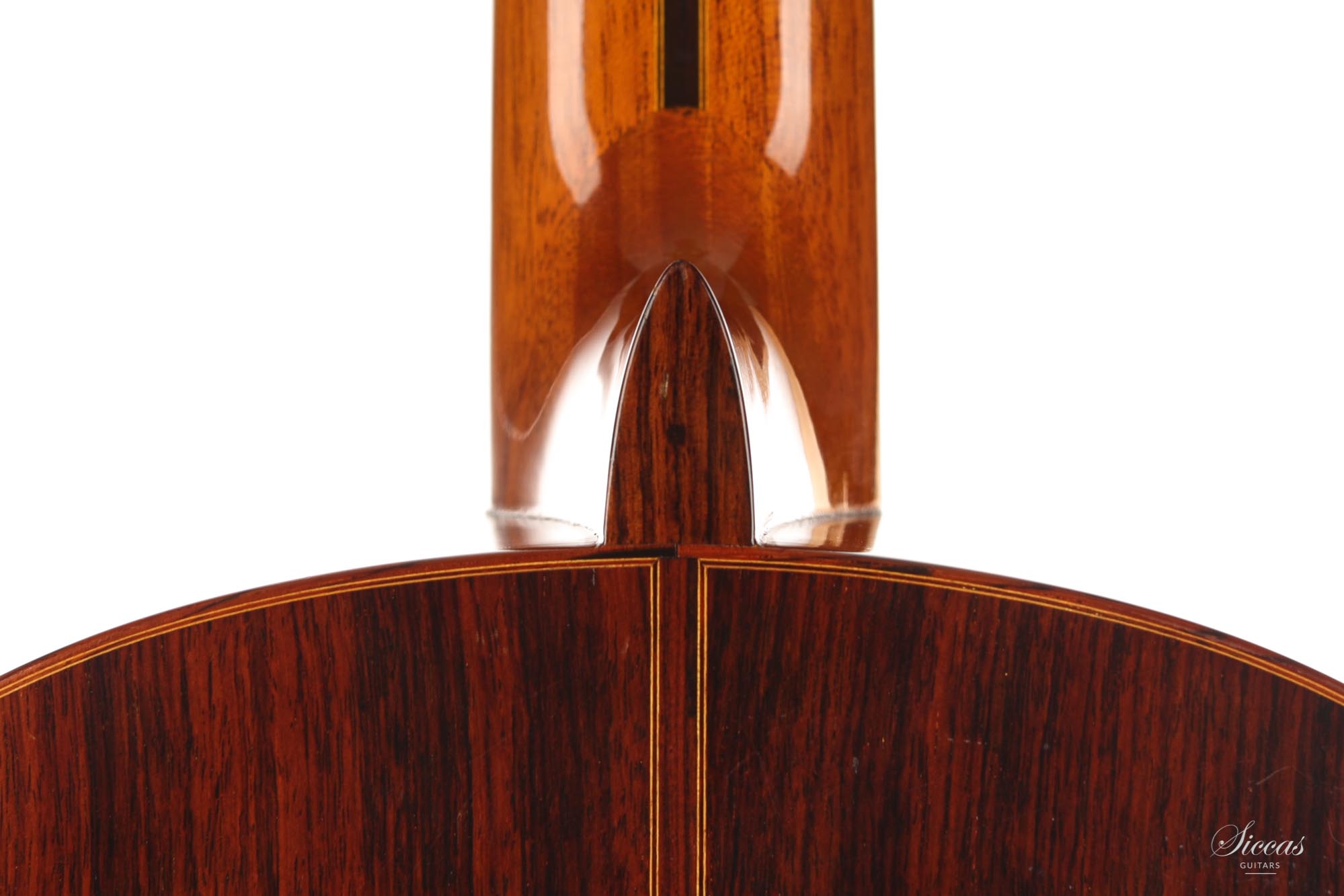 This beautiful guitar is a fantastic and rare example of the collaboration between Paulino Bernabe Sr. and Jr. in the early 1980s. As you can see from the handwritten note H on the label, Paulino Bernabe "Hijo" was involved in building this guitar. Inside the top there is also a signature of Paulino Bernabe Sr. This guitar is therefore, like the guitars of Romanillos & son, Smallman & sons, etc., an impressive testimony of the traditional know-how that has been handed down through several generations in the luthier families.