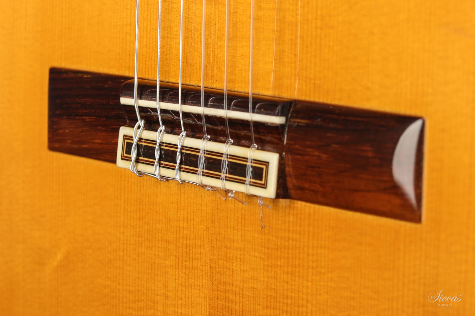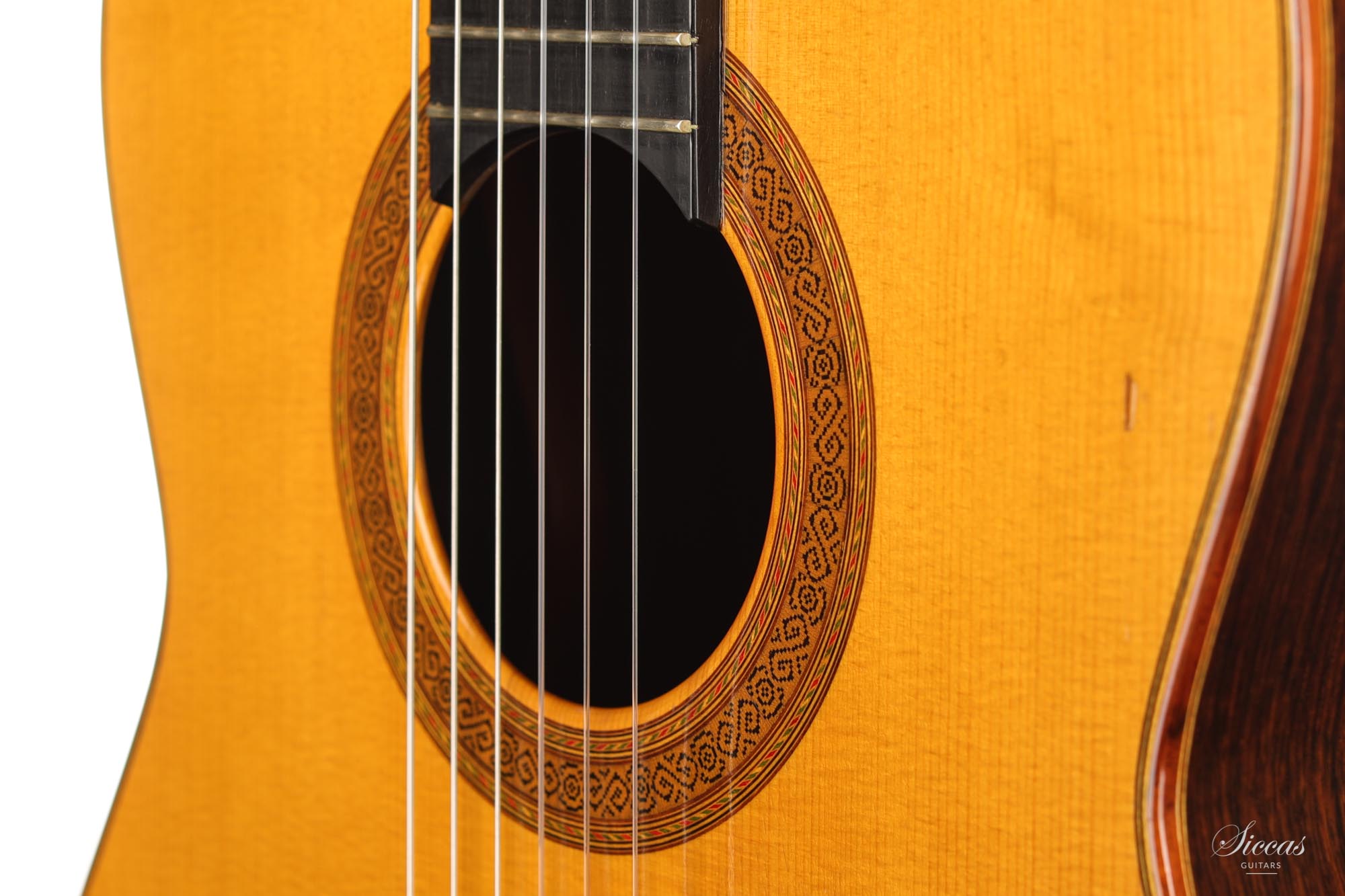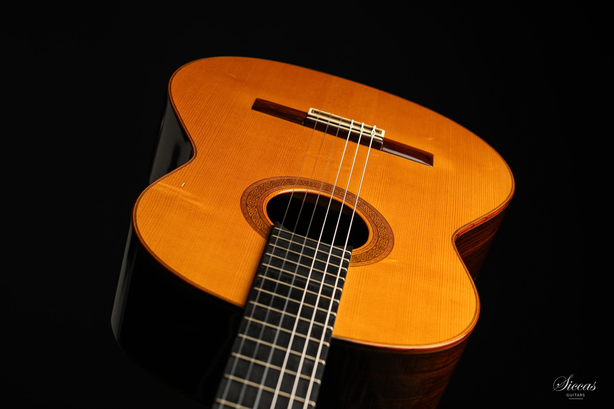 What a great pleasure it is to play this almost 40-year-old guitar, which is full of liveliness and verve. It has the legendary clarity of Bernabé guitars as well as an enchanting and majestic timbre. The treble voices have a particularly remarkable and even sustain, supported by sypathetic resonances; the playability is excellent, and this vintage instrument will delight both collectors and any guitarist looking for a mature guitar with great finesse.