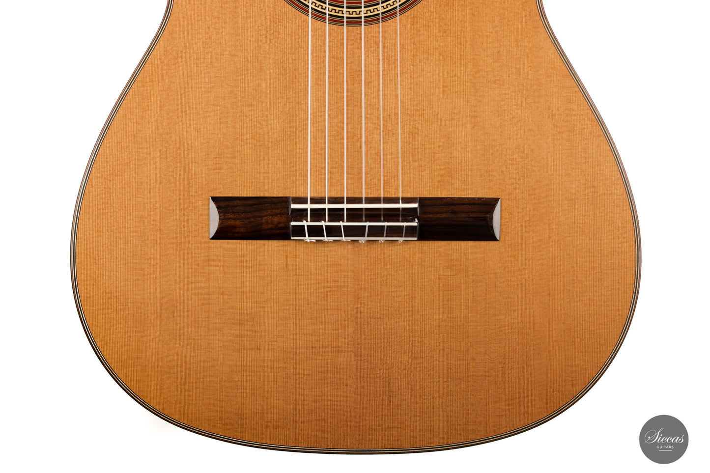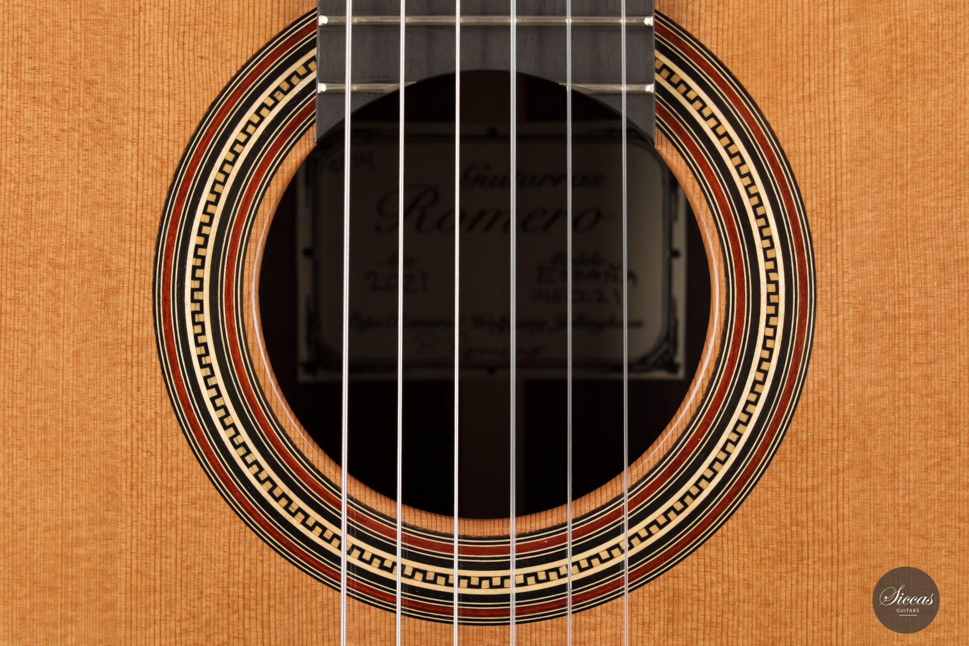 The España model is a traditional Spanish design inspired by the renowned guitars of Miguel Rodriguez, Santos Hernandez and Romero's own custom builds. These guitars have tremendous power, sustain, and clarity. They are available with premium German spruce or Western red cedar tops and have traditional five-fan bracing. Interestingly, the bracing is fine-tuned with two V-shaped braces and a crossbar to favor treble resonance.