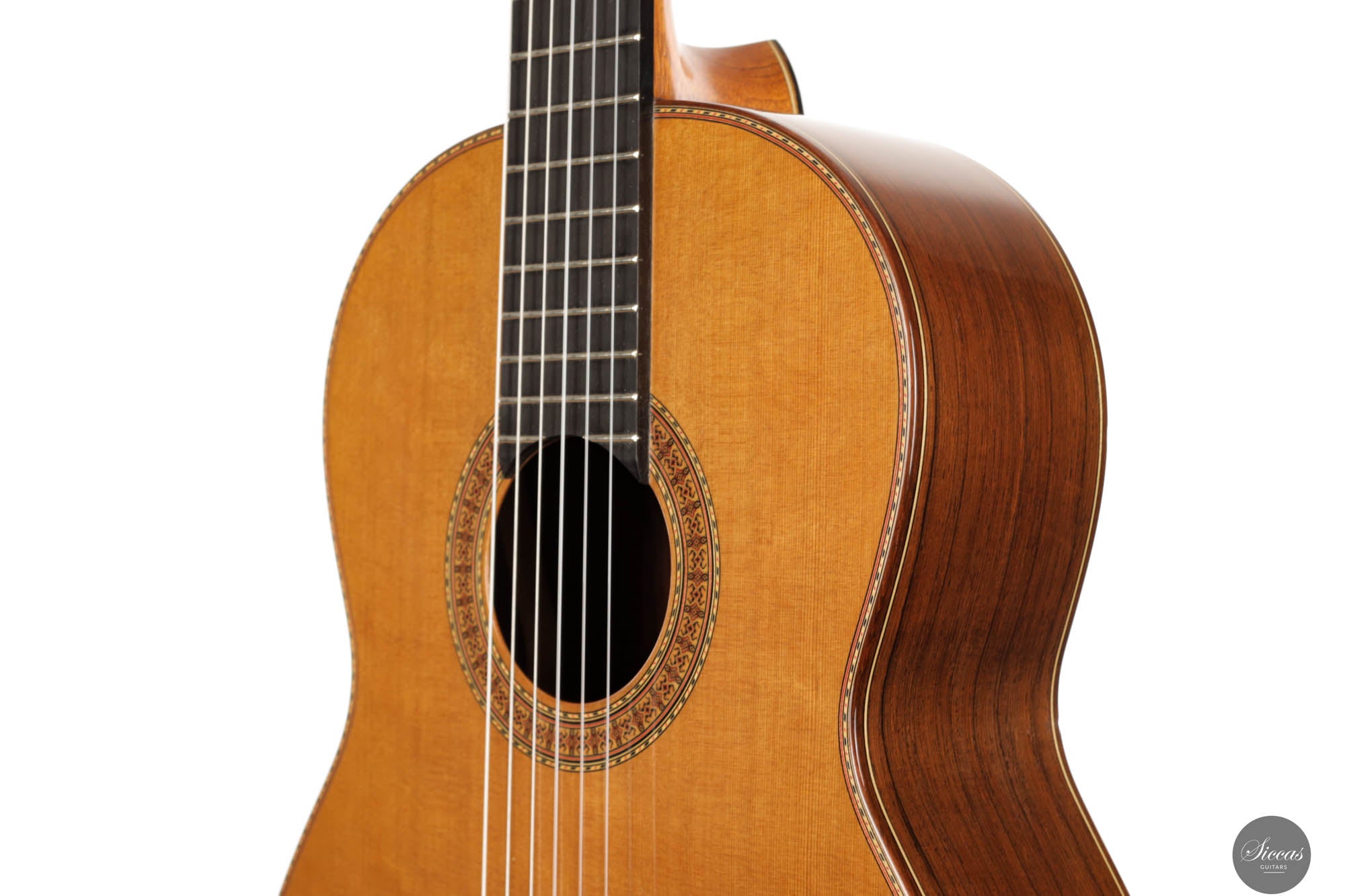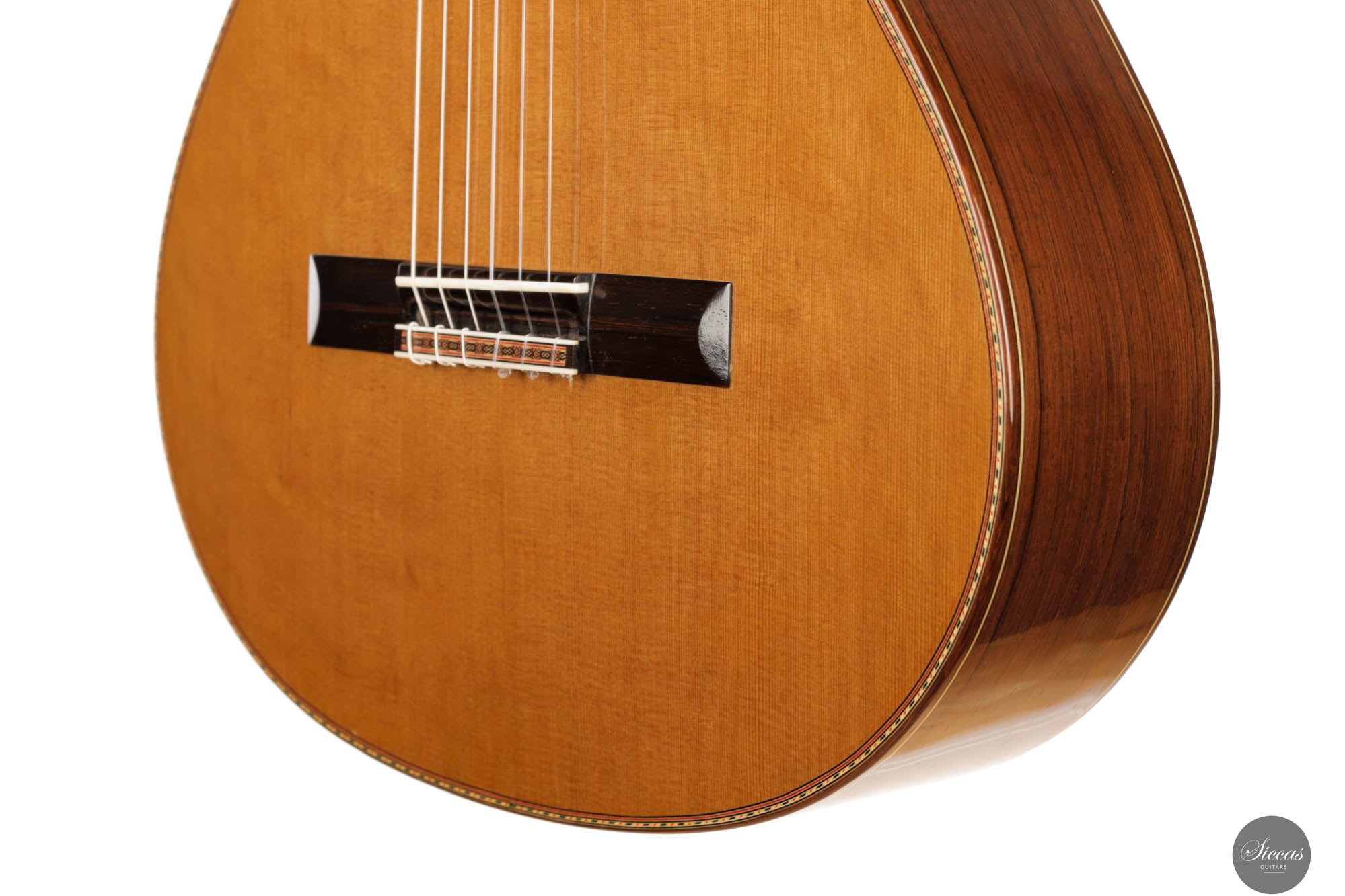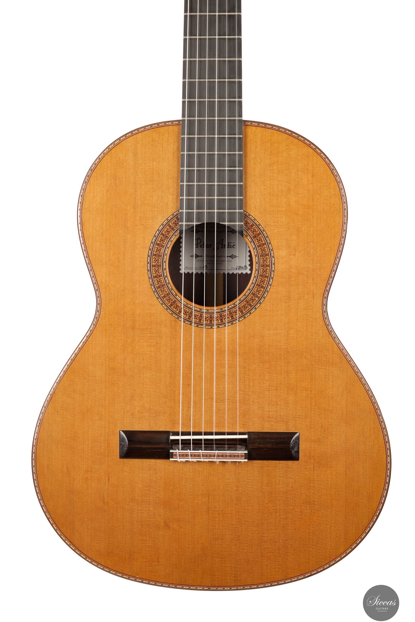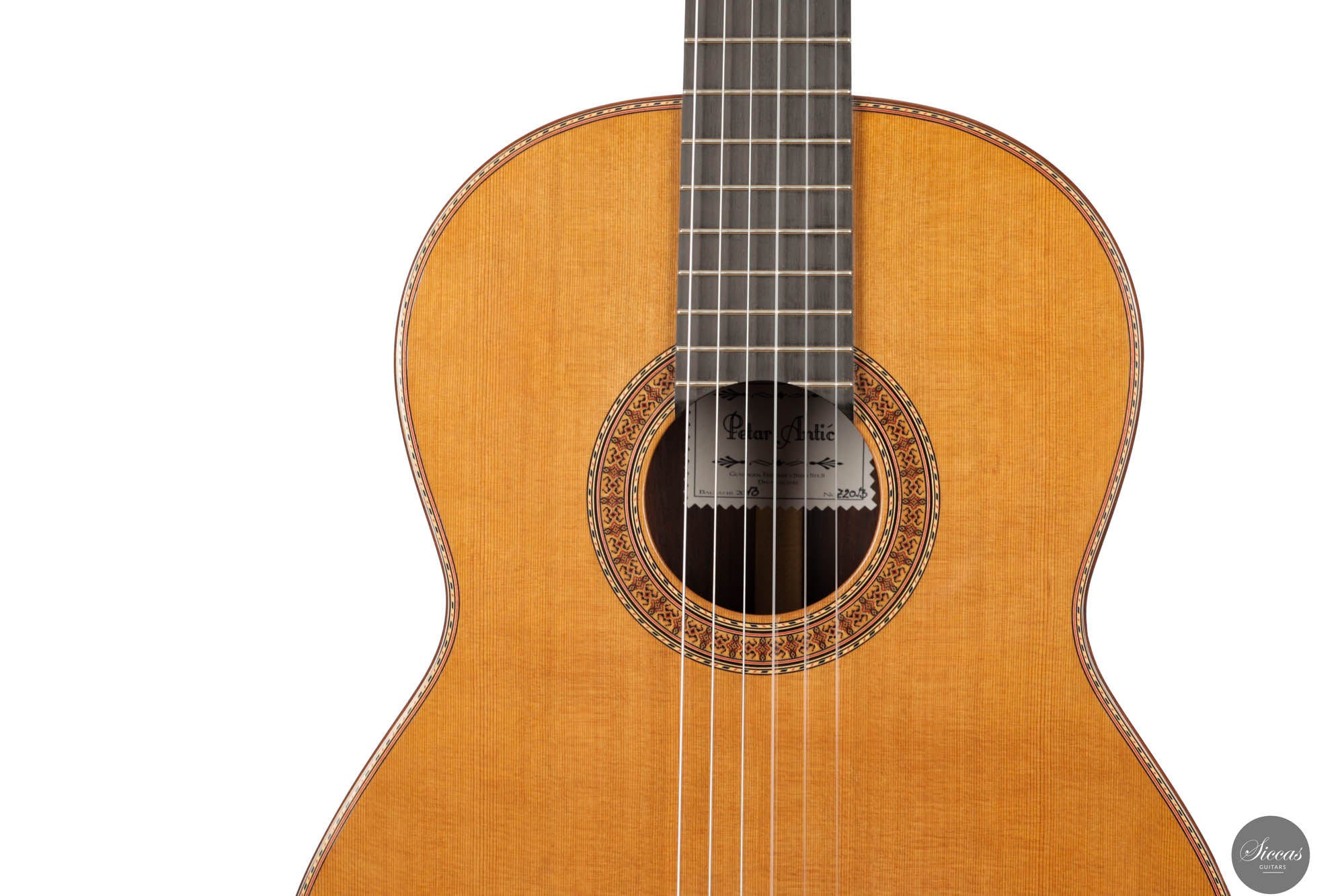 The Z 2013 guitar, crafted by the esteemed late luthier Petar Antic, is an extraordinary showcase of his exceptional craftsmanship. Delivered personally by Antic's son, this guitar is not only an instrument but a cherished legacy of a revered artisan who left the world too early. Classified as New Old Stock (NOS), the guitar is preserved in impeccable condition, embodying the dedication to quality that Antic was known for. Its design features a beautifully resonant cedar top, paired seamlessly with the strikingly rich Madagascar rosewood for the back and sides. This combination of woods not only creates an alluring visual appeal but also imparts a wide range of tonal colors, making the guitar versatile and dynamic. Exceptional playability is one of its standout features, ensuring that guitarists of every skill level, from enthusiastic beginners to accomplished professionals, can enjoy a seamless and enriching playing experience.