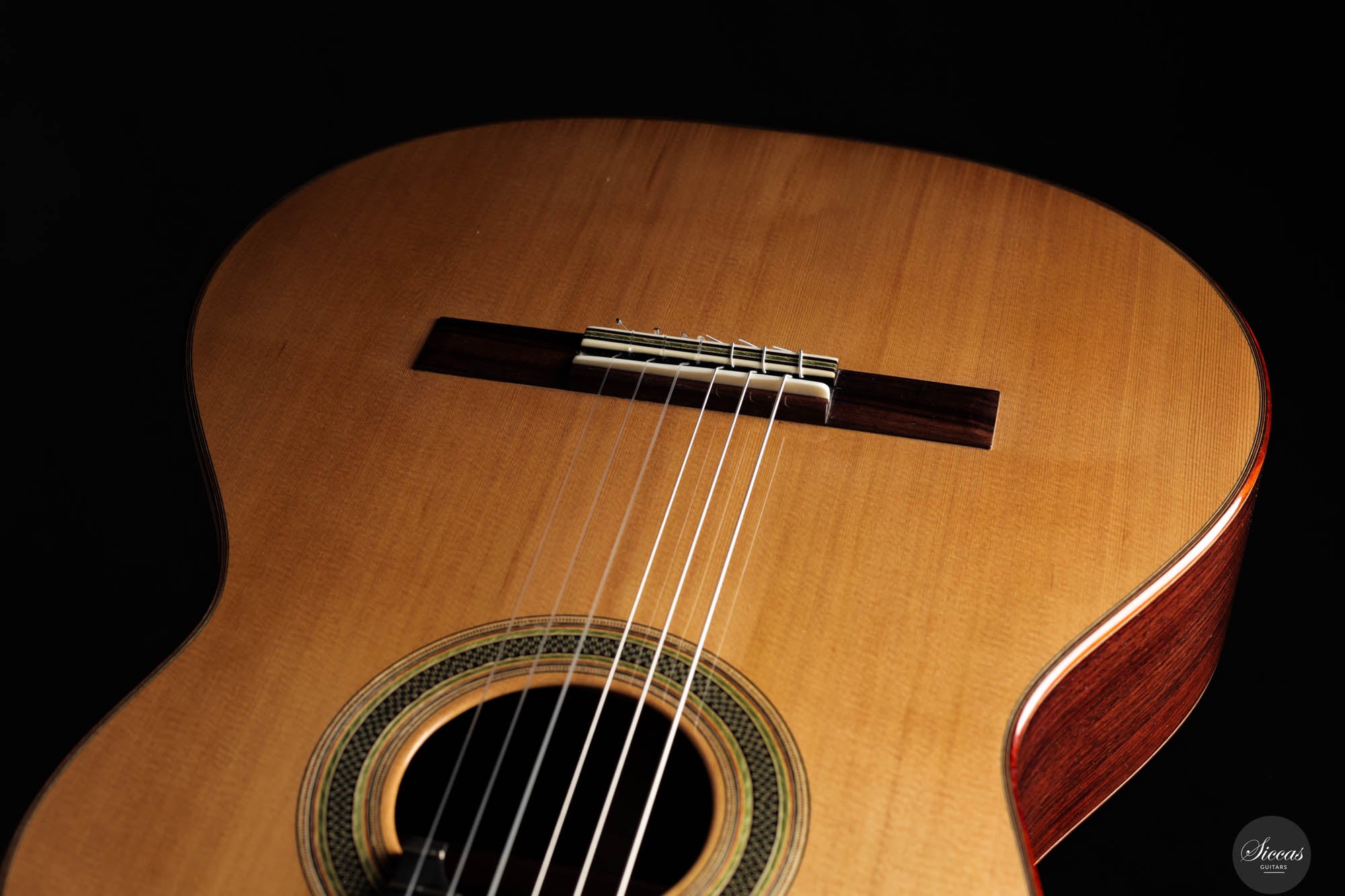 The classical guitar, with its soft nylon strings and characteristic timbre, has become a symbol of chamber music, Spanish tradition, and concert repertoire. Its modern form was shaped by Antonio de Torres in the 19th century, setting the standard for the body, fan bracing, and the 65-centimeter scale length that are still used today. Instruments in this category open up a rich palette from the refined Romantic miniatures of Tárrega to the majestic concertos of Rodrigo. Here you will find guitars that preserve historical continuity and at the same time inspire new interpretations.