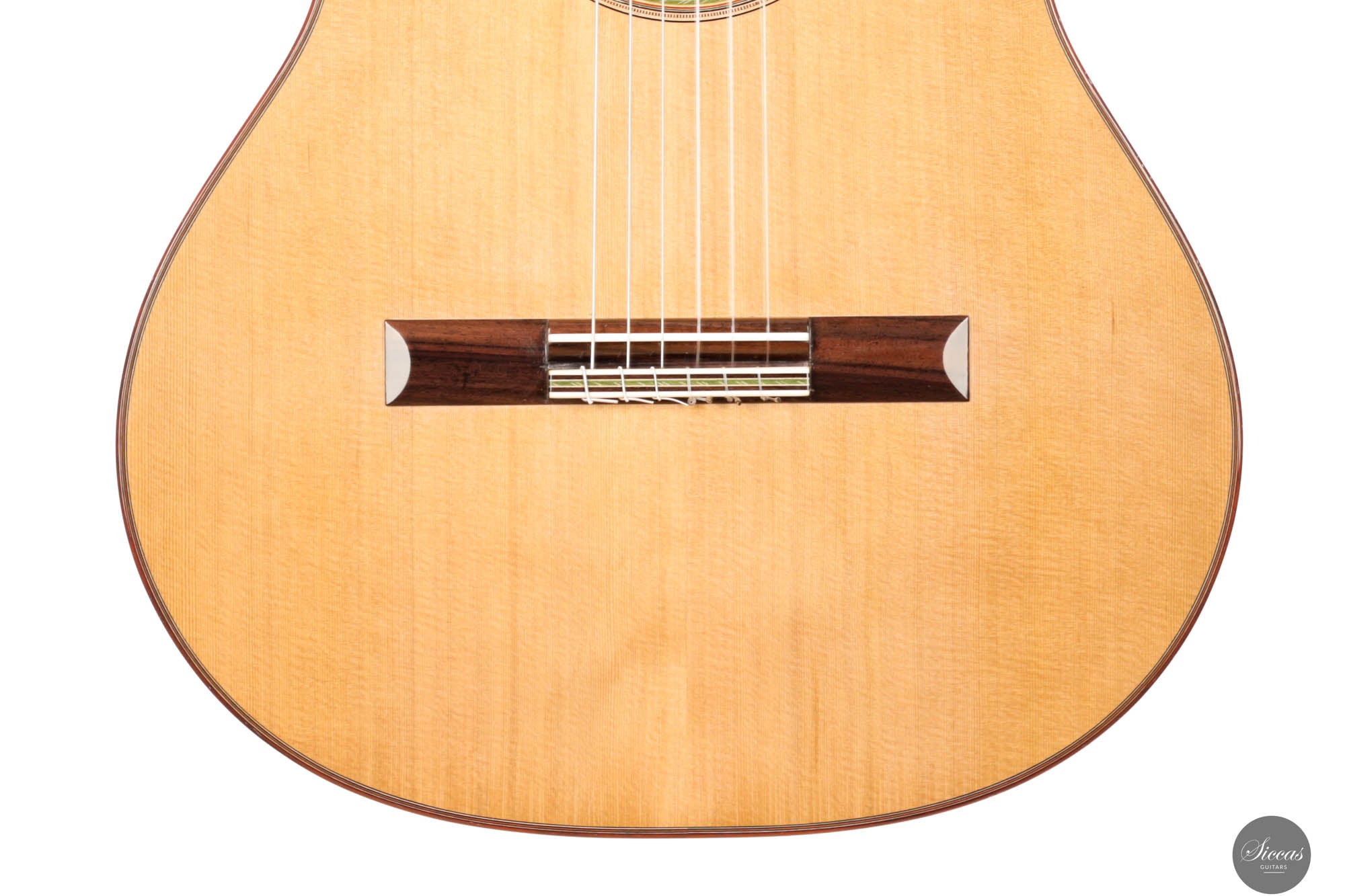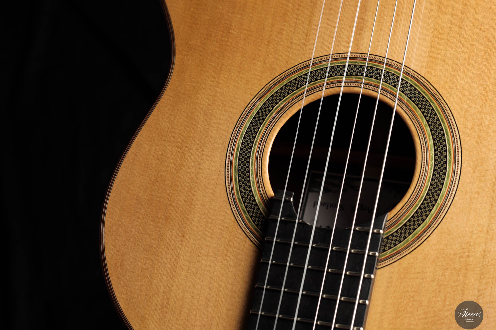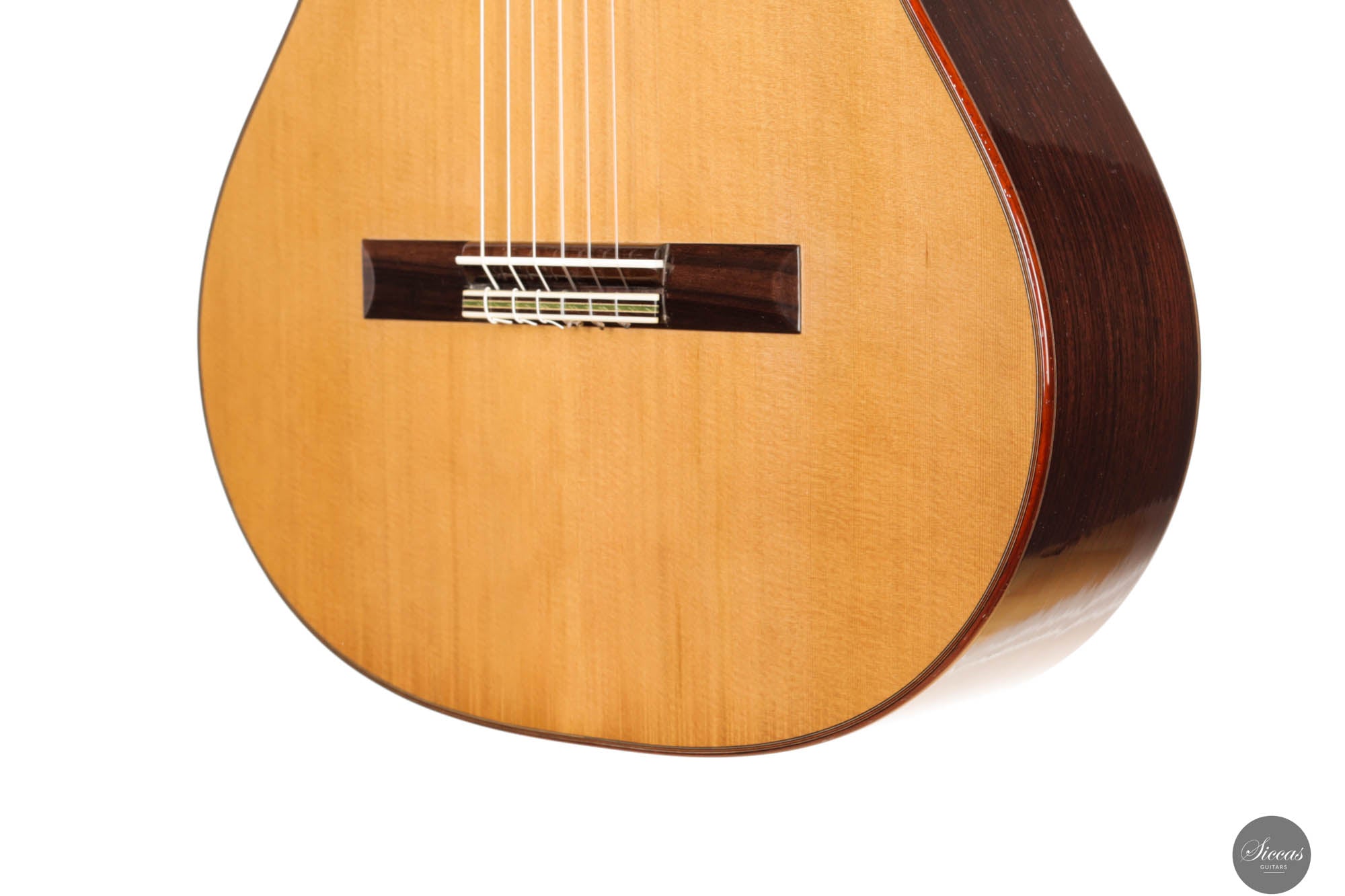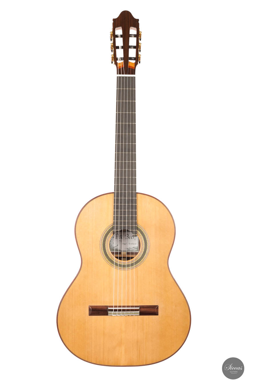 This guitar seamlessly combines traditional craftsmanship with modern innovations, featuring double sides that enhance both its structural rigidity and exceptional projection. With a vast dynamic headroom, it allows guitarists to fully explore a wide range of expression, from the most delicate passages to powerful, resonant tones. The first string maintains an even tone, while the trebles provide a warm and rich listening experience, with just enough edge to carry the sound effortlessly throughout any concert hall. Designed with ease of playability in mind, this instrument is accessible to performers of all levels, ensuring comfort without compromising on power. With these outstanding attributes, Pete’s guitar is an ideal choice for musicians seeking a versatile, expressive, and commanding concert instrument.