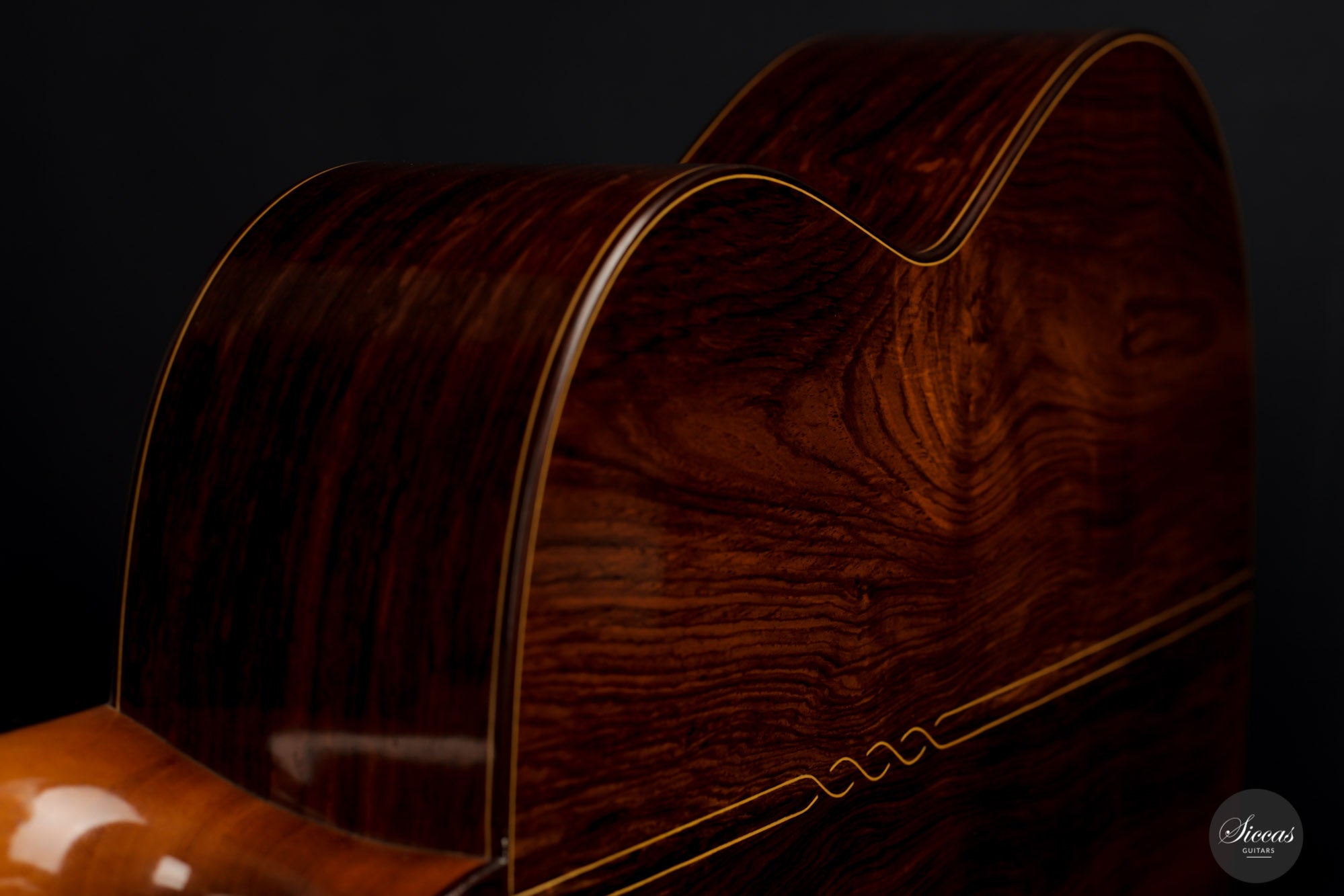 This remarkable 2020 Grand Concert guitar is, as always with Philip, a top-notch instrument. Named “Megan” and featuring a lattice braced super-thin spruce top and Honduras rosewood back and sides, it is an absolute powerhouse. Combining volume, delicacy, and charm, this easy-to-play guitar is in a category of its own. Moreover, it is interesting to note that its condition is outstanding, with close to no playing marks. If you are looking for cathedral-like sound quality in a guitar, look no further, this one is for you.