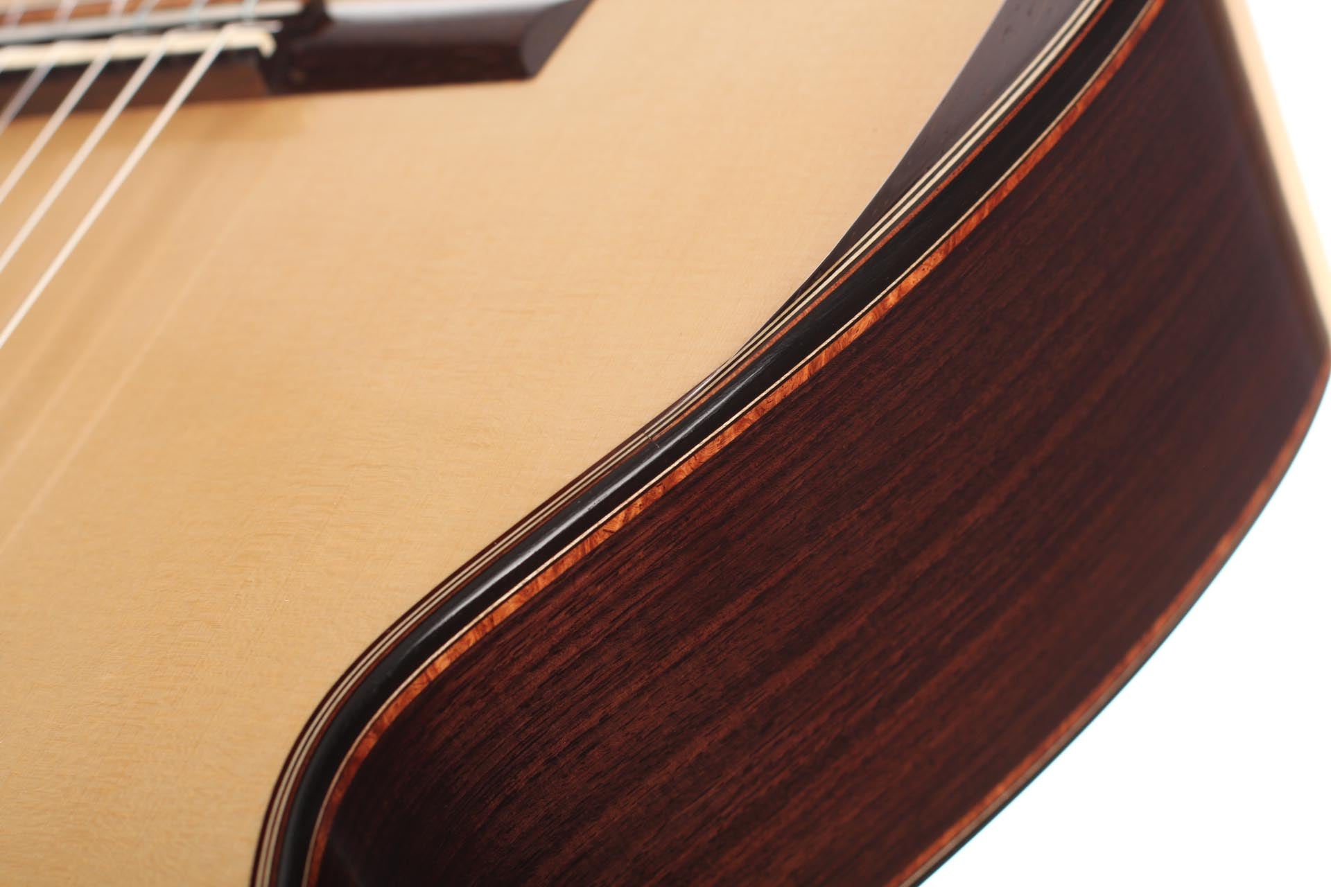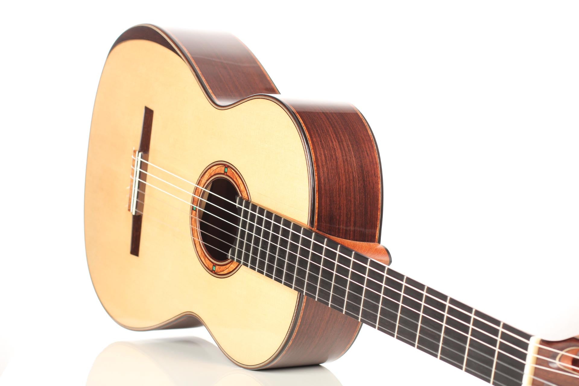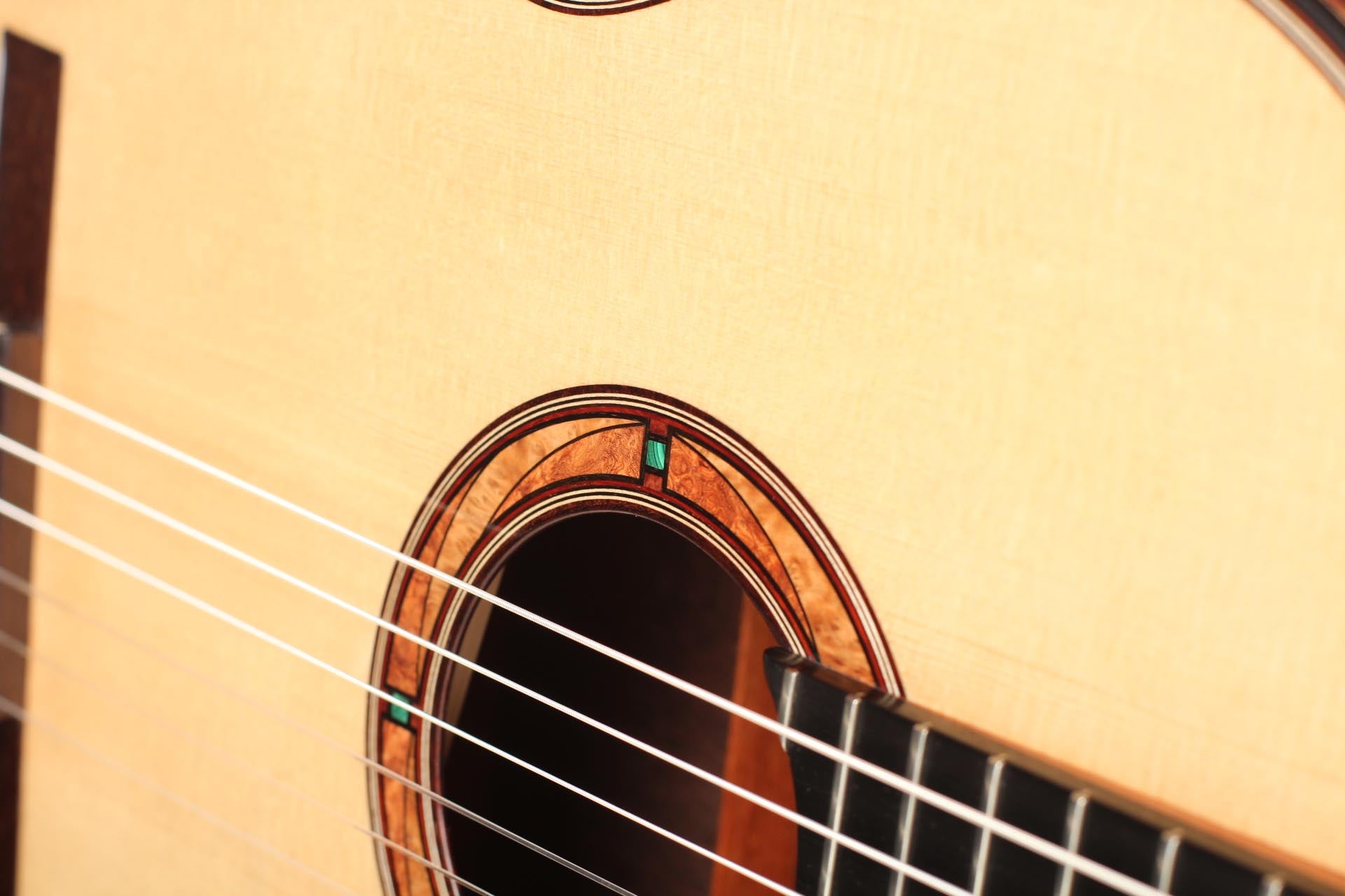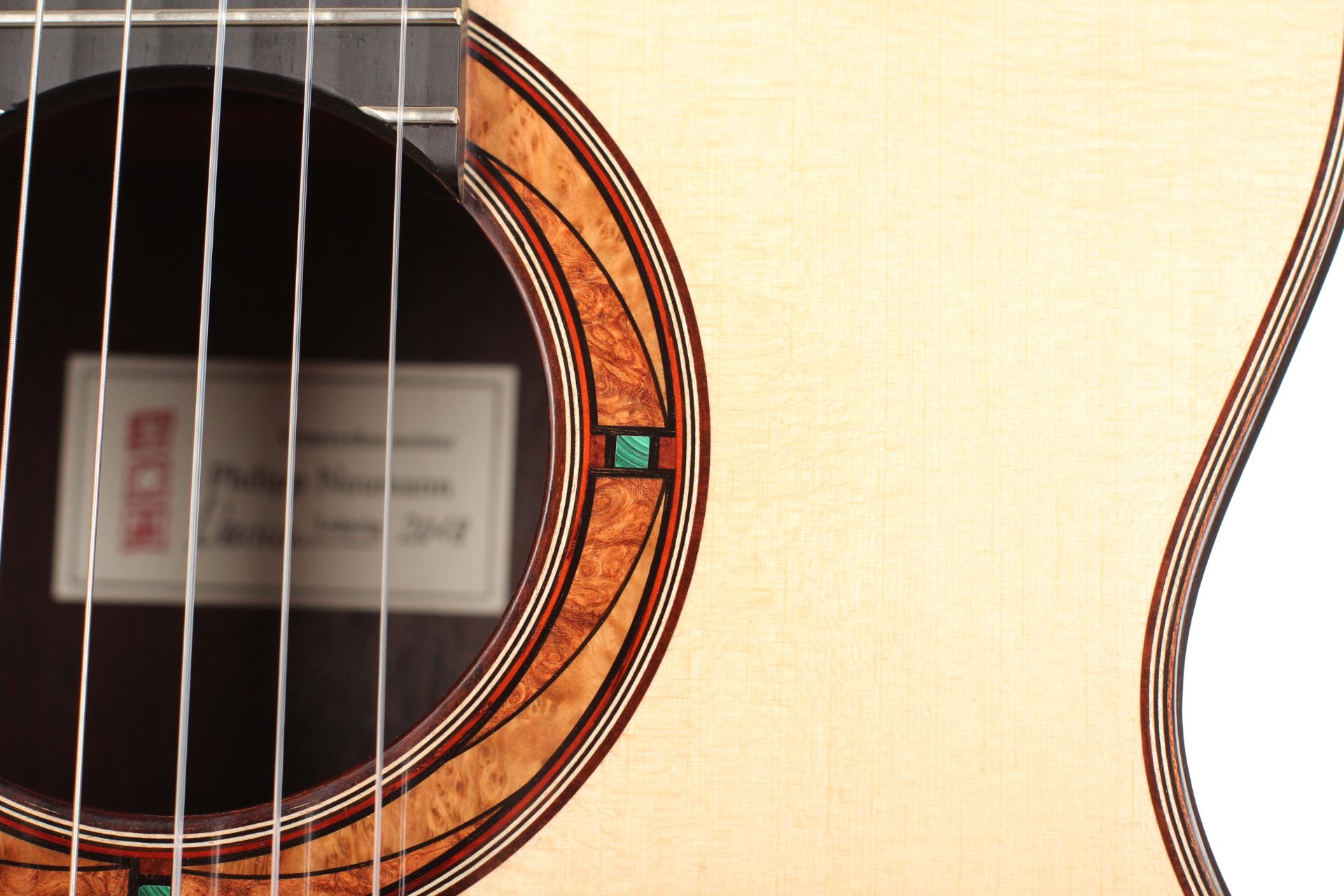 Every single one of Philipp’s guitars is the product of a long, intensive process. He uses all his knowledge and experience to produce high quality instruments. Therefore, he never builds more than two guitars at the same time, so that he can concentrate on every detail. Since the sound of the instrument depends greatly on the type of material that are used, he uses only the best quality tone woods and no prefabricated parts at all. A guitar is not finished until it completely satisfies his demands for a clear and open sound with full, round basses, velvety facials, clear, brilliant trebles, modulated timbre, a singing, sustained tone and responsiveness. The results are melodious, unique pieces and professional instruments for guitarists. His work is based on the Spanish Granada tradition of guitar making using time-tested techniques. The methods incorporate an analysis of historic guitars and modern insights into acoustic processes and the wishes of today’s musicians. Whilst he is very traditional, he is also open to experiments. He tries to combine traditional instrument building skills with modern methods in order to develop the sound of the guitar for the future.