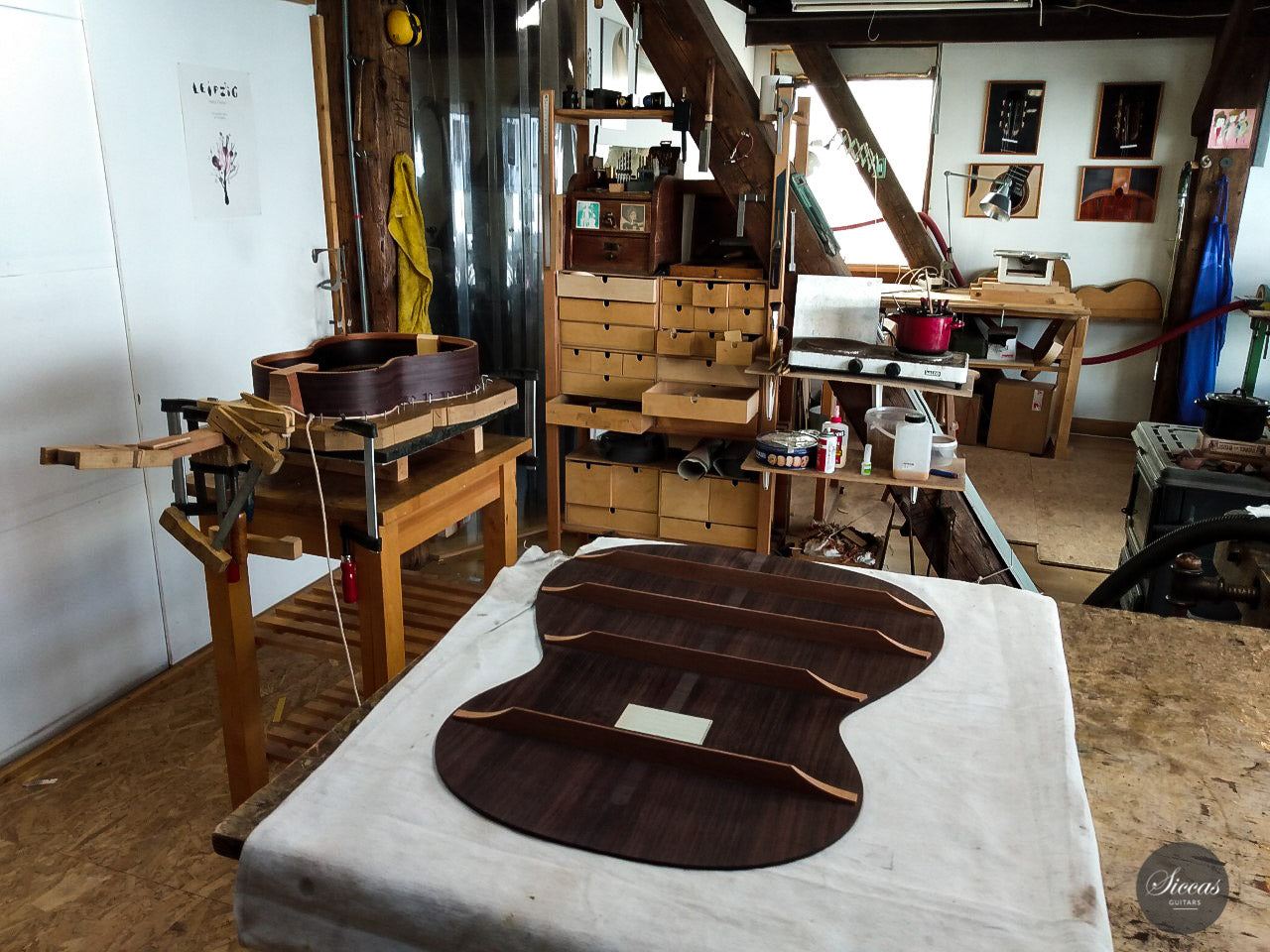 Every single one of Philipp’s guitars is the product of a long, intense process. He uses all his knowledge and experience to produce high quality instruments. Therefore, he never builds more than two guitars at the same time, so that he can concentrate on every detail. Since the sound of the instrument depends greatly on the type of material that are used, he uses only the best quality tone woods and no prefabricated parts at all. A guitar is not finished until it completely satisfies his demands for a clear and open sound with full, round basses, clear, brilliant trebles, modulated timbre, a singing, sustained tone and responsiveness. The results are melodious, unique pieces and professional instruments for guitarists. His work is based on the Spanish Granada tradition of guitar making using time-tested techniques. The methods incorporate an analysis of historic guitars and modern insights into acoustic processes and the wishes of today’s musicians. Whilst he is very traditional, he is also open to experiments. He tries to combine traditional instrument building skills with modern methods in order to develop the sound of the guitar for the future.