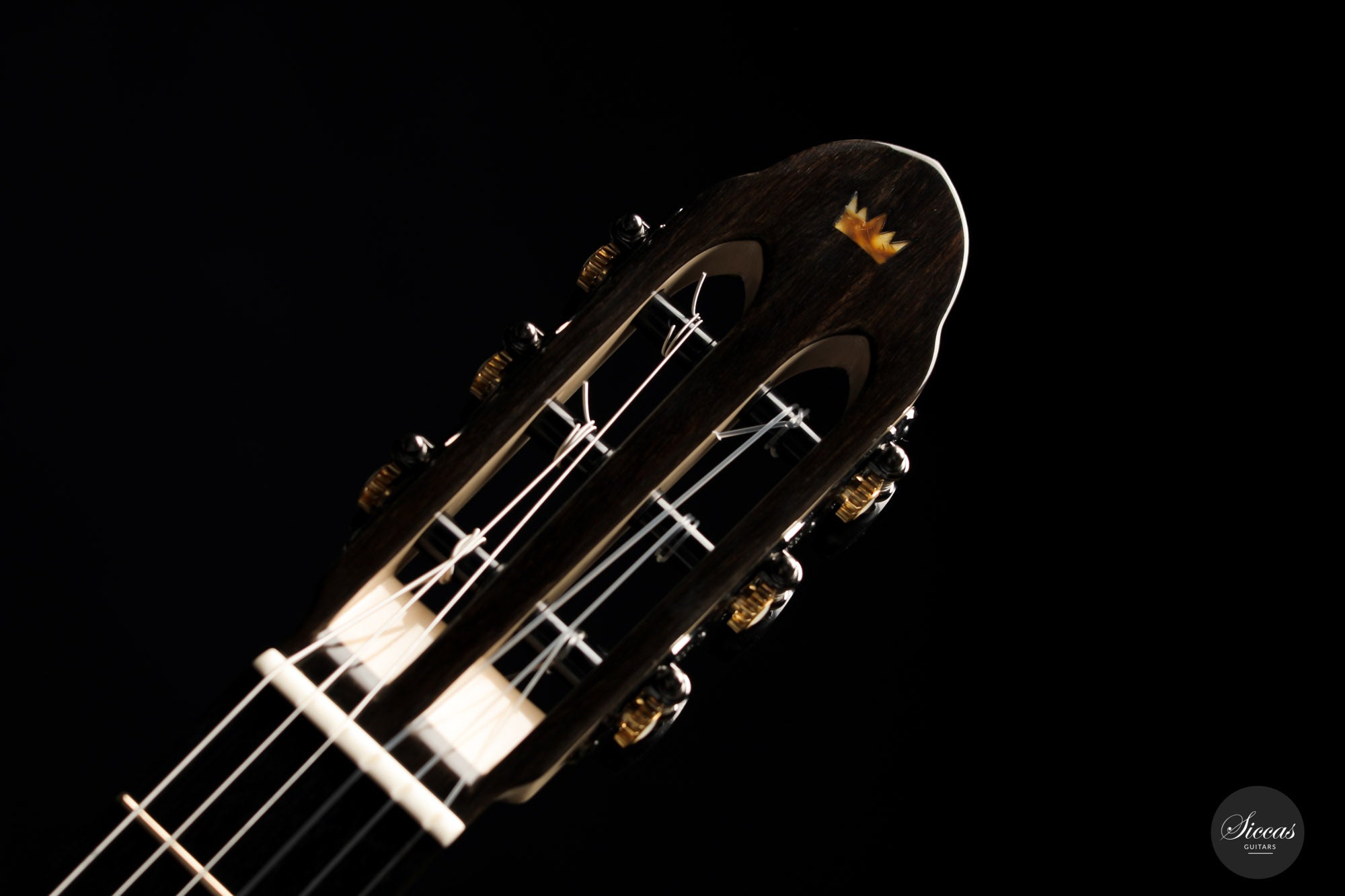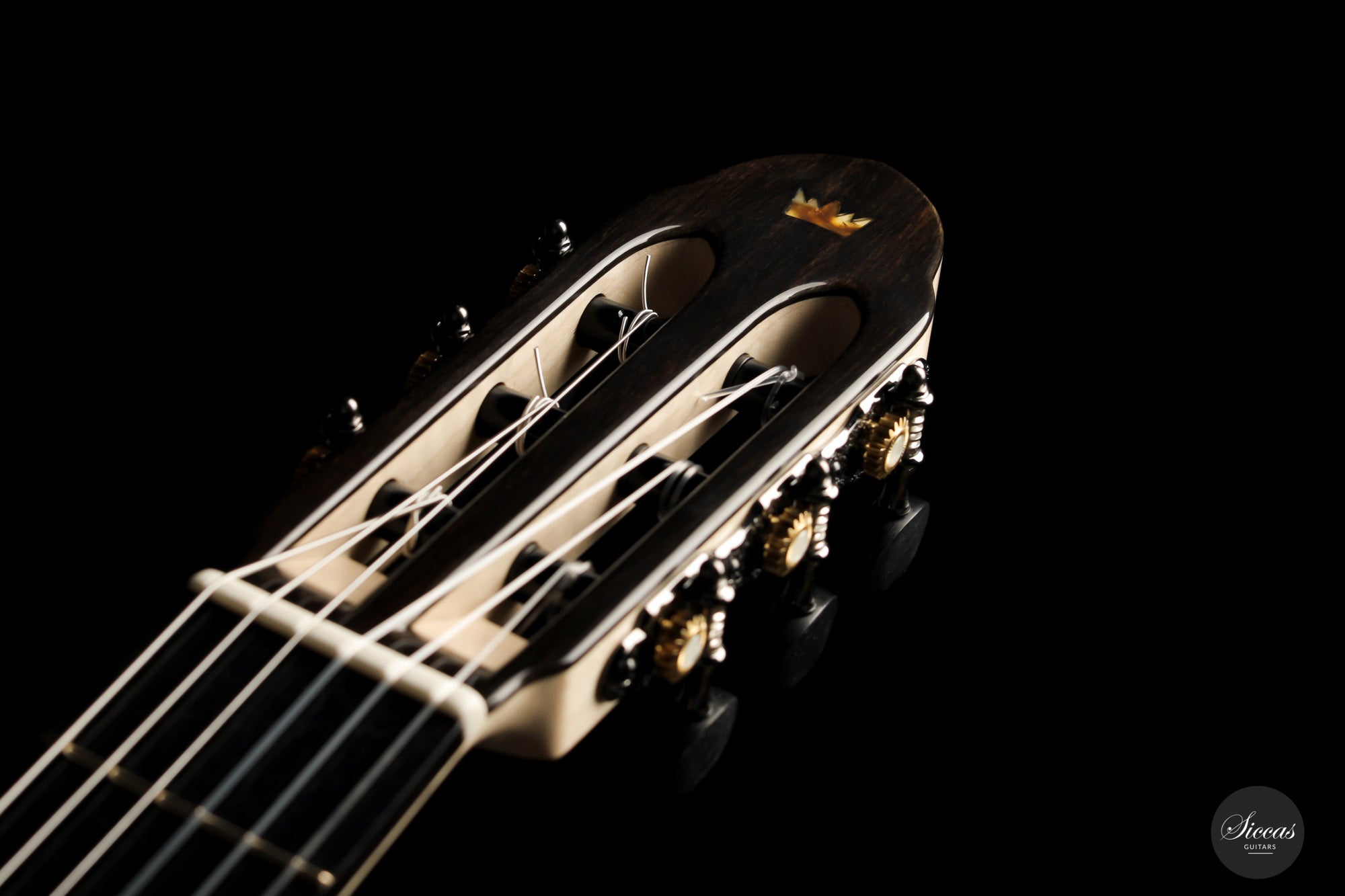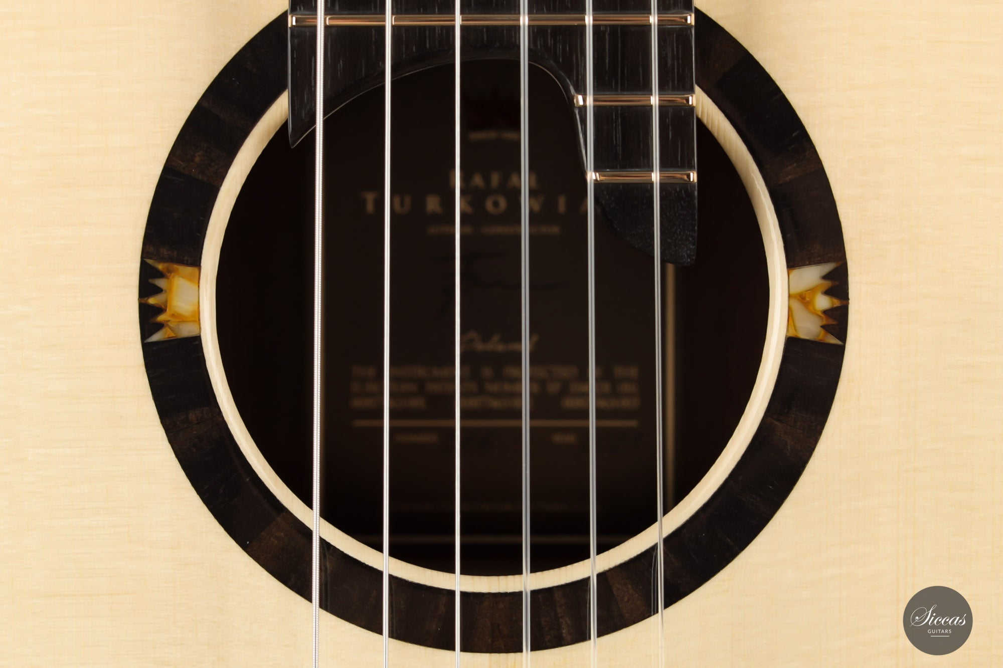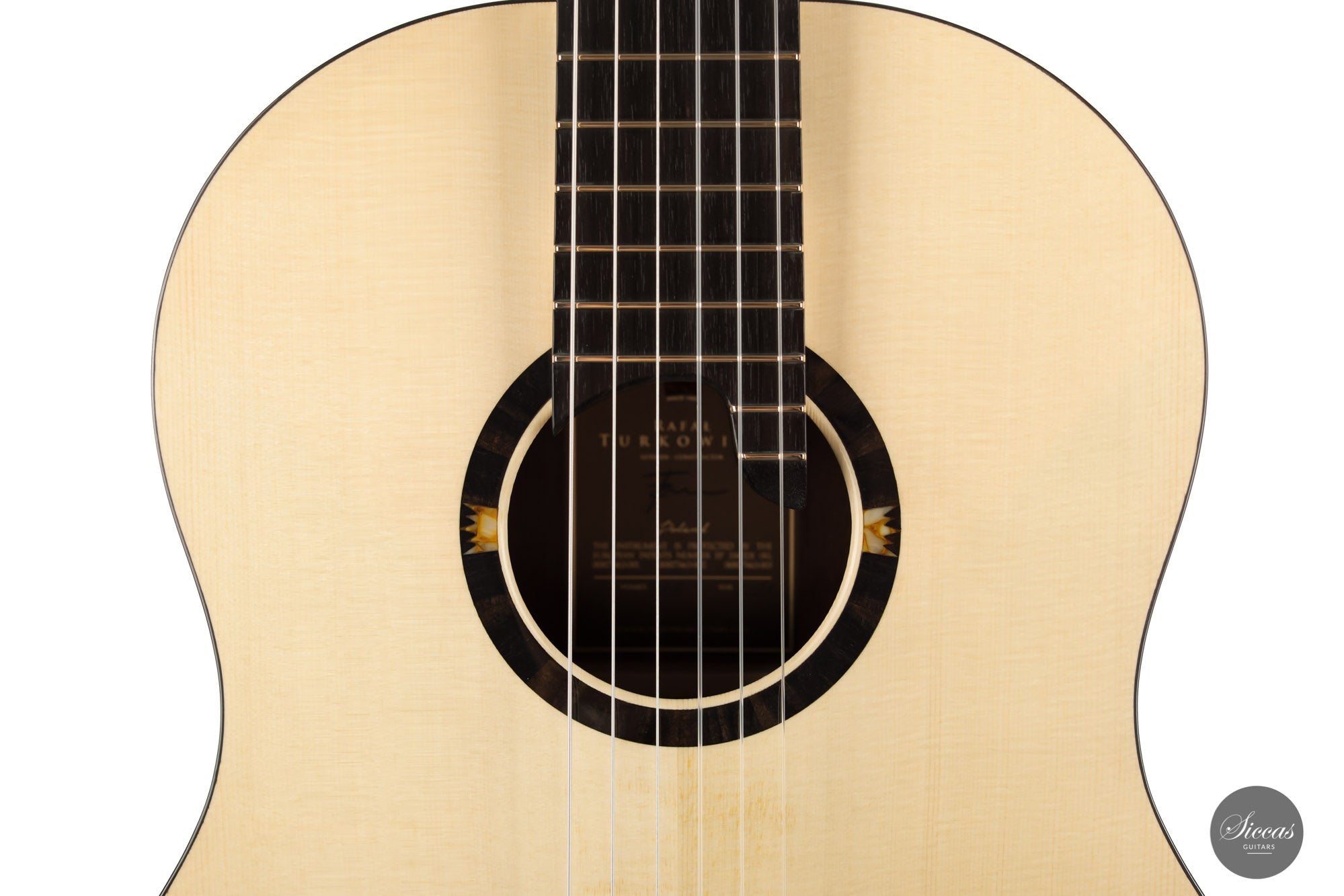 This unique guitar is very easy to play and shows a rich steady tone. With abundant, yet controlled, overtones, the first e string is genuinely reliable and offers a consistent sustain up to the highest notes. This feeling of consistency and evenness is to be found all around the registers of this guitar. Yet offering an ample volume, one really notices that Turkowiak focused on the quality of sound and balance for this marvellous instrument.