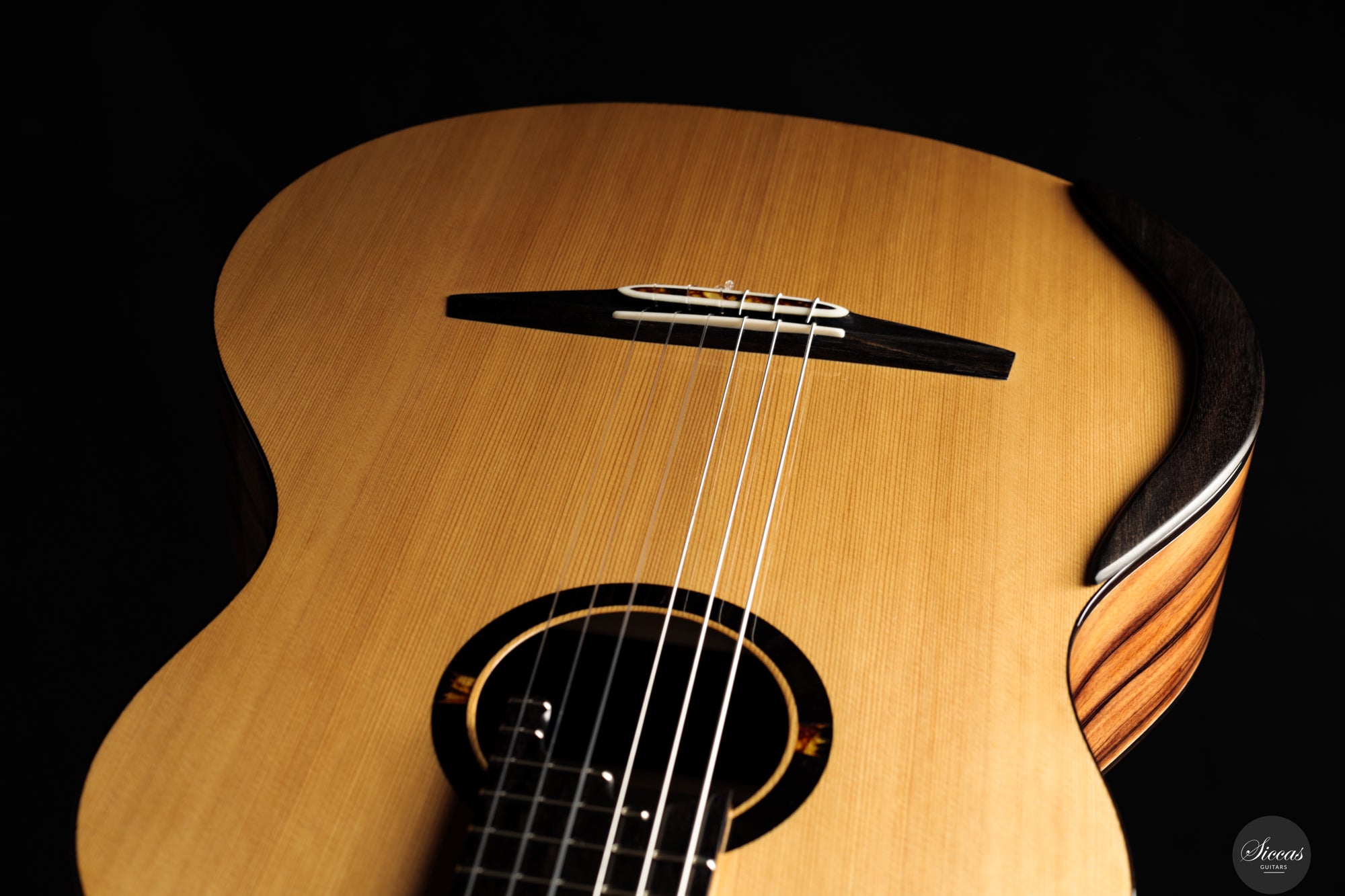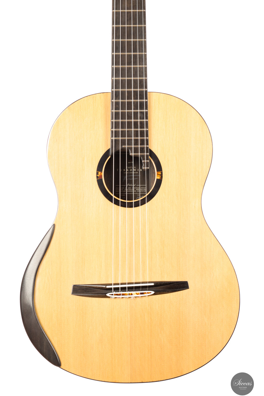 Rafal Turkowiak was born in 1966 in Golanice near Leszno, Poland. Coming from a family of craftsmen, with his father being a carpenter and his grandfather a wheelwright, he was introduced early to the world of woodwork and material knowledge. Over more than two decades of guitar making, he has developed a scientific and innovative approach to lutherie. This dedication to research and experimentation led him to create his distinctive “WAVE” structural concept, which enhances the guitar’s resonance and projection.About the guitar