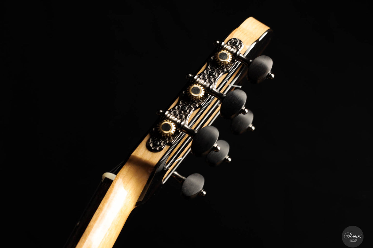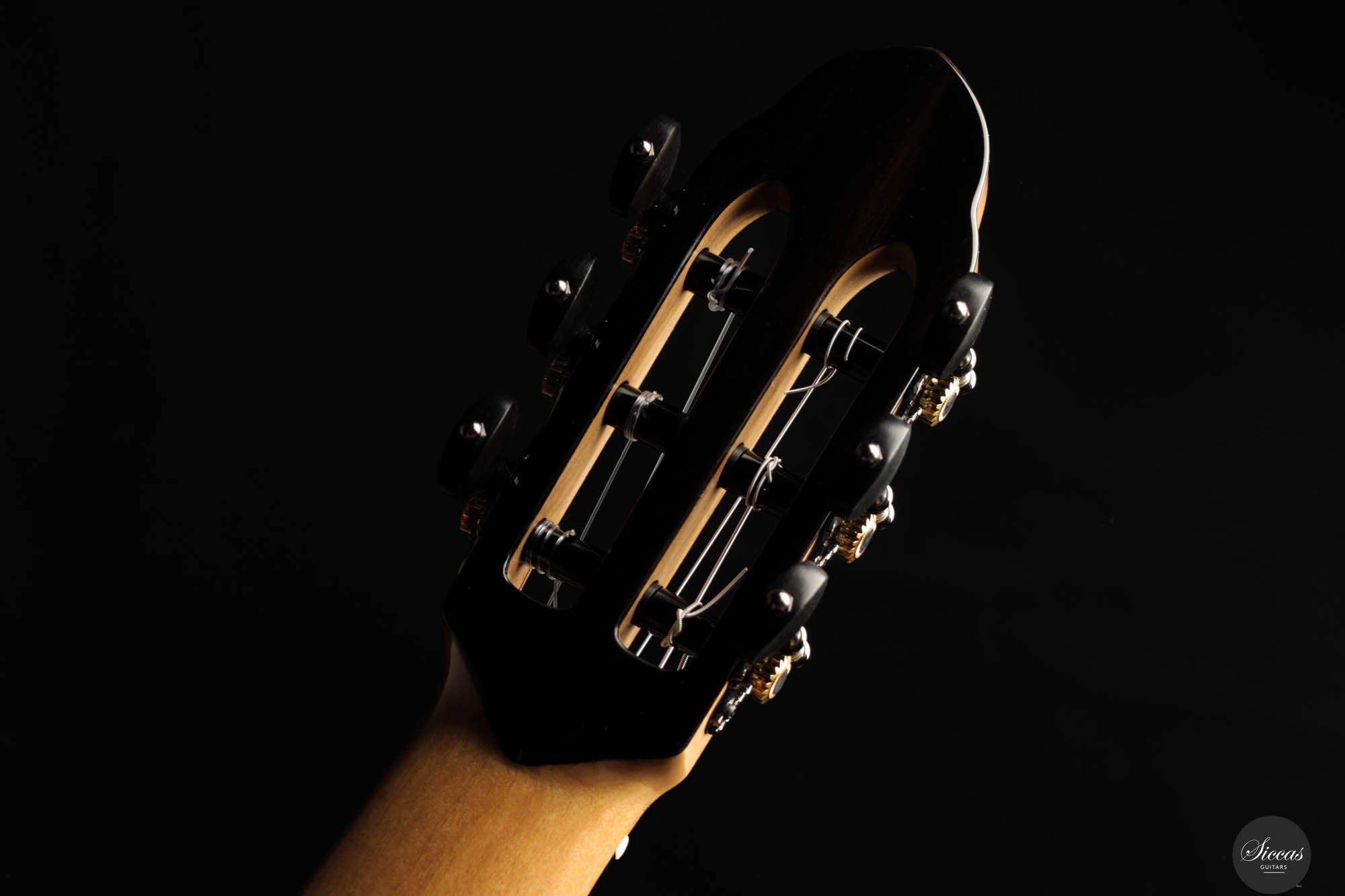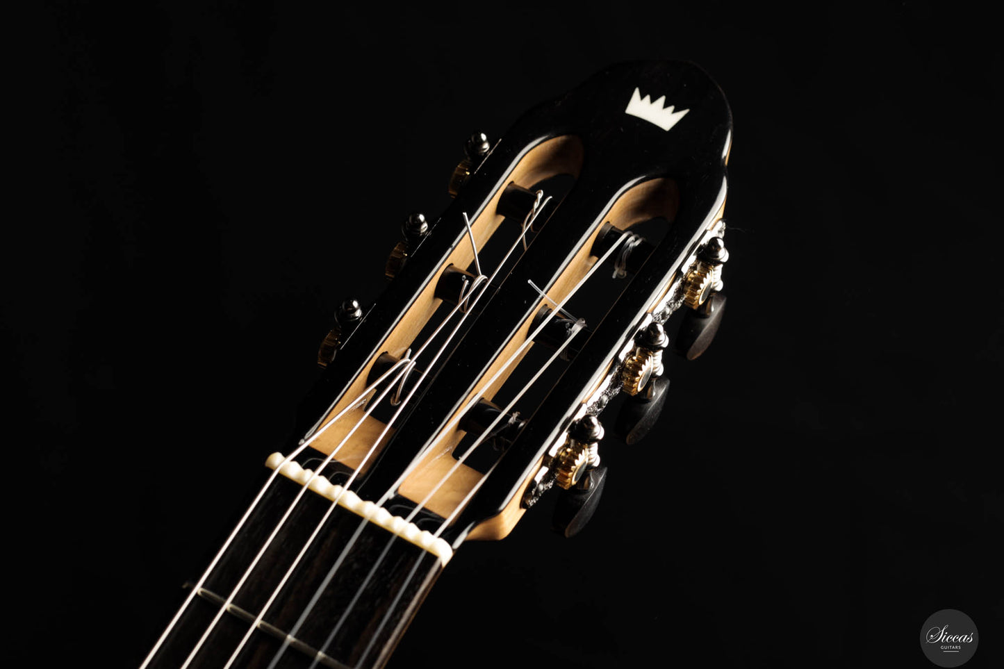 The Rafal Turkowiak Guitar No. 680, called "Opus Prime," marks the next step in his evolving craftsmanship, following the celebrated “The Queen of Guitars” model. This unique instrument has a spruce double-top, providing remarkable volume and playability. A distinctive feature is the “Acoustic Tubes” inside the neck, which enrich the guitar’s resonance, creating a warm, enveloping sound that fills the room. The hollow neck is specially reinforced to add stiffness, contributing to both stability and tonal quality.