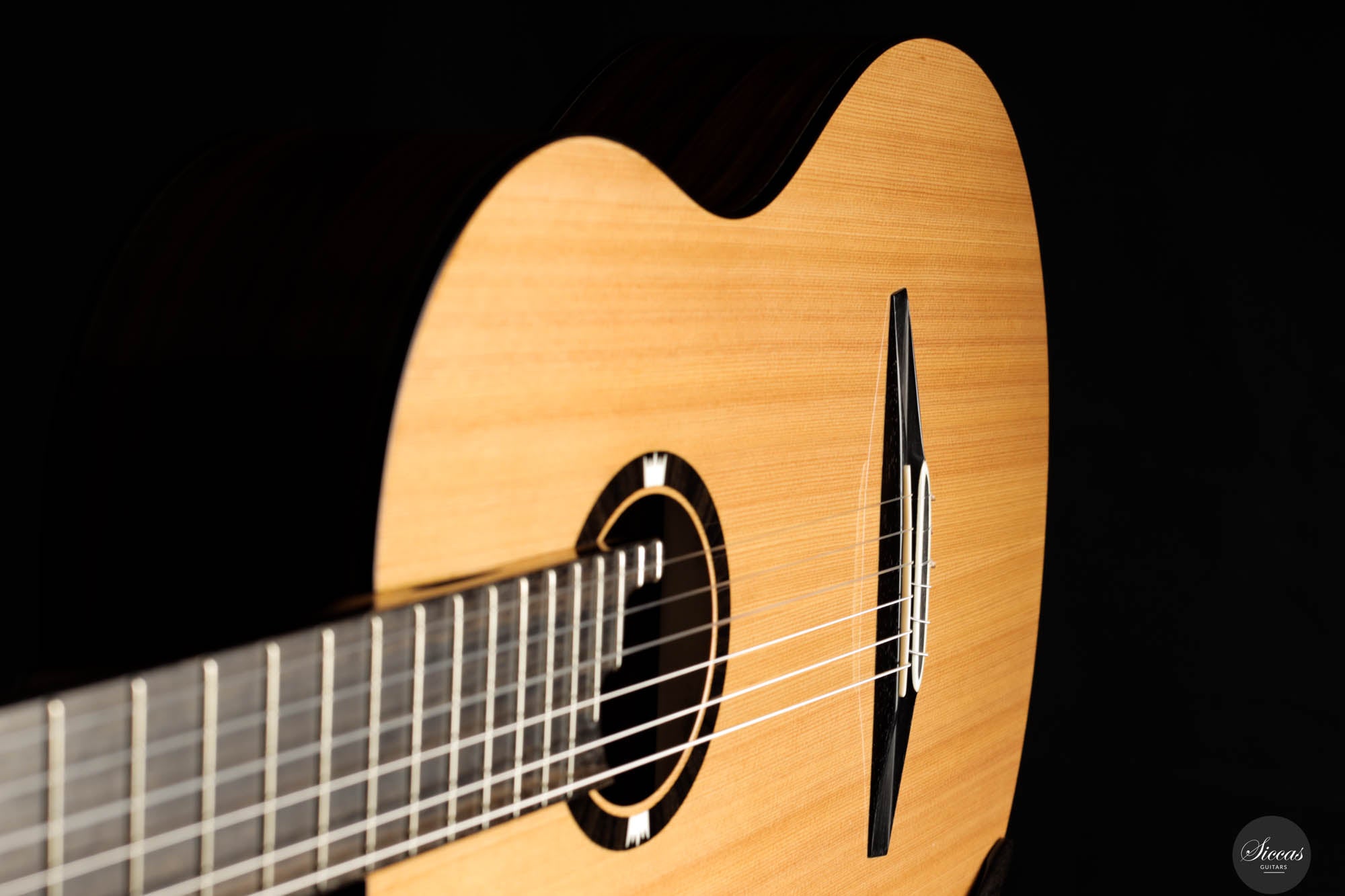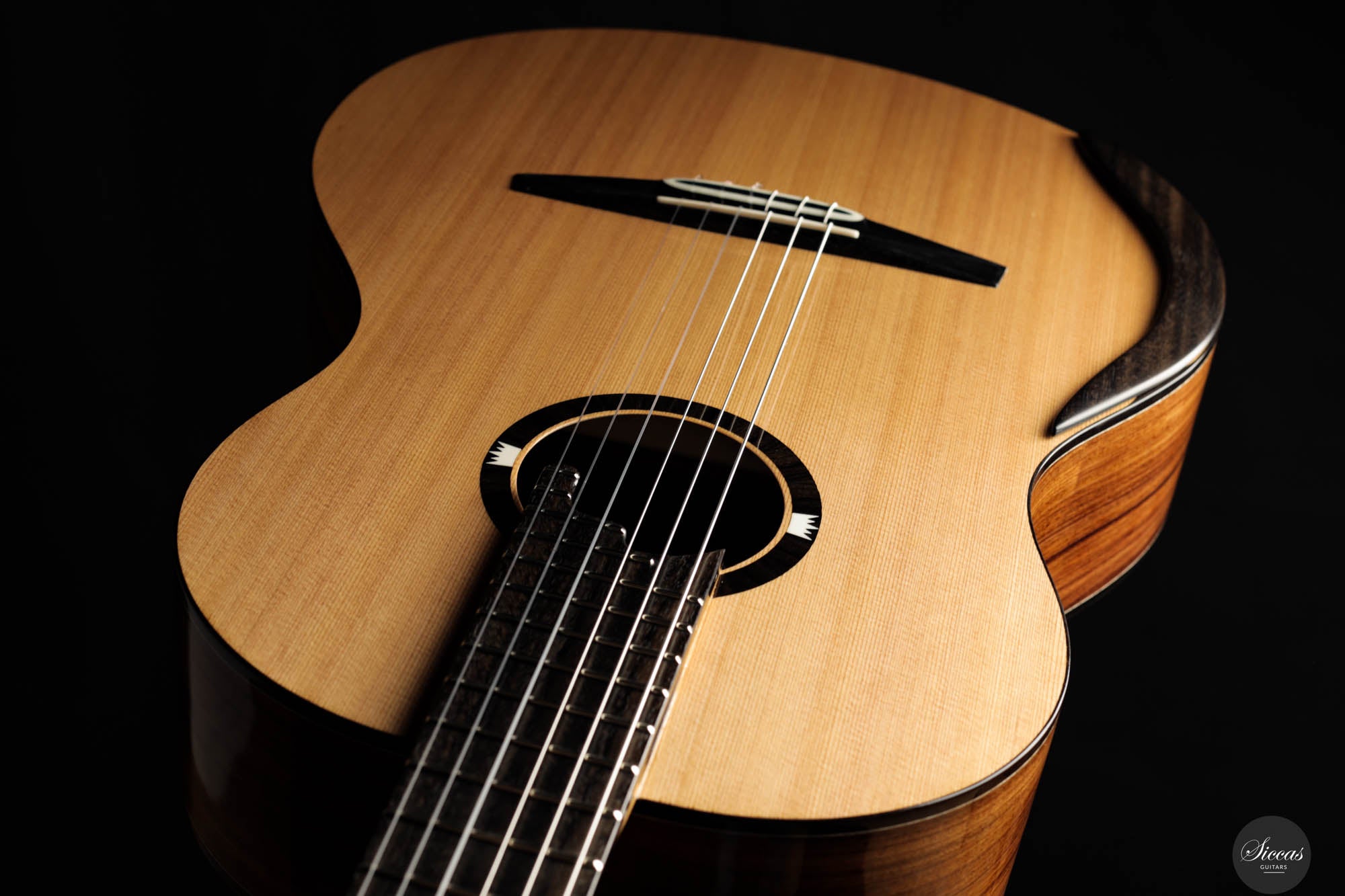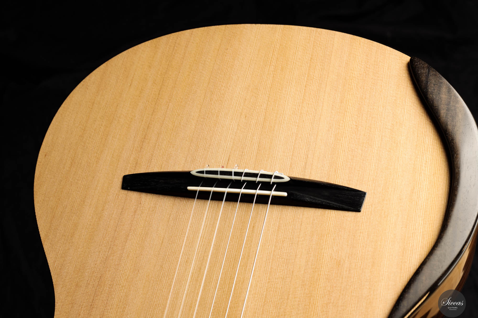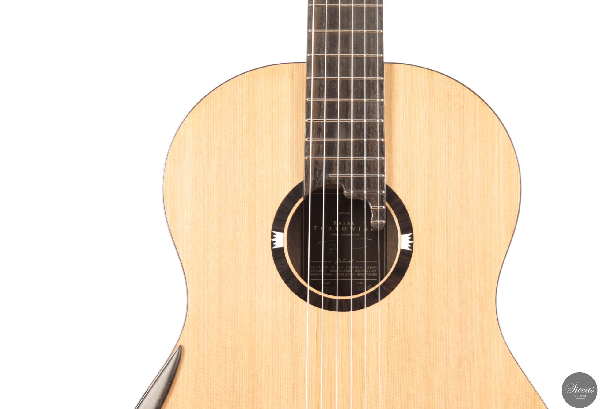 On the sound side, the trebles are warm and sweet, with precise voice separation that delivers a balanced and inspiring playing experience. The basses are deep, with a low resonance close to E. This guitar also has excellent playability, thanks to its 64 cm scale and well-shaped neck, and includes 21 frets that reach up to a sharp C note. Overall, this remarkable guitar exemplifies Turkowiak’s dedication to artistry and acoustic excellence, providing joy and satisfaction to any guitarist.