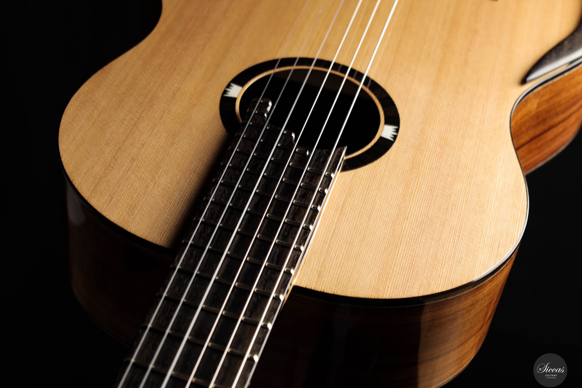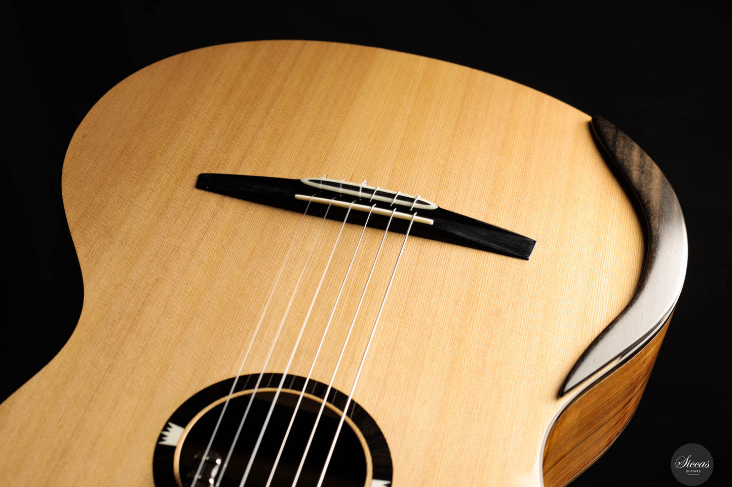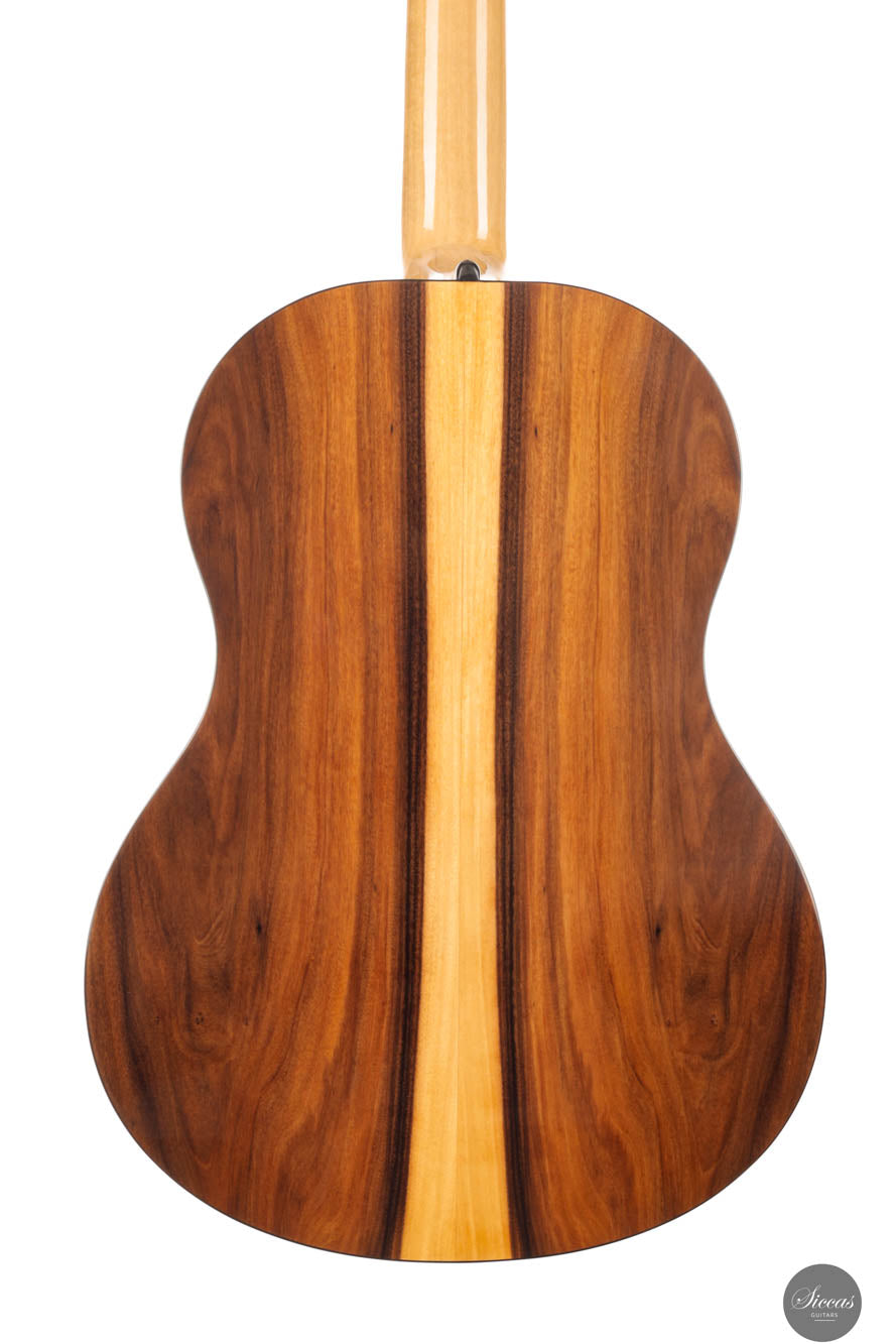 On the sound side, the trebles are warm and sweet, with precise voice separation that delivers a balanced and inspiring playing experience. The basses are deep, with a low resonance close to E. This guitar also has excellent playability, thanks to its 64 cm scale and well-shaped neck, and includes 21 frets that reach up to a sharp C note. Overall, this remarkable guitar exemplifies Turkowiak’s dedication to artistry and acoustic excellence, providing joy and satisfaction to any guitarist.