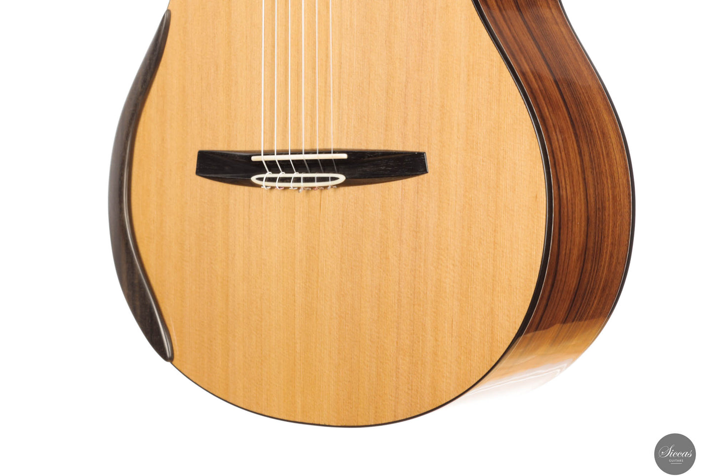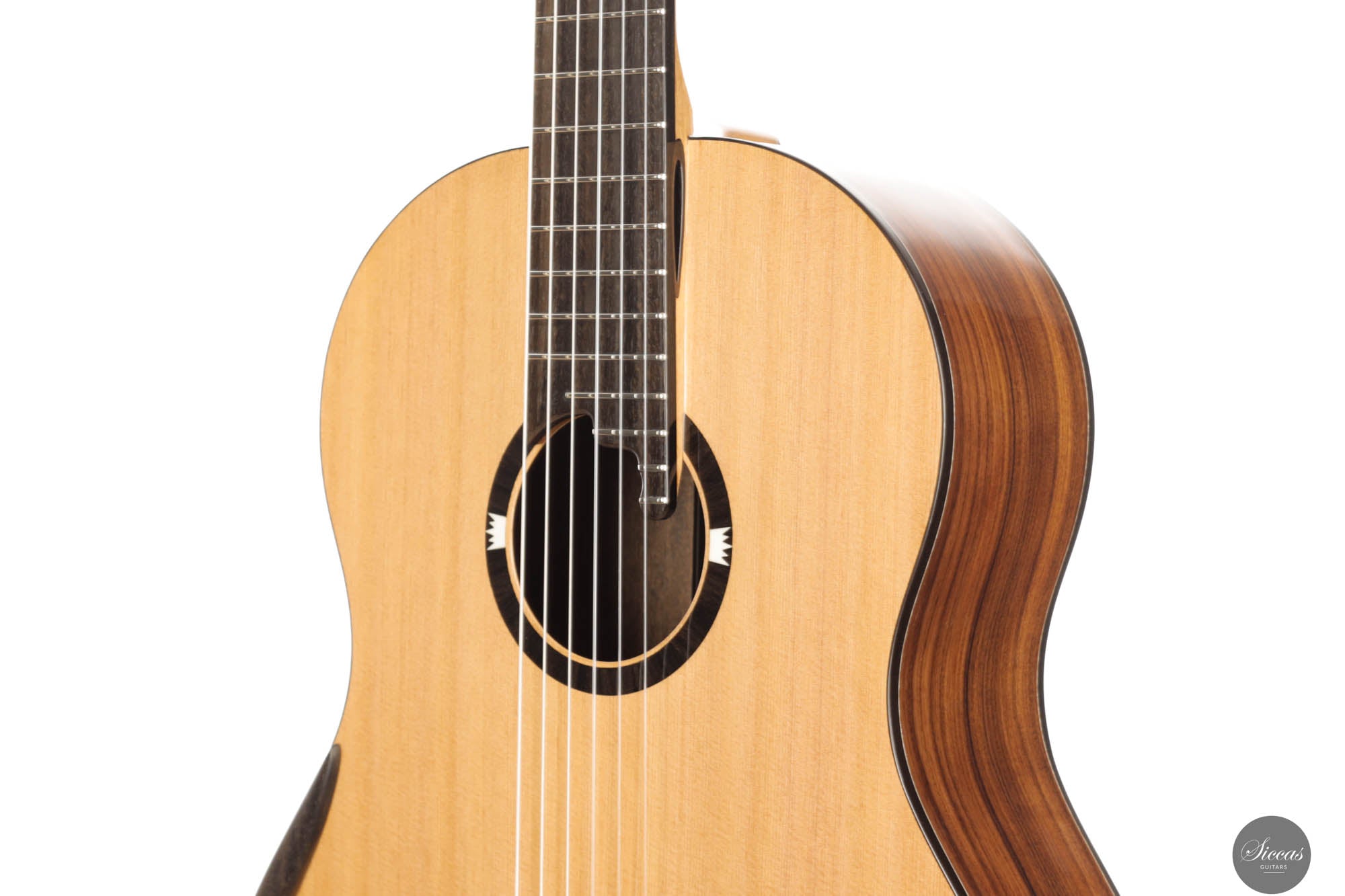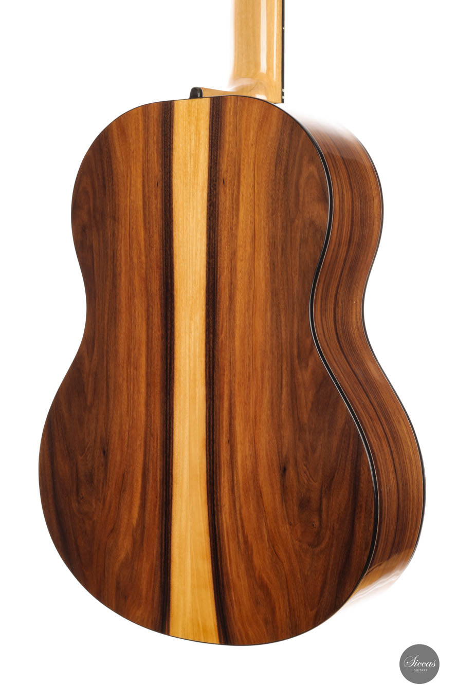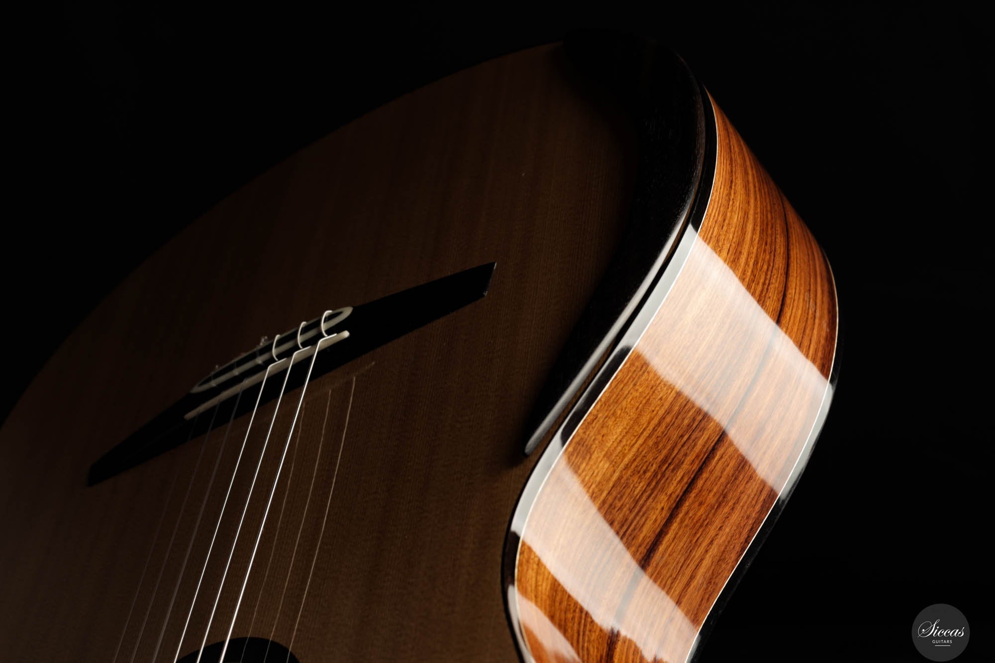 On the sound side, the trebles are warm and sweet, with precise voice separation that delivers a balanced and inspiring playing experience. The basses are deep, with a low resonance close to E. This guitar also has excellent playability, thanks to its 64 cm scale and well-shaped neck, and includes 21 frets that reach up to a sharp C note. Overall, this remarkable guitar exemplifies Turkowiak’s dedication to artistry and acoustic excellence, providing joy and satisfaction to any guitarist.