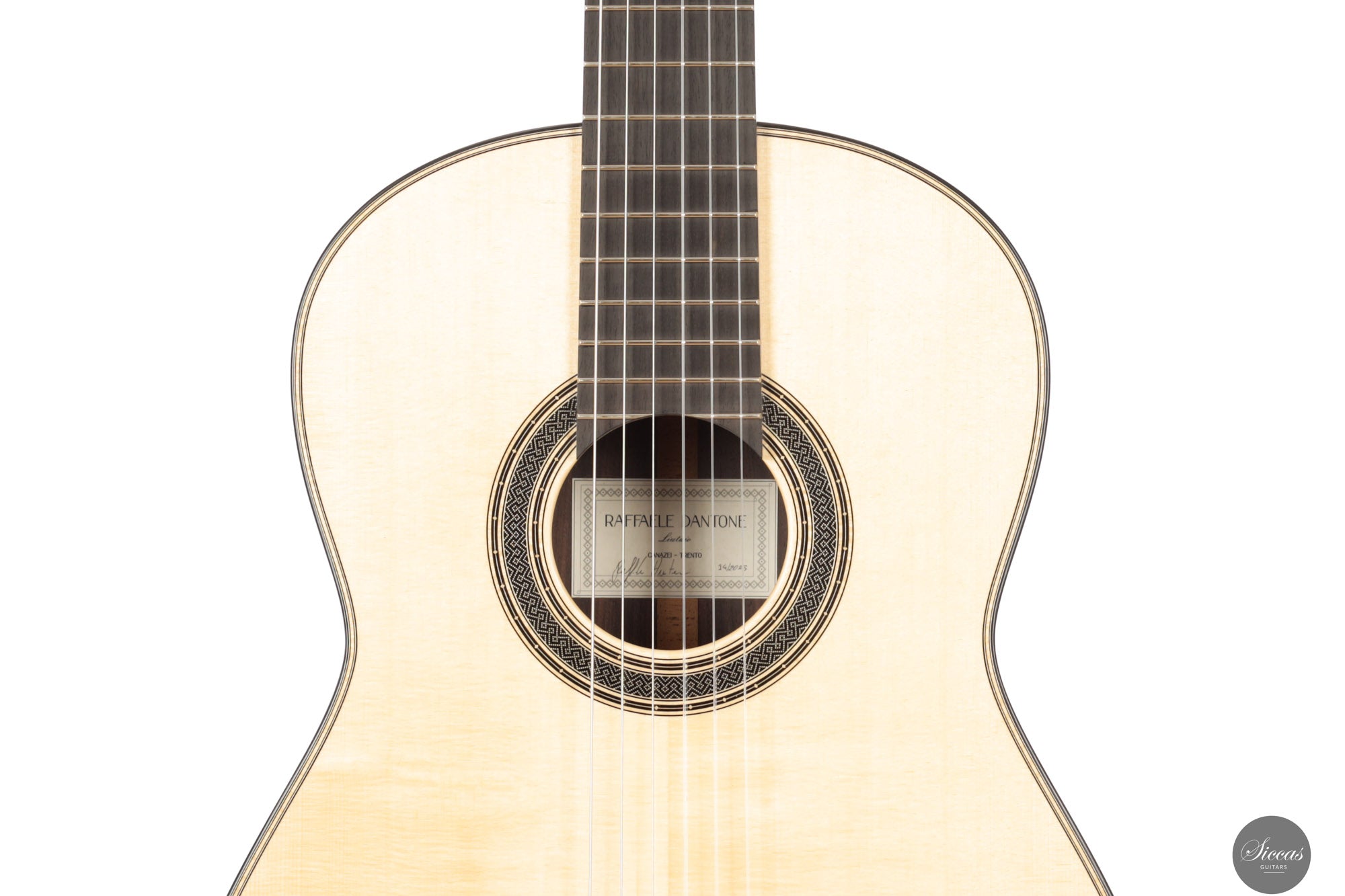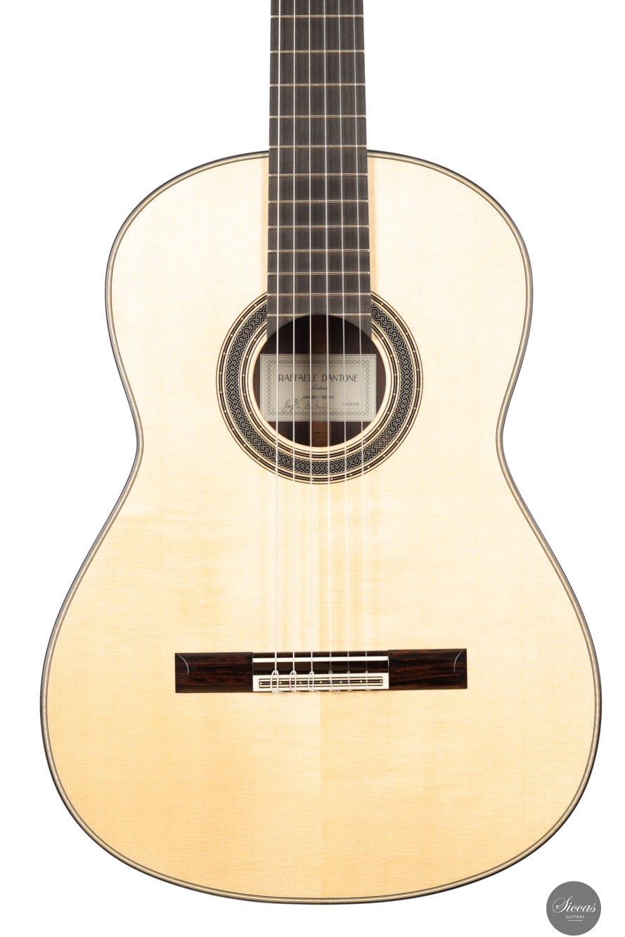 Italian luthier Raffaele Dantone builds his instruments in Canazei, in the Dolomites, where he combines a strong respect for the Torres and Bouchet traditions with his own ongoing research. His guitars are characterized by carefully selected tonewoods, refined craftsmanship, and an approach that emphasizes clarity, projection, and expressive range. Each instrument reflects his continuous exploration of bracing concepts and soundboard architecture, aimed at balancing power with the warmth and beauty of a traditional voice.