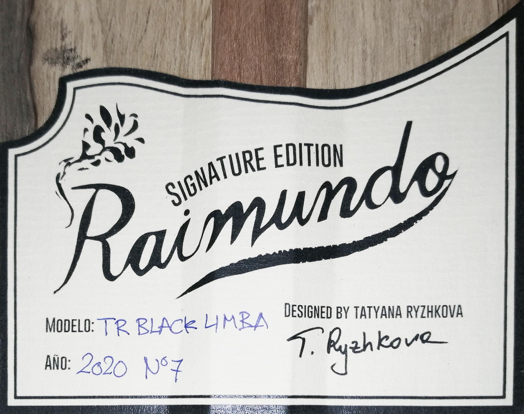 This fully solid guitar was developed in Spain by Raimundo Guitars in collaboration with the internationally renowned classical guitarist Tatyana Ryzhkova, who personally selected the woods, neck profile, head shape and design of the label. The Signature model is available with both cedar and spruce top. It is an instrument for advanced guitarists or players who want to make a quality leap. It is an exclusive instrument that combines the quality and sound of Raimundo guitars with the features selected by Tatyana Ryzhkova and is available at a very attractive price. This model with cedar top has a warm sound and is very comfortable to play due to the pleasant string action and the neck with D-profile.