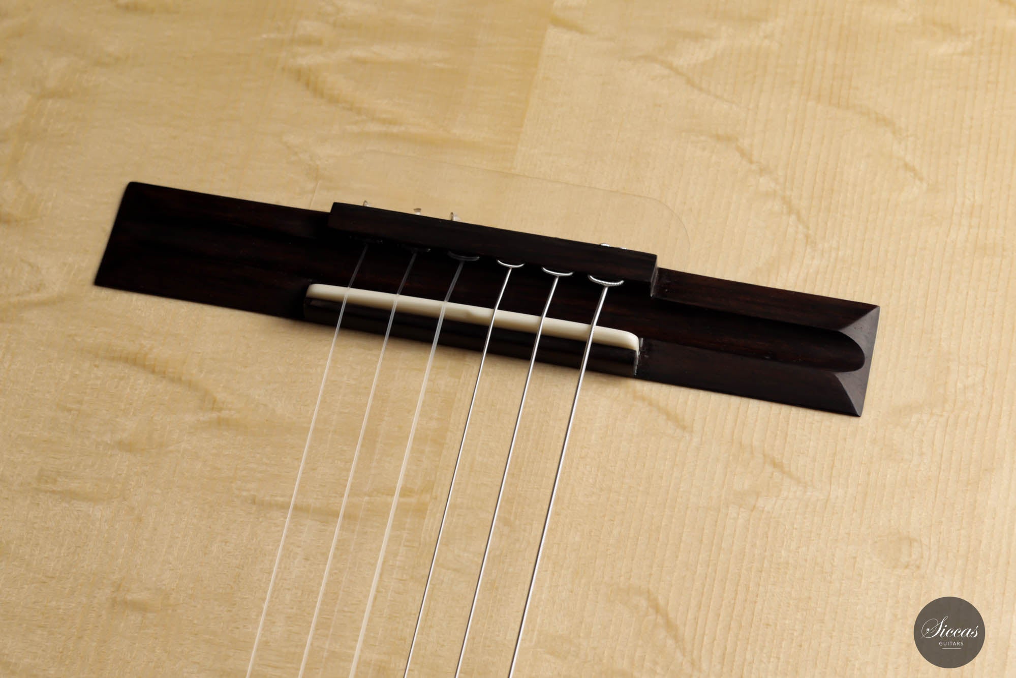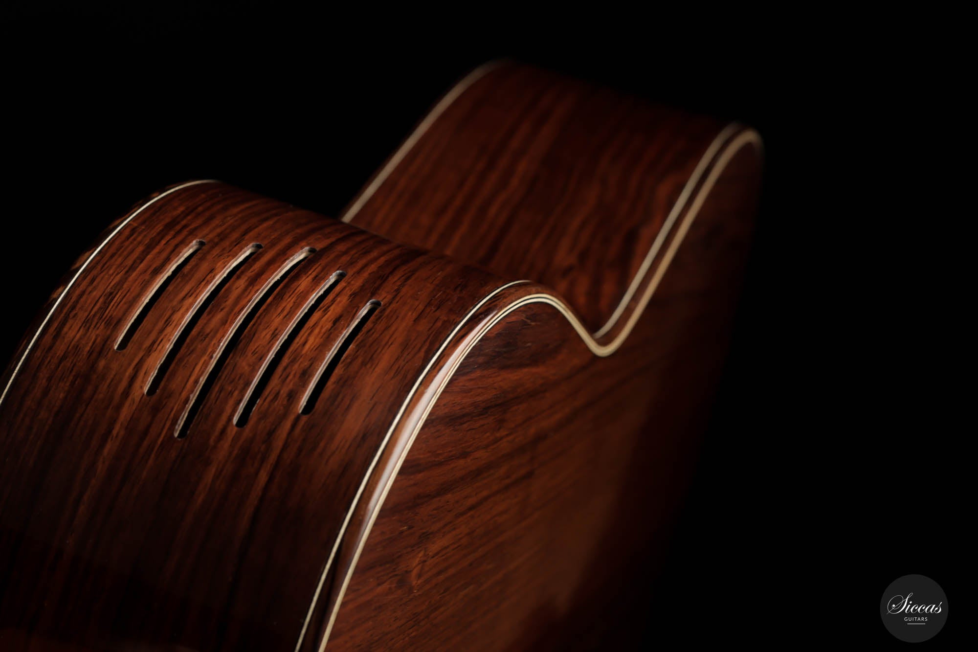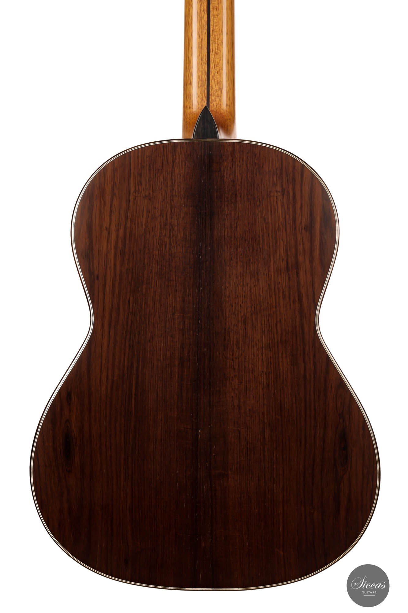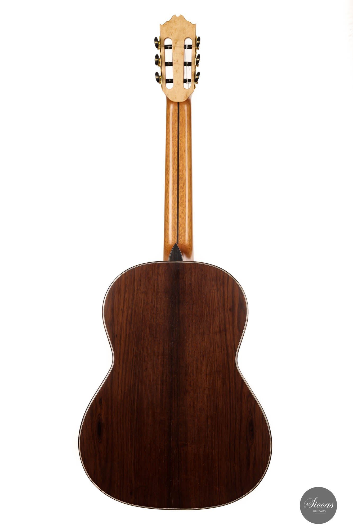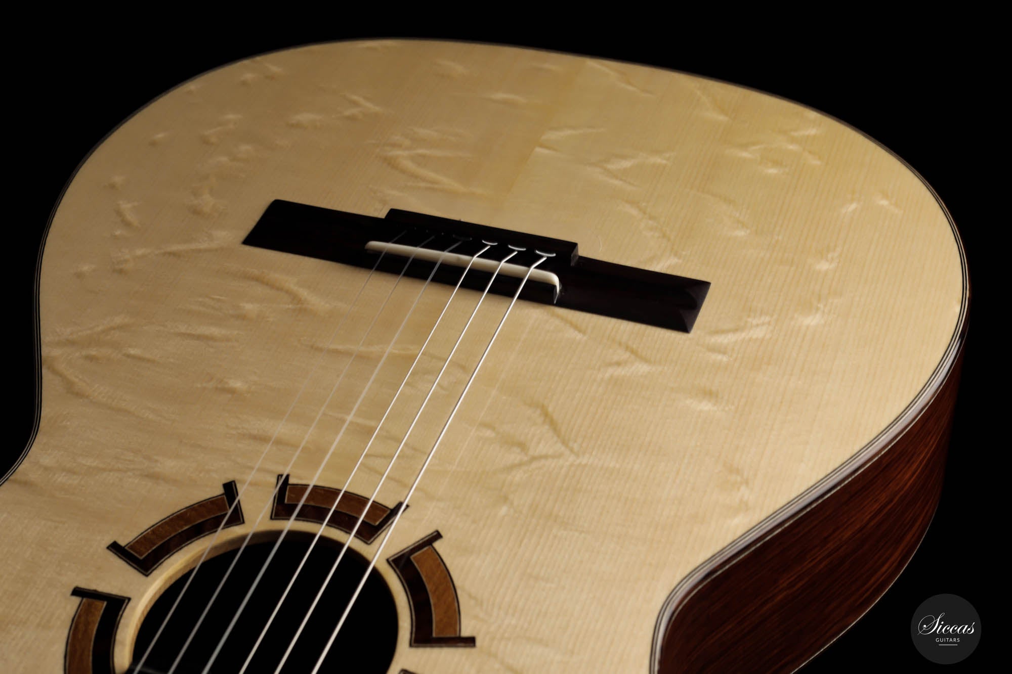 This guitar, no. 424 is a beautiful-sounding instrument in all regards. It has a beautiful bearclaw spruce soundboard and precious Amazonas rosewood back and sides which are a treat to the eyes. As a traditionally built instrument, it also has several advantages of the modern concert instrument, such as a unique design sound port and an outstanding volume that will easily fulfill the needs of concert performers in any situation. Moreover, it has an exceptional balance between every voice of this instrument. The responsive basses do not overpower the other voices and vice versa. This guitar is a budget-friendly instrument that offers a vast range of possibilities for the guitarist to explore.