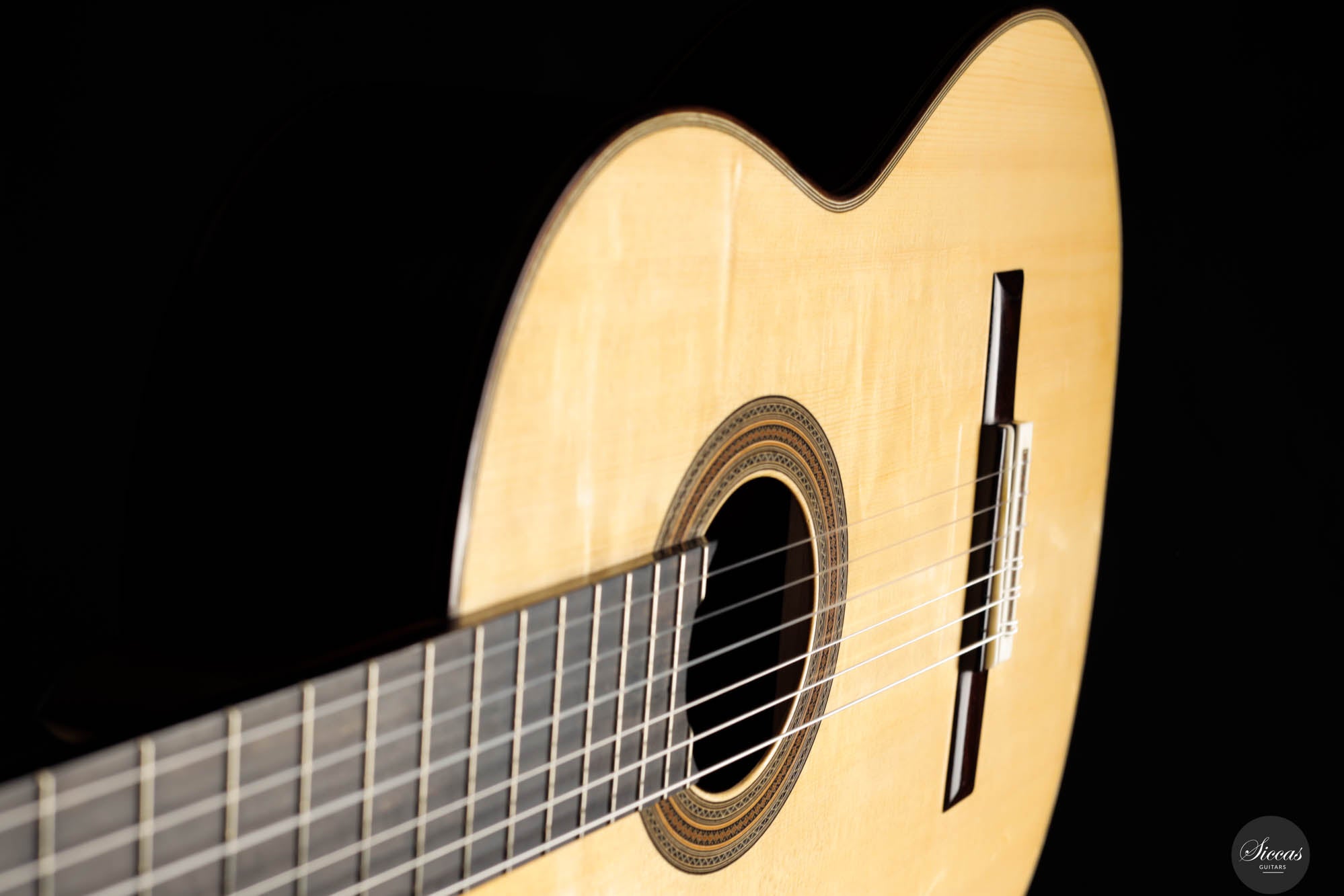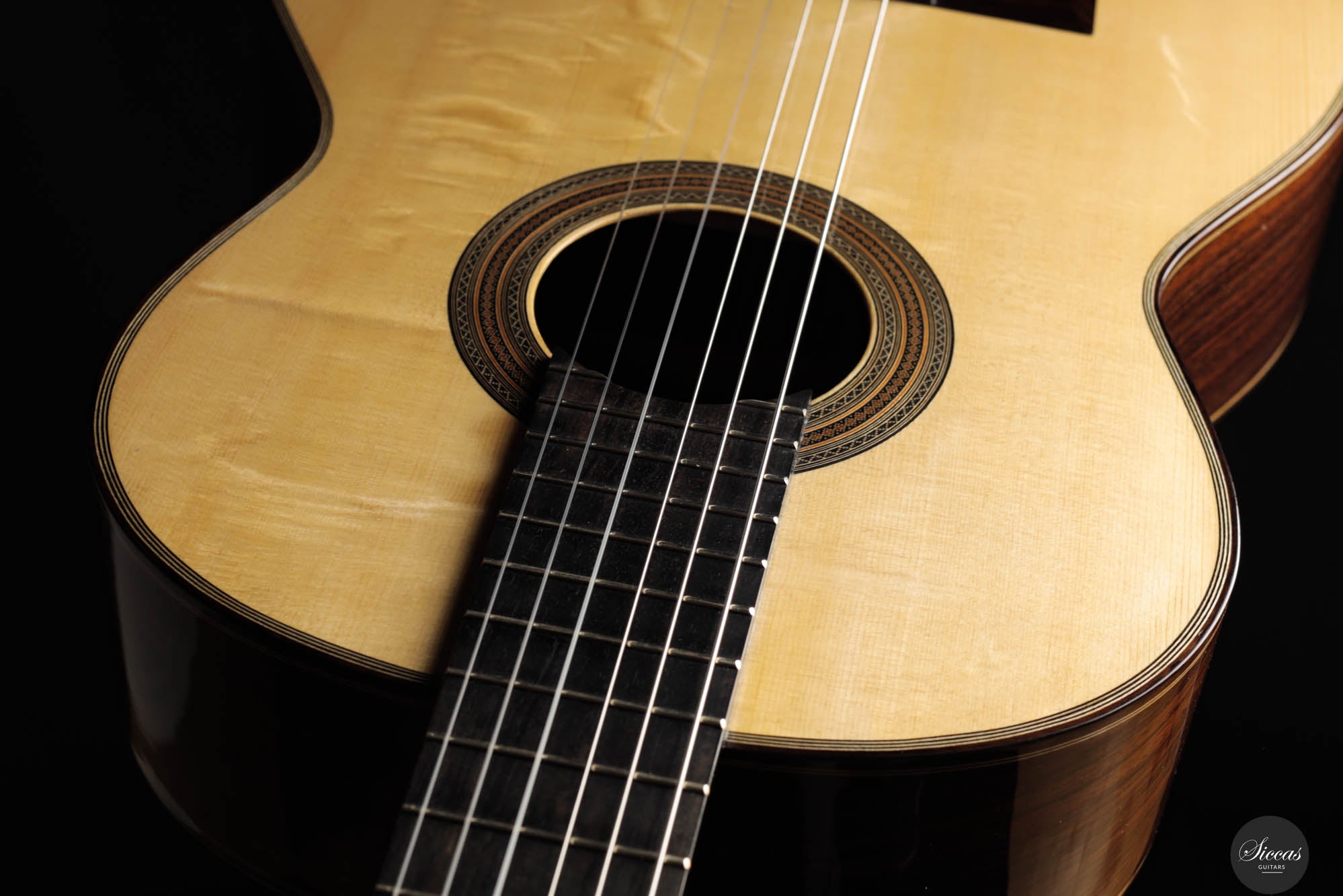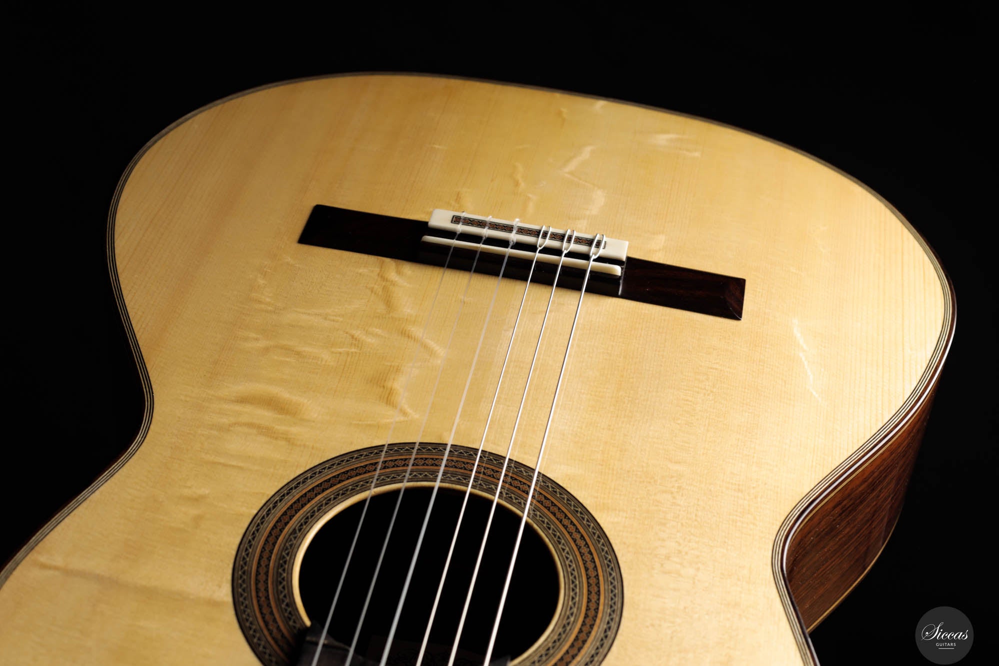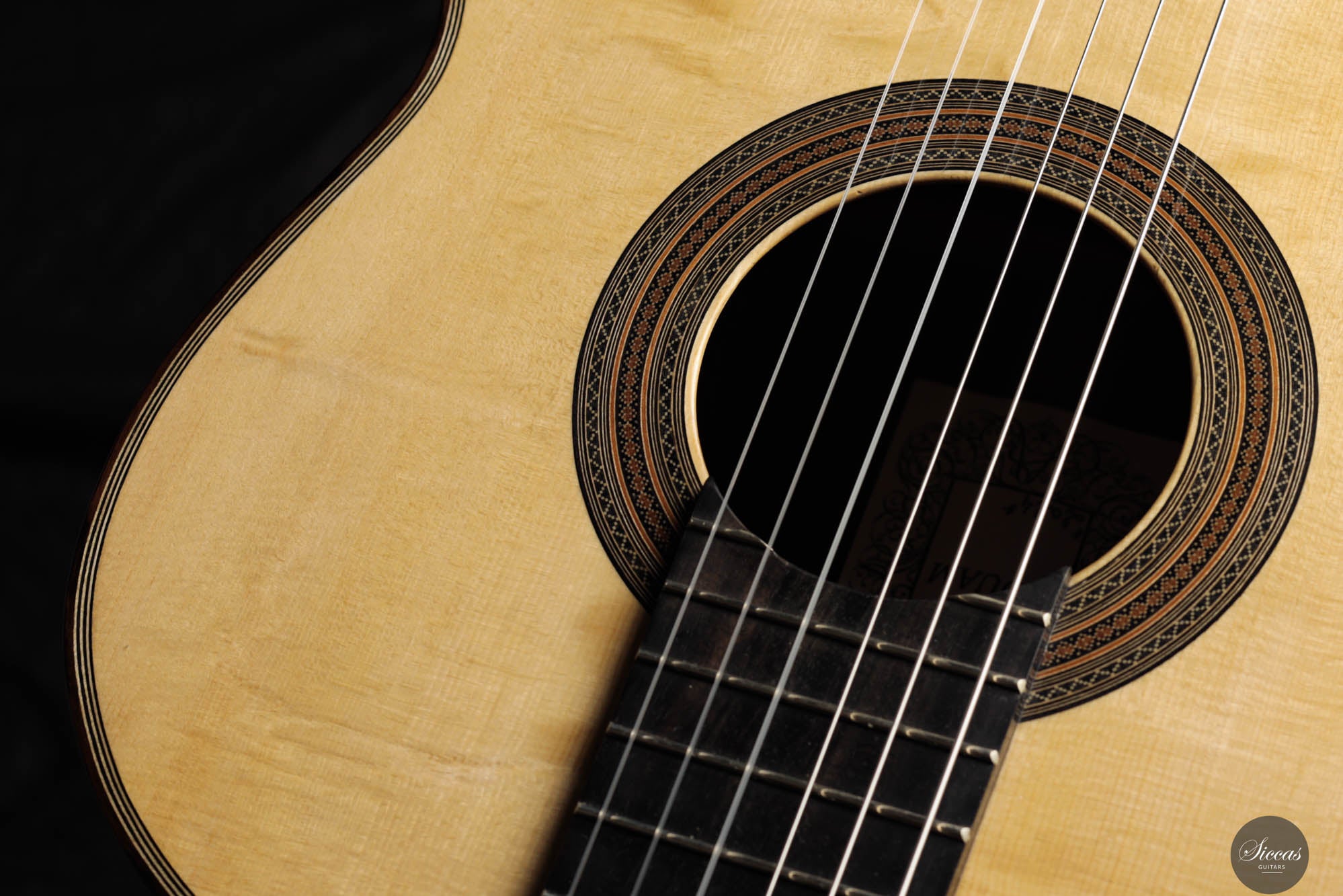 Be mindful when touching your instrument with greasy or unwashed hands: any skin contact is a small attack on the varnish. Of course, a guitar is made to be played, but taking a few precautions helps preserve its beauty: wash your hands before playing, wear long sleeves, and avoid unnecessary direct skin contact with the body of the instrument.