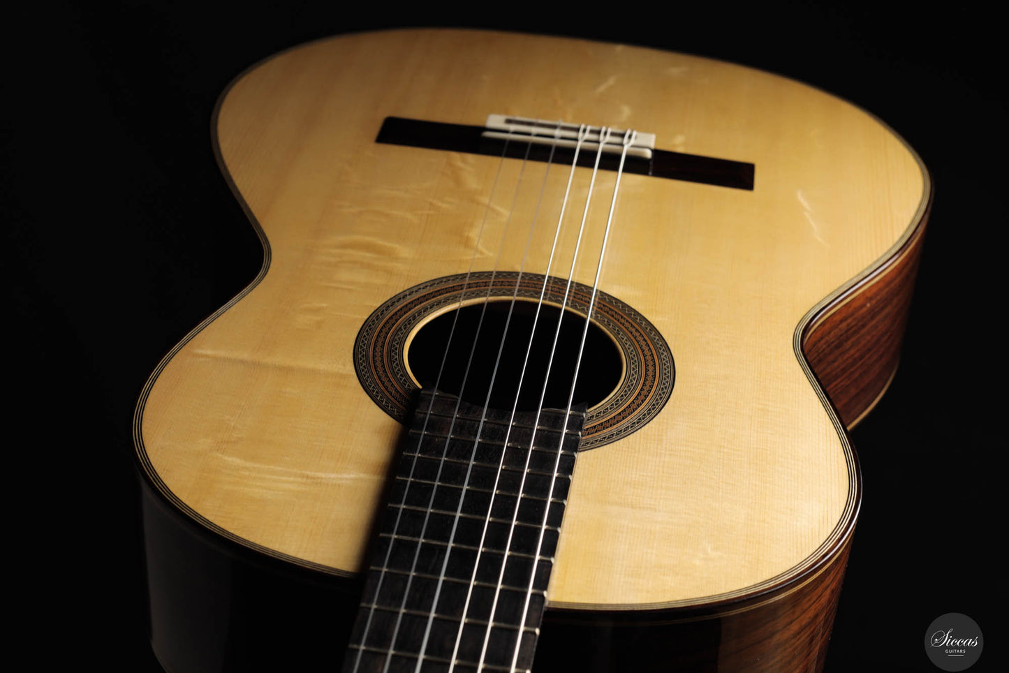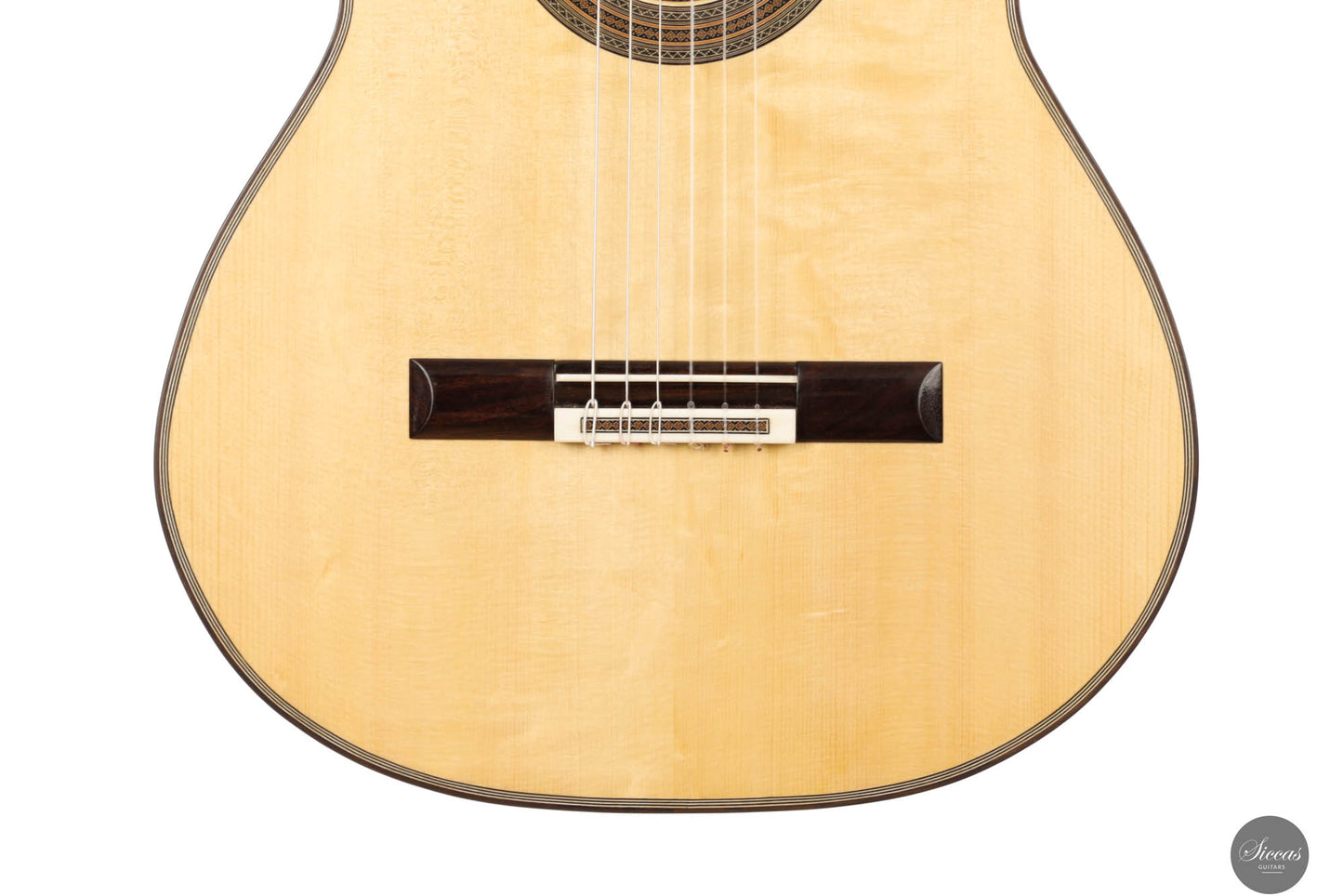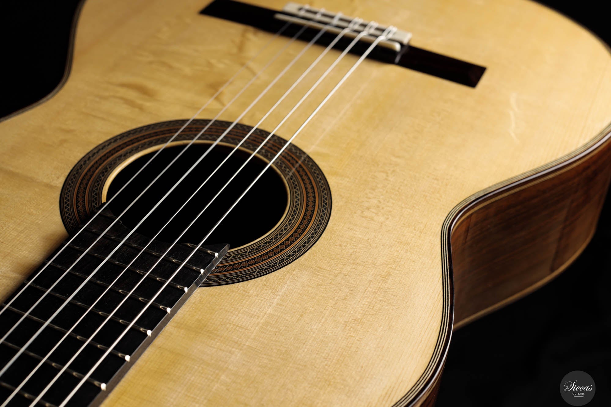 Be mindful when touching your instrument with greasy or unwashed hands: any skin contact is a small attack on the varnish. Of course, a guitar is made to be played, but taking a few precautions helps preserve its beauty: wash your hands before playing, wear long sleeves, and avoid unnecessary direct skin contact with the body of the instrument.