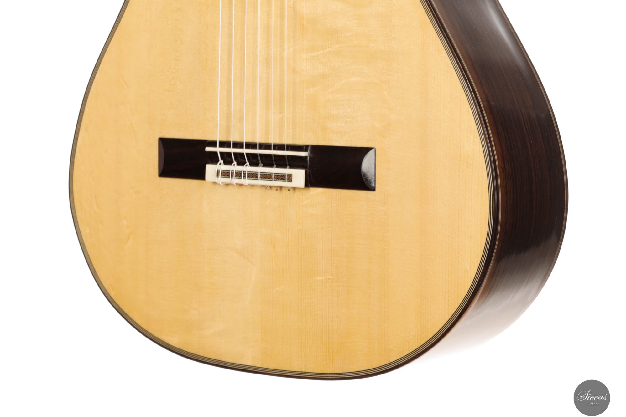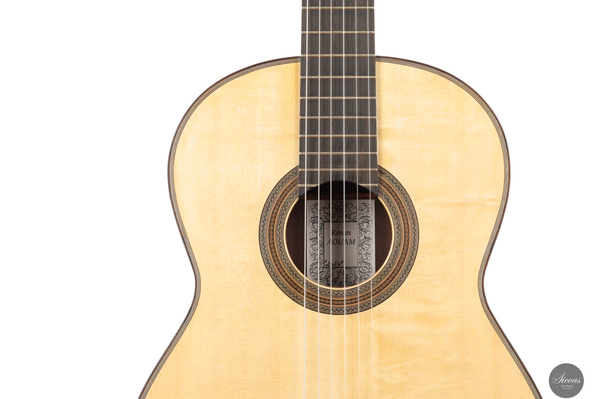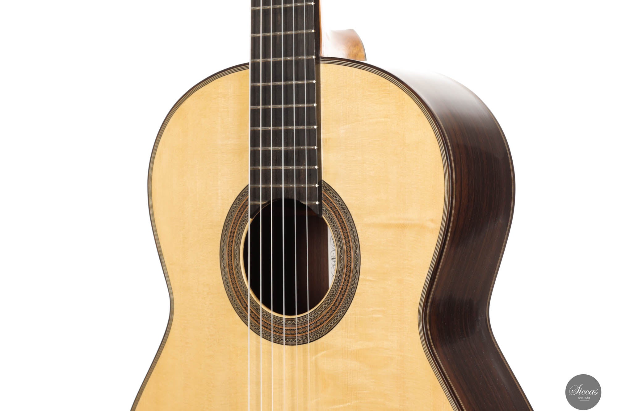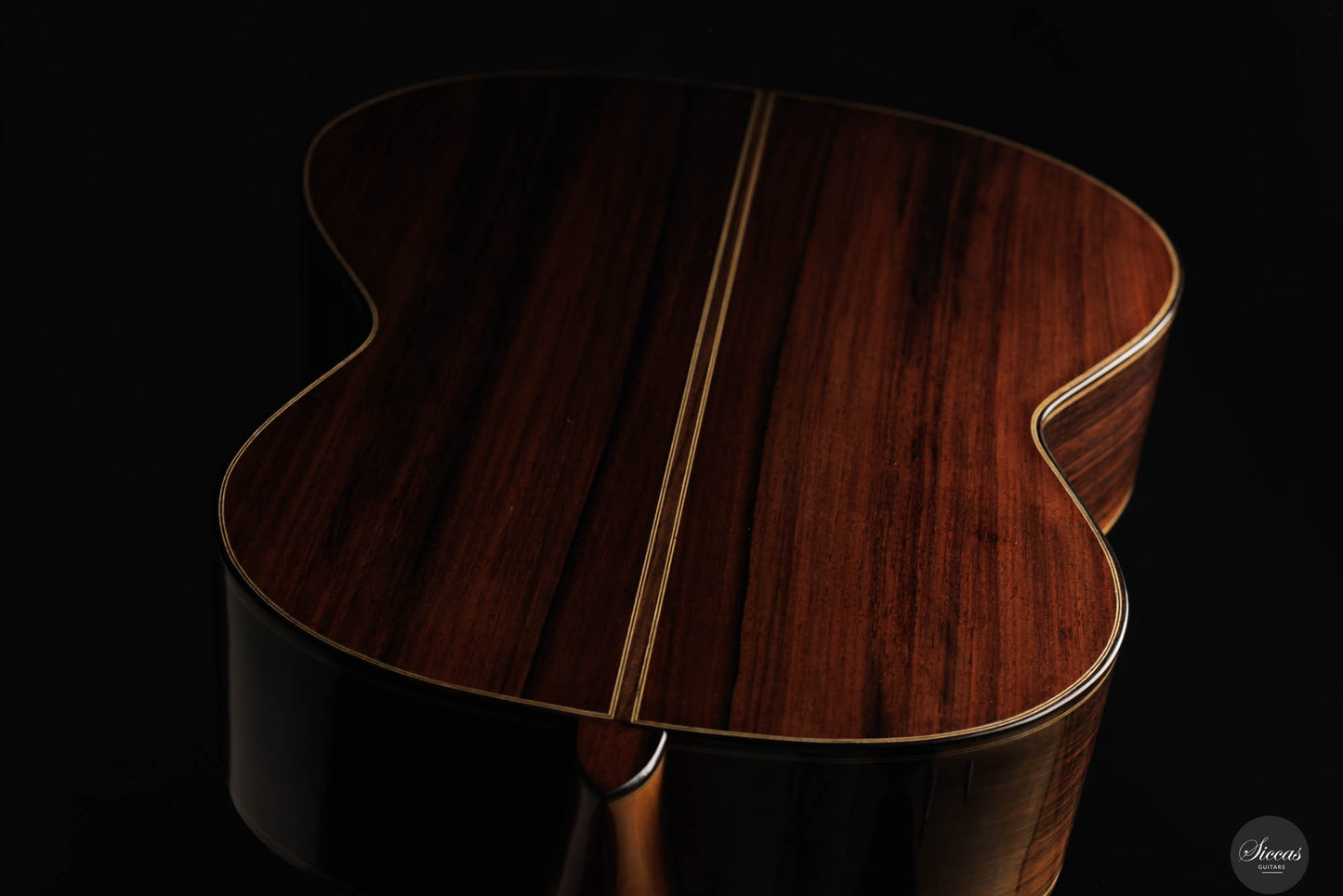 Be mindful when touching your instrument with greasy or unwashed hands: any skin contact is a small attack on the varnish. Of course, a guitar is made to be played, but taking a few precautions helps preserve its beauty: wash your hands before playing, wear long sleeves, and avoid unnecessary direct skin contact with the body of the instrument.