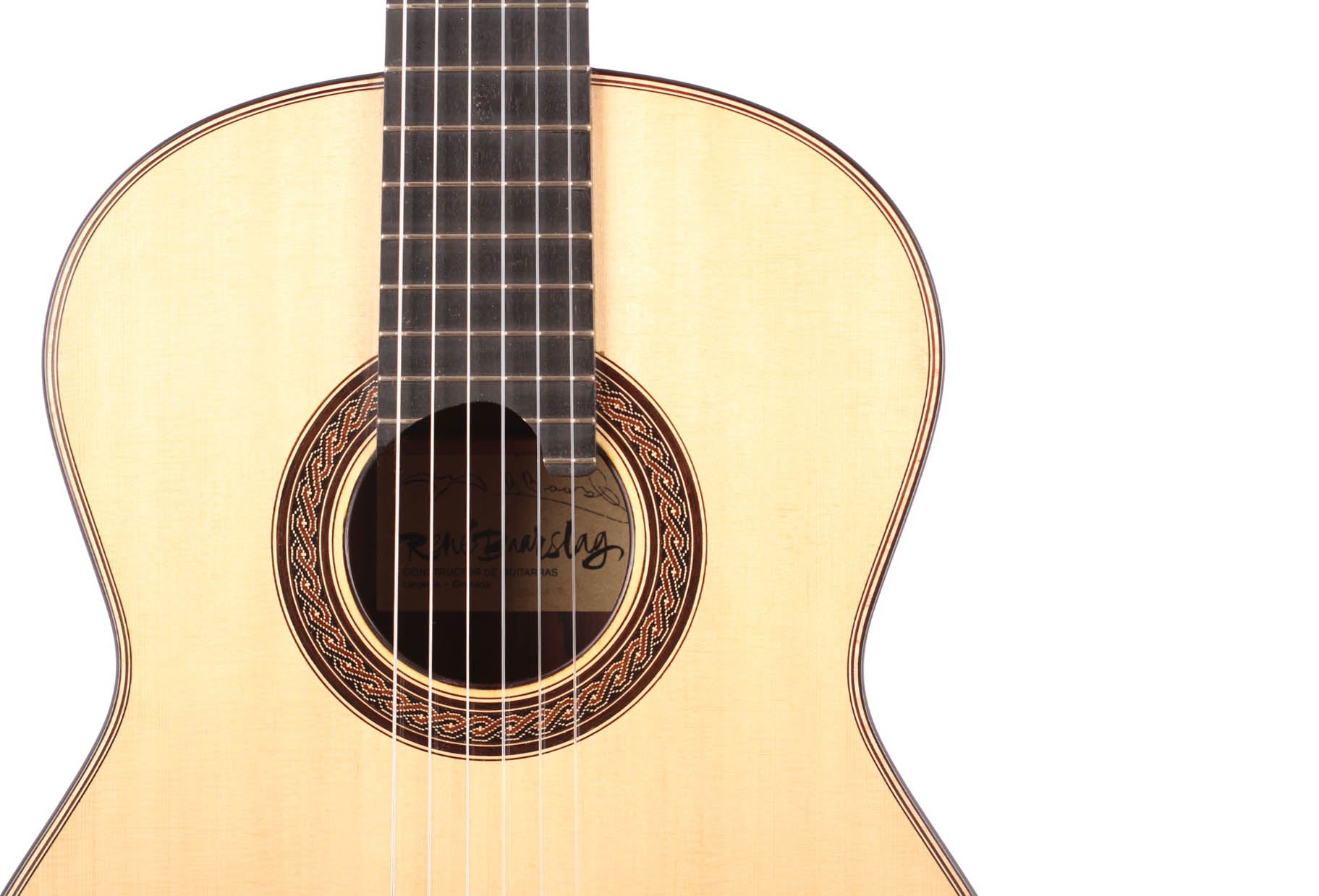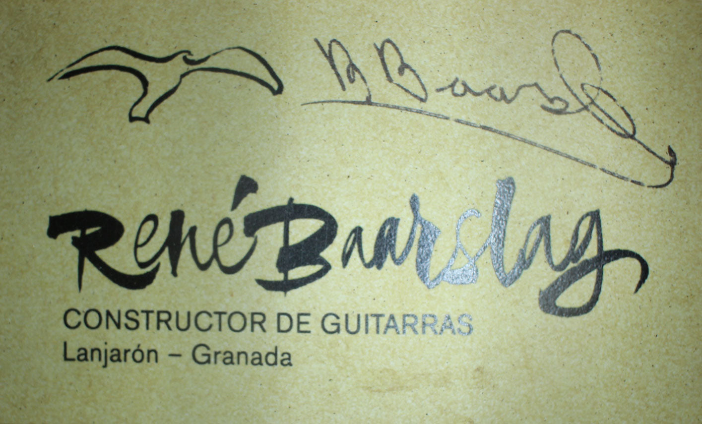 René Baarslag was born in 1948 in Heerlen, Holland. In 1977 he visited Granada fort he first time and felt in love with the art of guitar making. He worked with Antonio Marin Montero in Granada but also with Robert Bouchet in France. Today he lives in Granada where he has set up his own workshop. He is world-wide known for his traditional built guitars. His guitars are well know for qualities as: