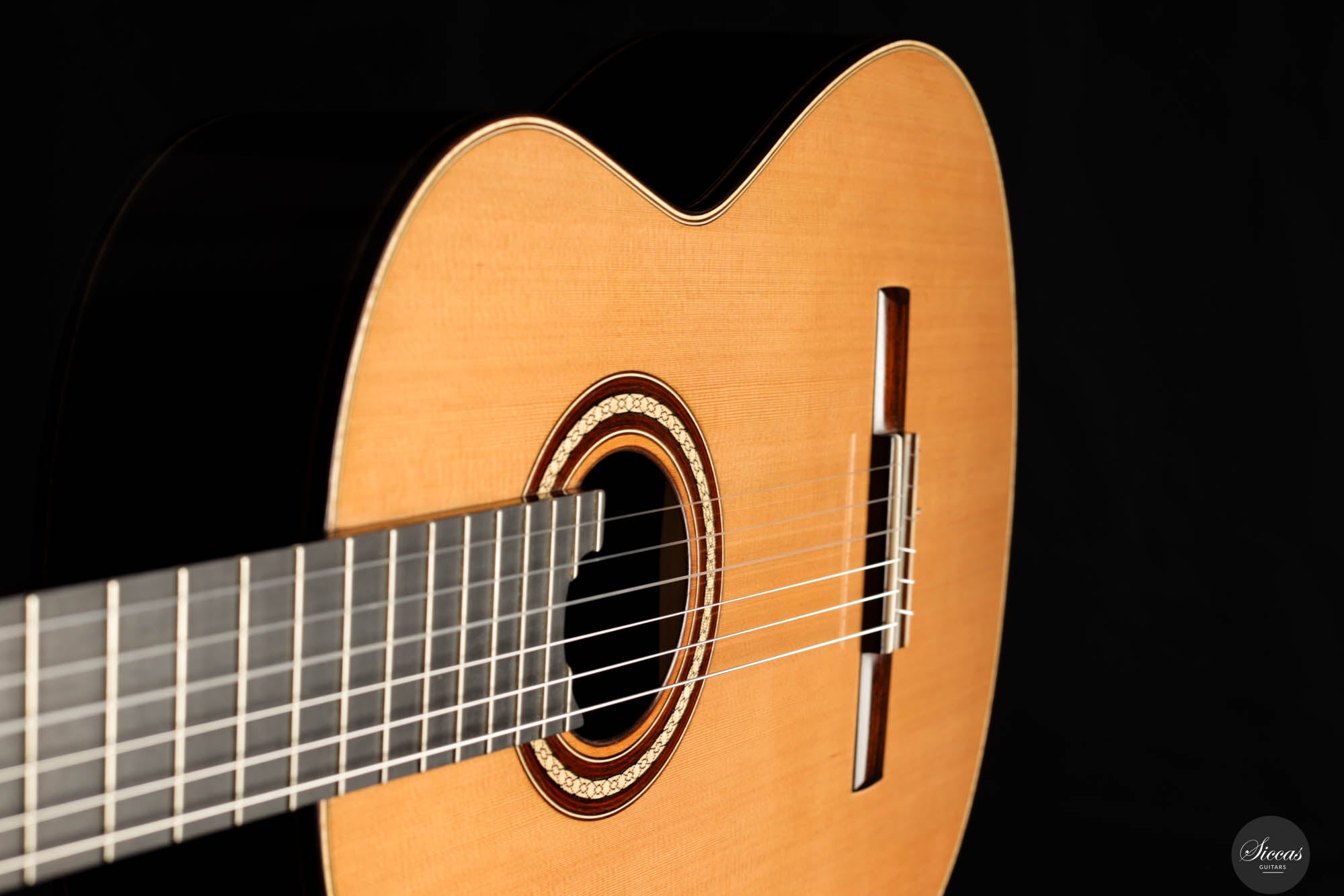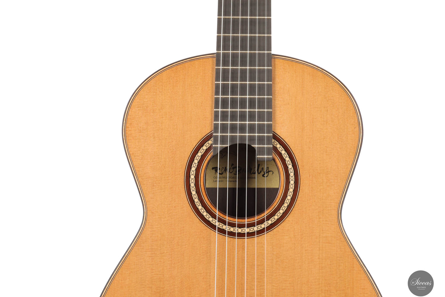 This new guitar by René Baarslag reflects the Granada school’s tradition while embracing modern innovation through its double-top construction. The instrument responds instantly to the player’s touch, offering a lively first string, balanced registers, and a tonal spectrum that combines warmth with clarity. Its design enhances projection and playability, making it suitable for both subtle expression and powerful performance. By uniting Spanish heritage with contemporary refinement, this guitar stands as a versatile choice for musicians who value depth of tradition alongside modern acoustic sophistication.