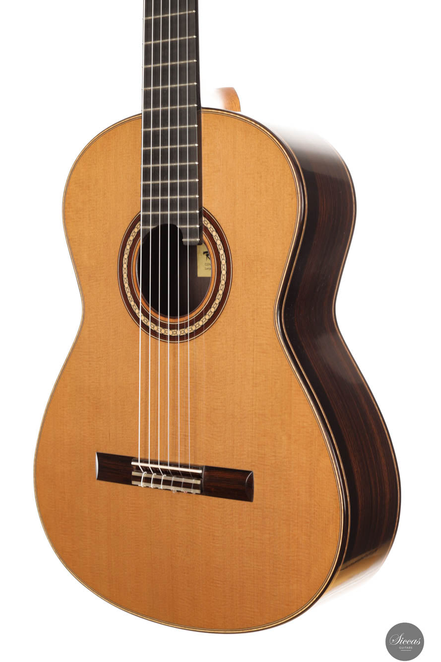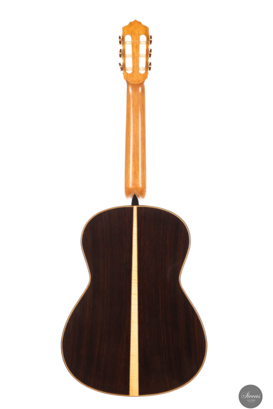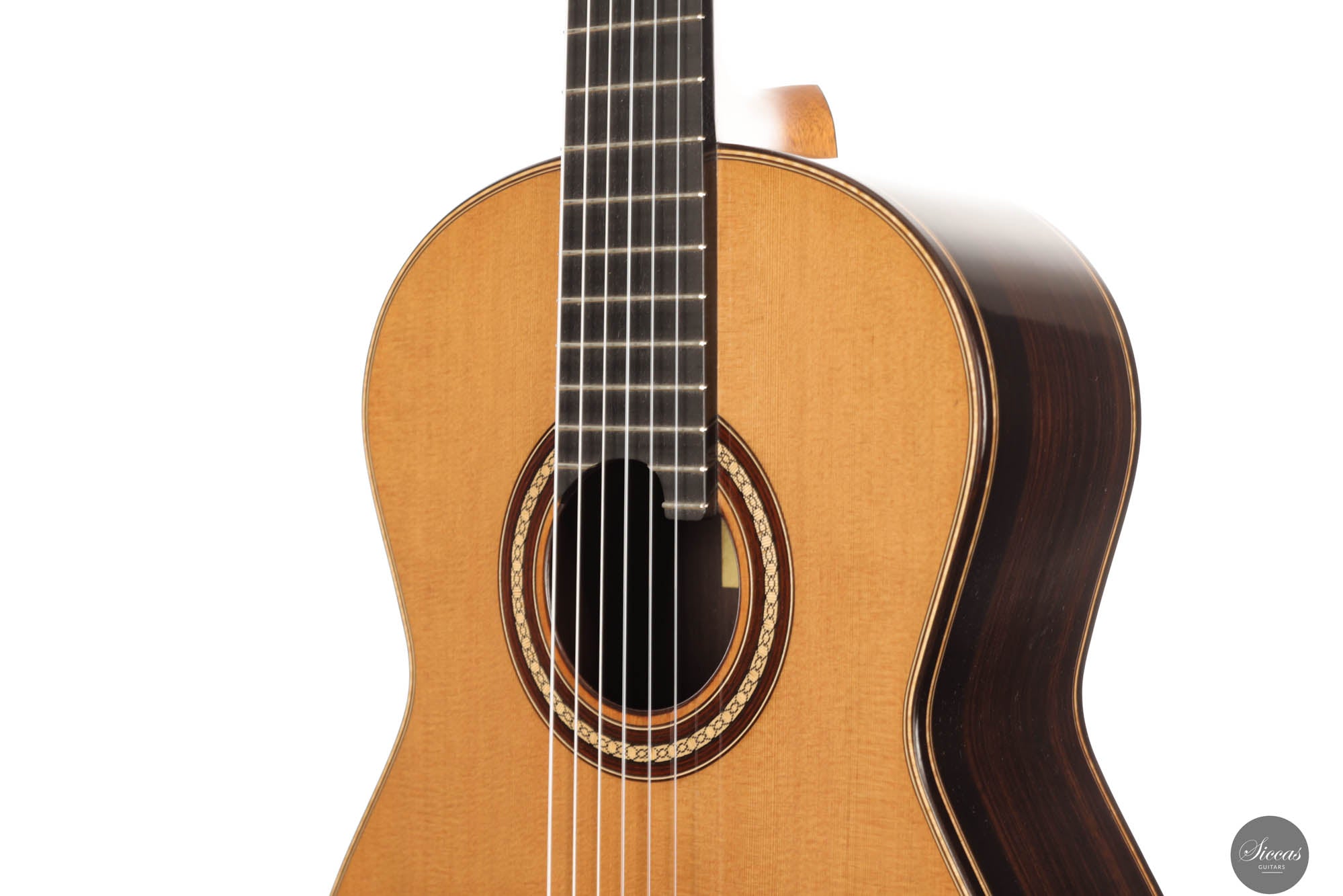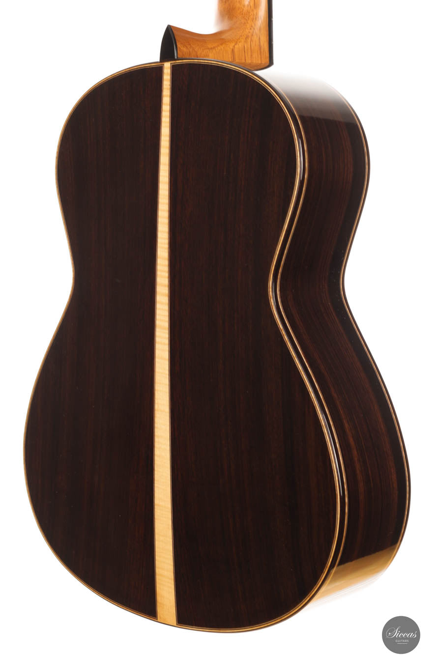 This brand-new guitar by Rene masterfully blends innovation with the rich tradition of Spanish guitar-making, particularly drawing from the renowned Granada school. While rooted in this classical heritage, the guitar features a modern double-top construction, elevating its performance to meet the demands of contemporary guitarists. The result is an instrument that not only captures the essence of traditional Spanish sound but also offers enhanced responsiveness and playability. The guitar reacts swiftly to right-hand attacks, with a lively and balanced first string, making it a versatile choice for today’s musicians seeking both heritage and modern acoustic refinement.