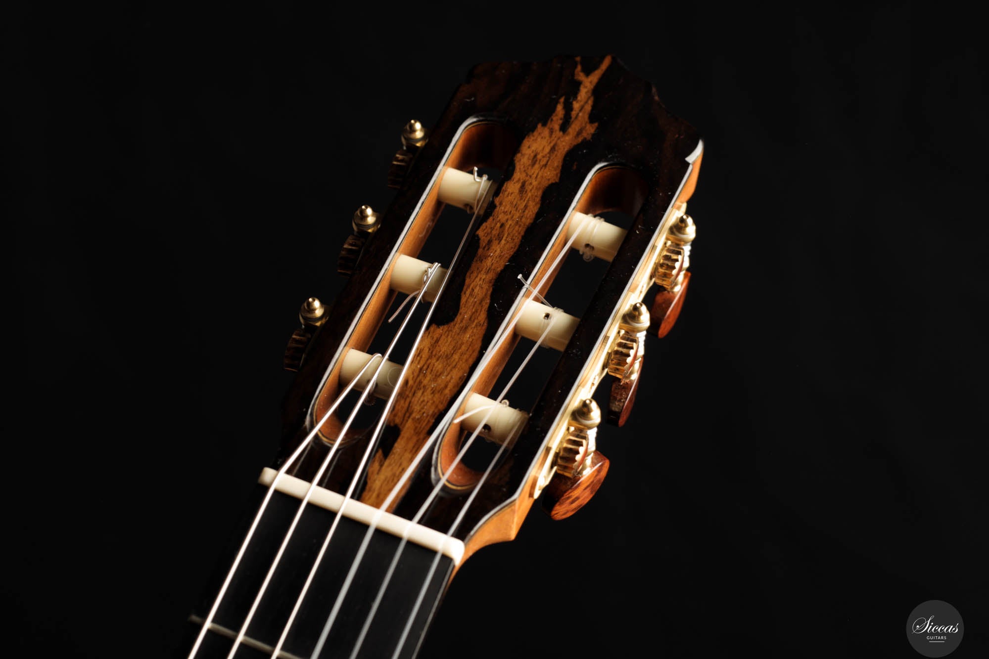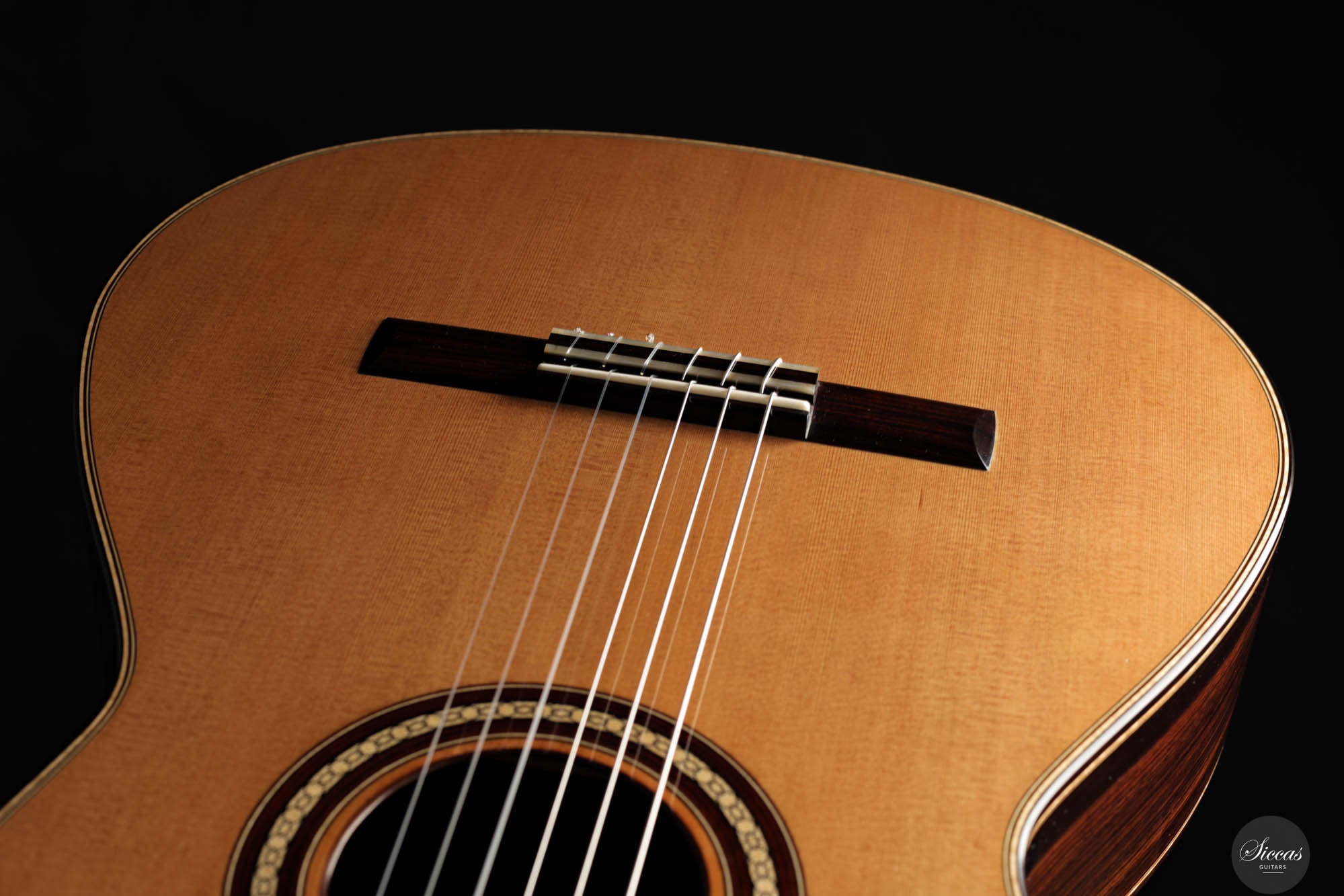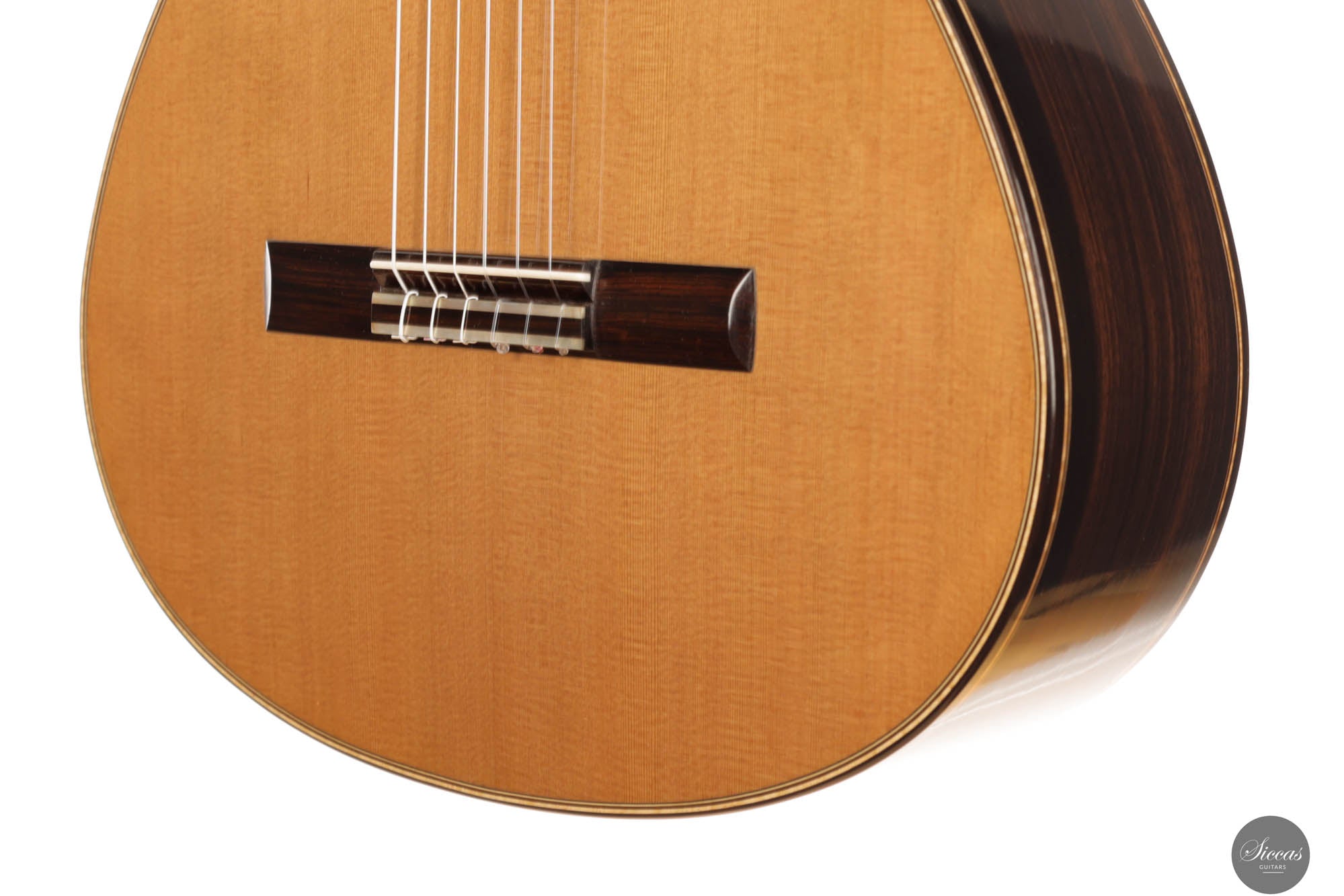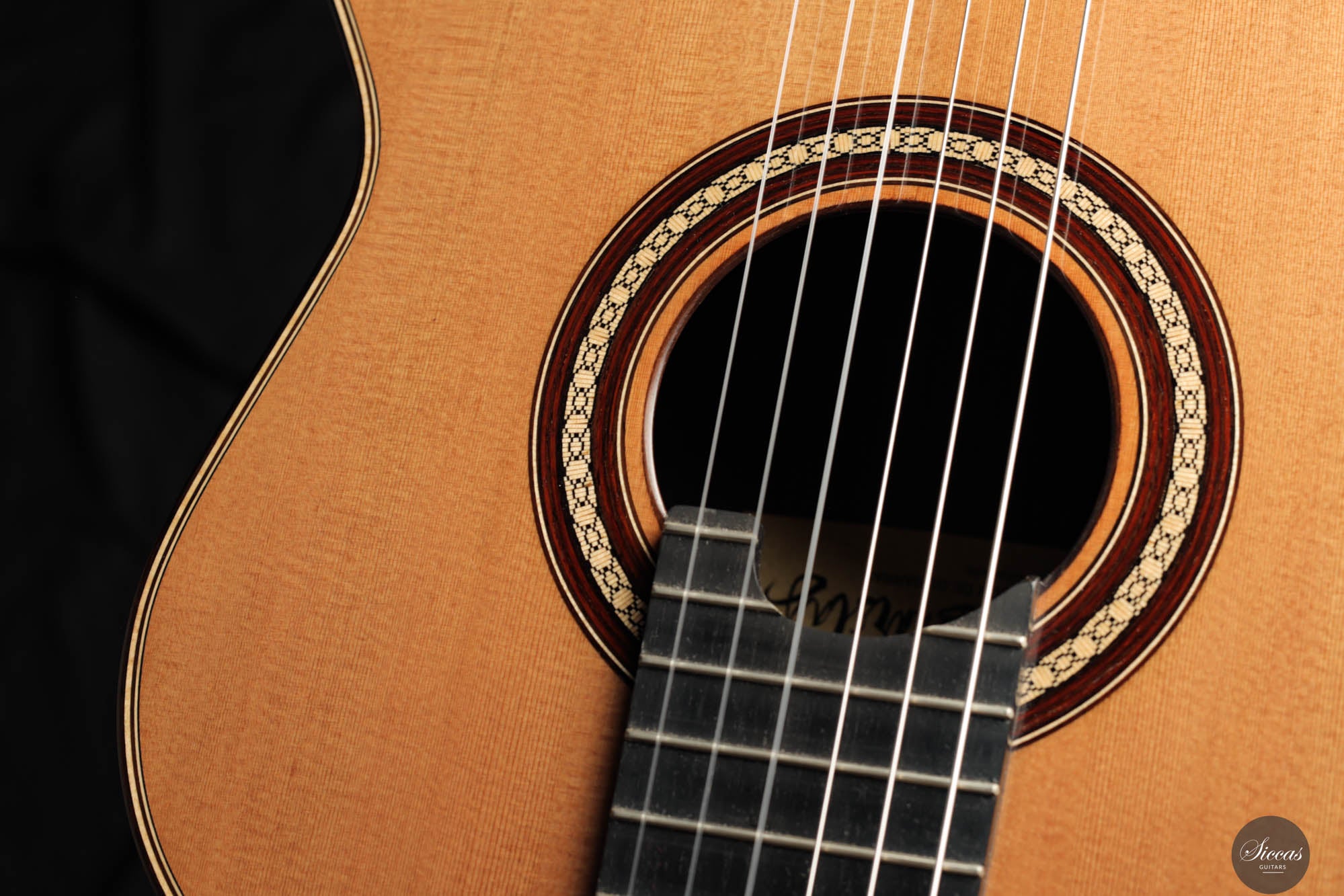 This brand-new guitar by Rene masterfully blends innovation with the rich tradition of Spanish guitar-making, particularly drawing from the renowned Granada school. While rooted in this classical heritage, the guitar features a modern double-top construction, elevating its performance to meet the demands of contemporary guitarists. The result is an instrument that not only captures the essence of traditional Spanish sound but also offers enhanced responsiveness and playability. The guitar reacts swiftly to right-hand attacks, with a lively and balanced first string, making it a versatile choice for today’s musicians seeking both heritage and modern acoustic refinement.