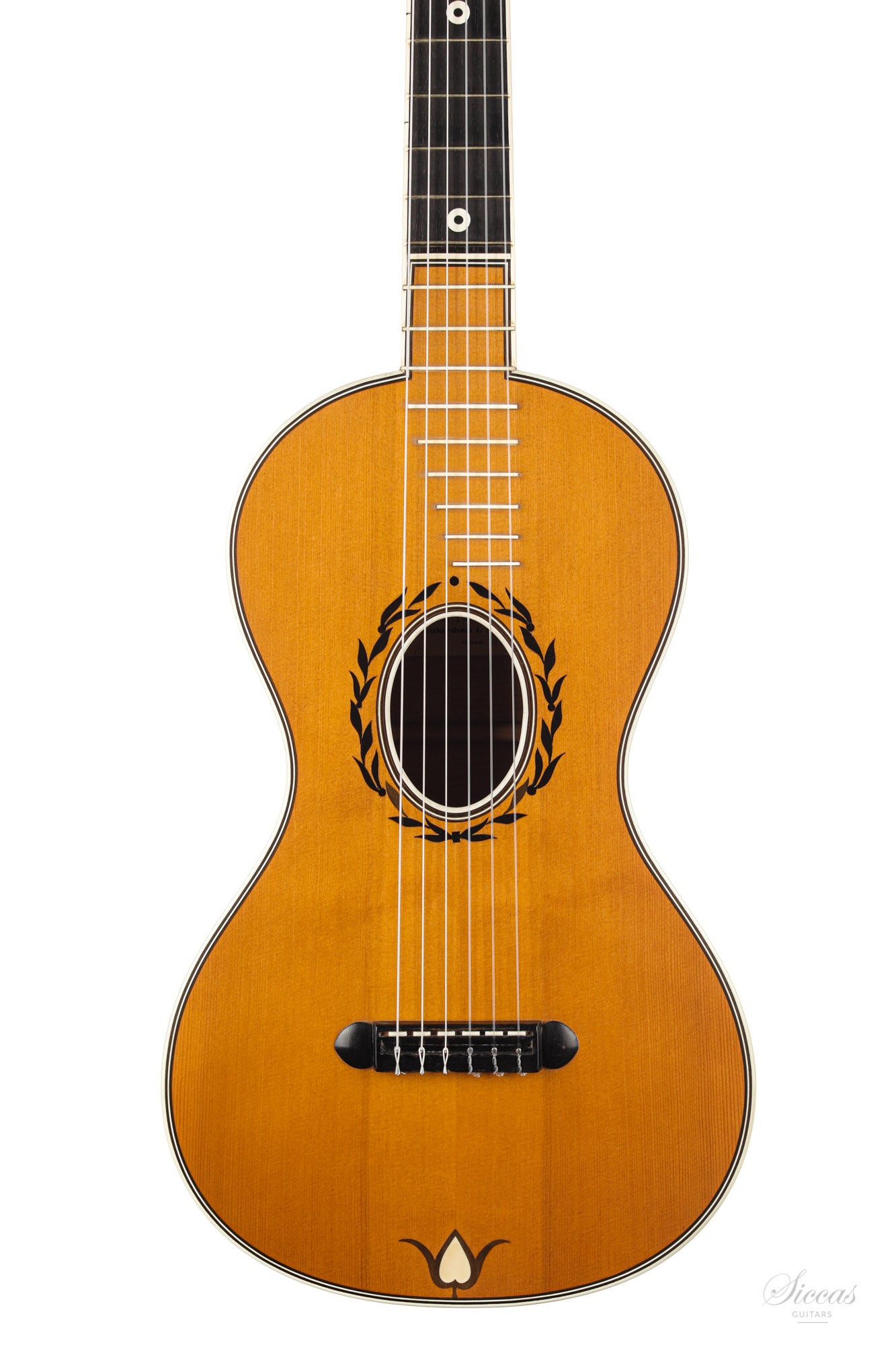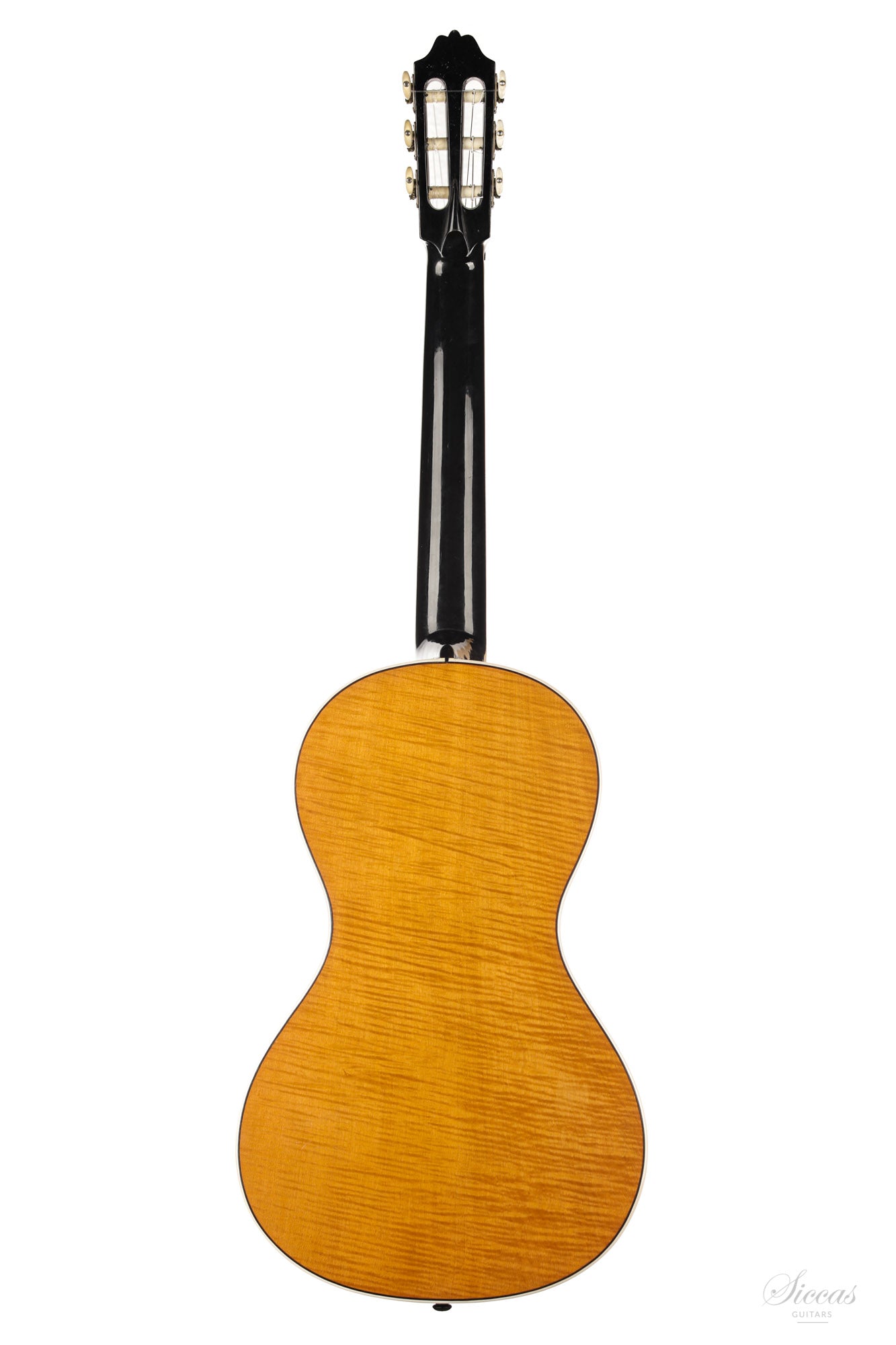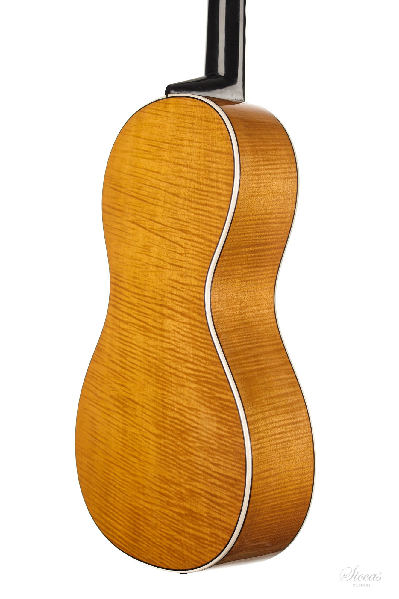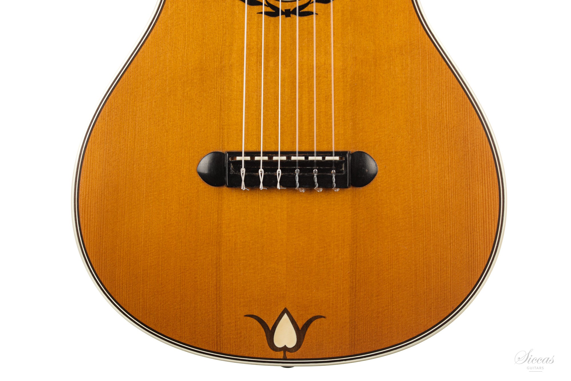 The sound of this guitar is soft and clear, with a very romantic character. A relatively narrow neck offers a playing comfort close to that offered by 19th-century guitars. Finally, the volume of this instrument is quite impressive and it is ready to be played immediately.