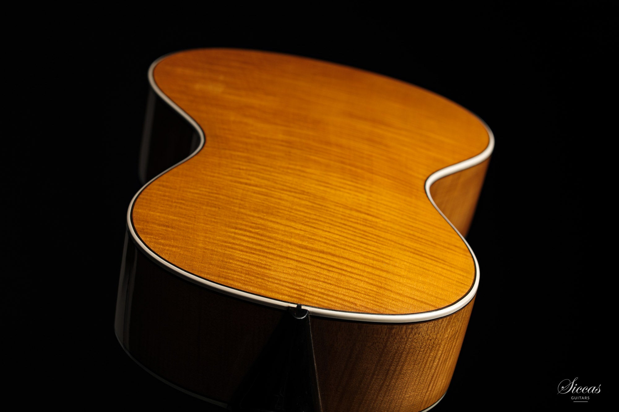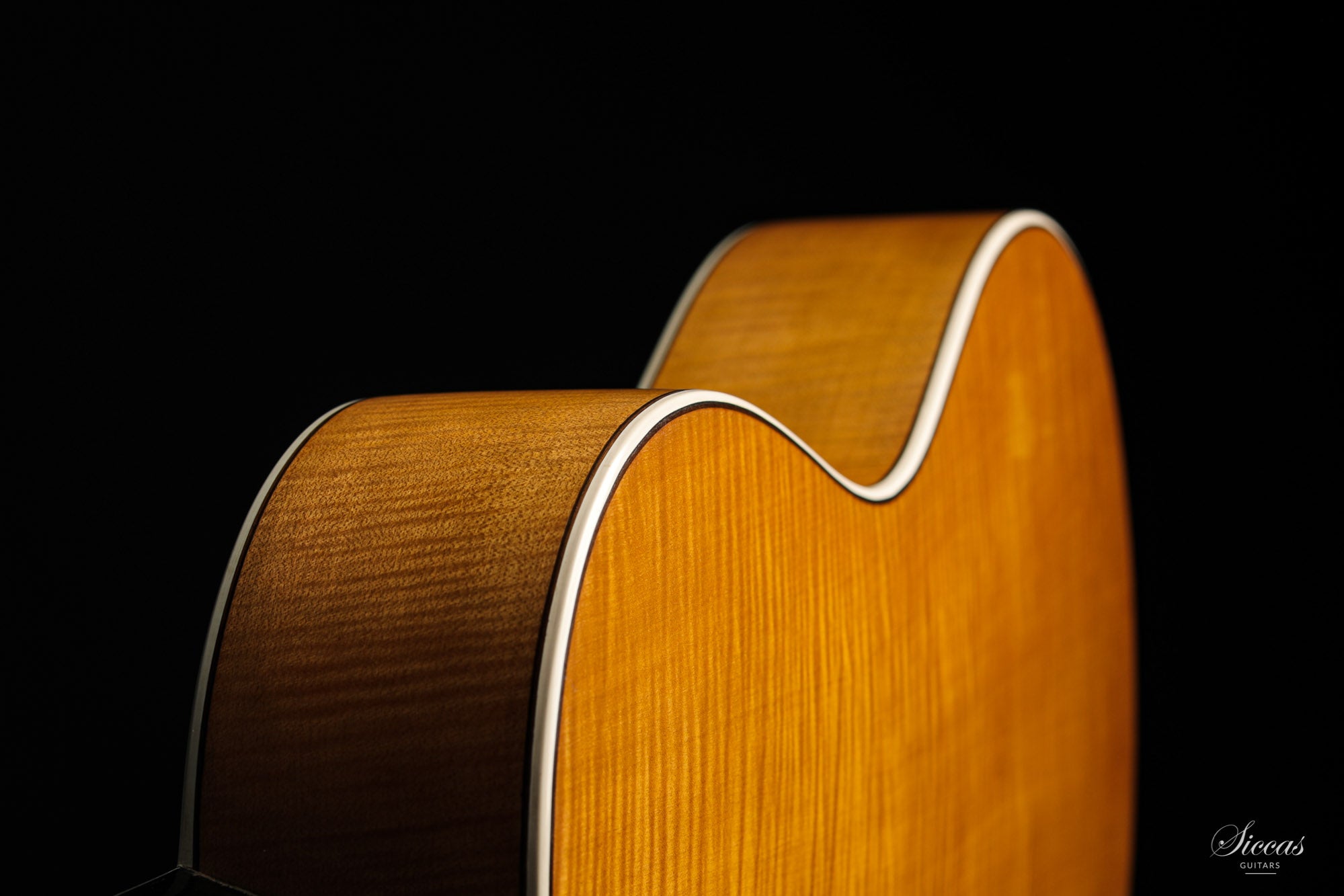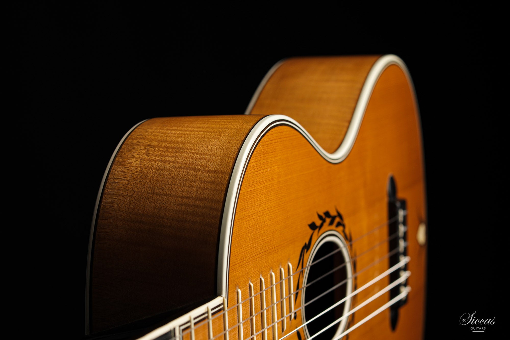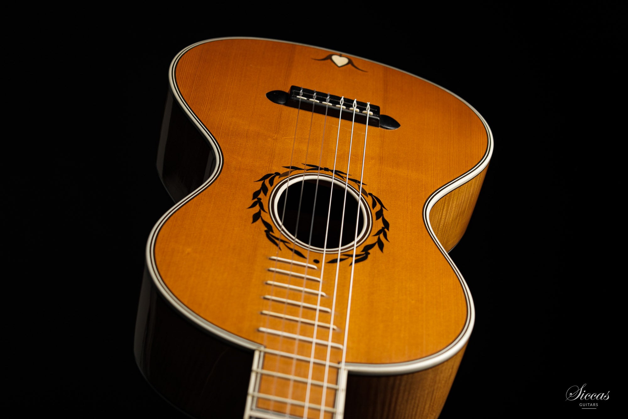 The sound of this guitar is soft and clear, with a very romantic character. A relatively narrow neck offers a playing comfort close to that offered by 19th-century guitars. Finally, the volume of this instrument is quite impressive and it is ready to be played immediately.