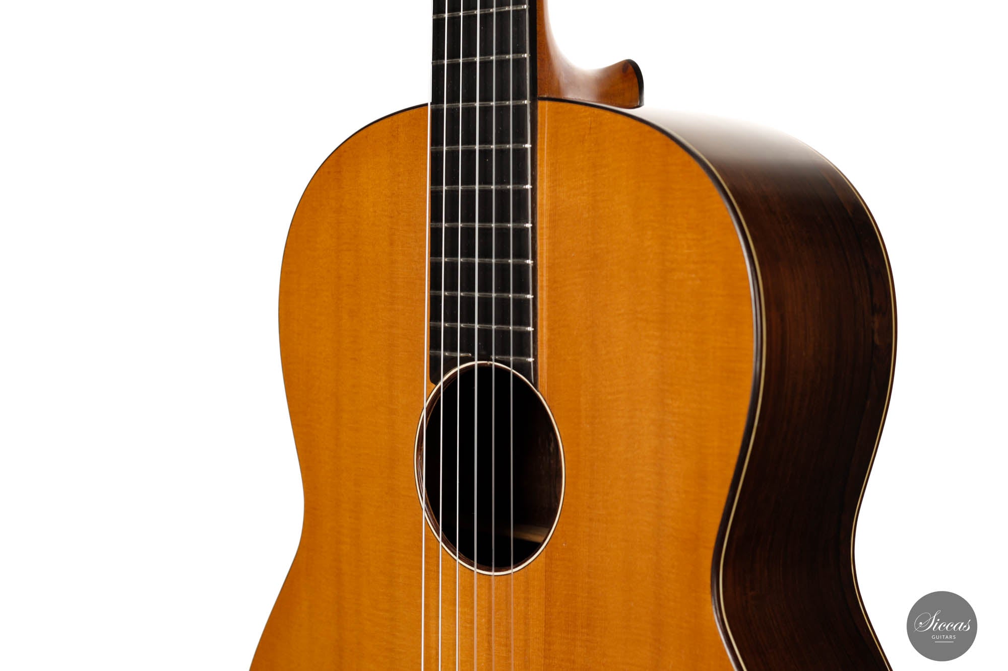 Acoustically, this Weissgerber Spanish model shines with exceptional clarity throughout all registers. Each note rings out with a remarkable richness, highlighting the full spectrum of tonal colors this instrument can offer. The superb quality of sound and the intricate hues that this guitar brings out stand as a testament to Weissgerber's mastery and understanding of luthiery.