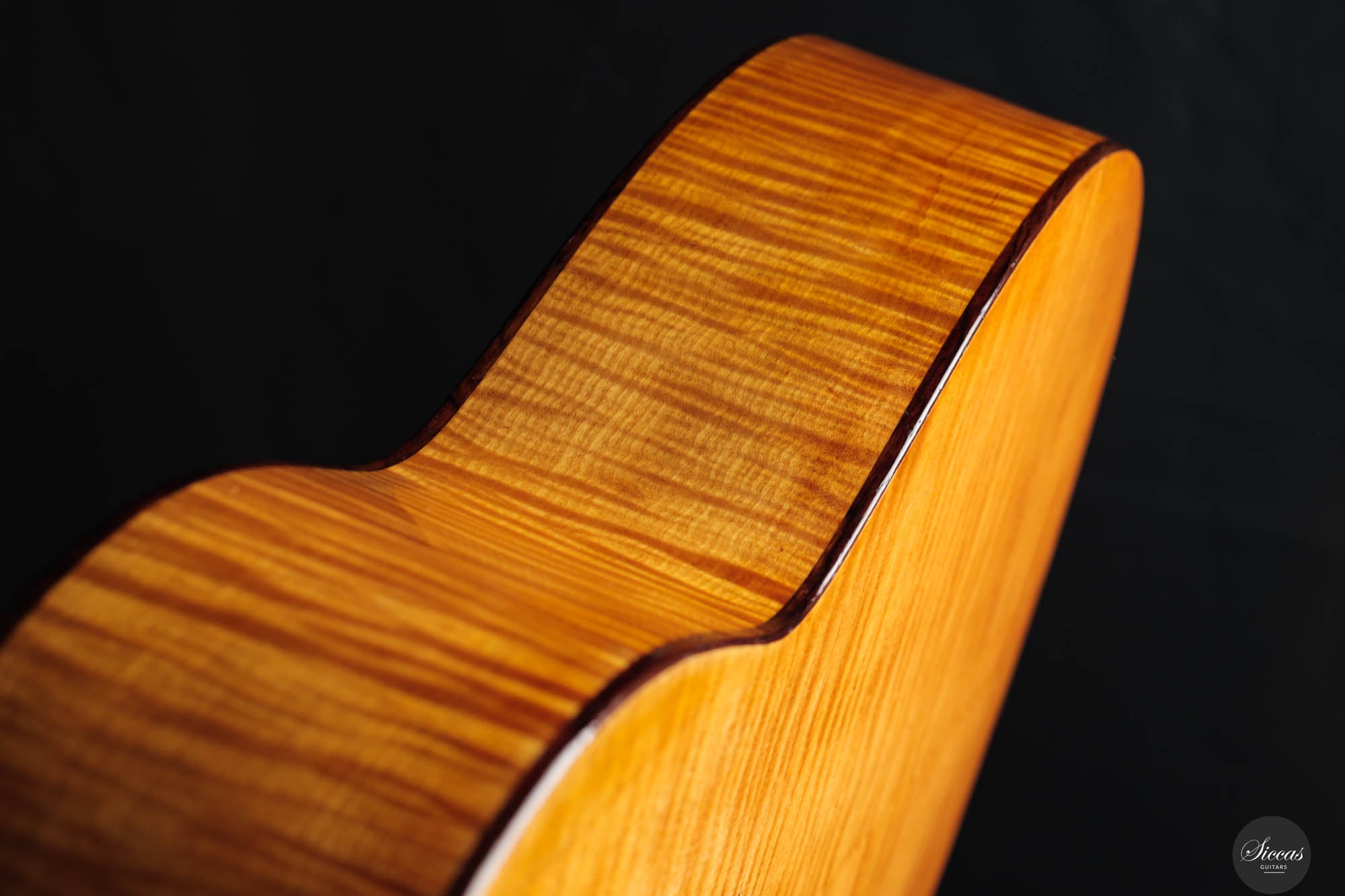 Be mindful when touching your instrument with greasy or unwashed hands: any skin contact is a small attack on the varnish. Of course, a guitar is made to be played, but taking a few precautions helps preserve its beauty: wash your hands before playing, wear long sleeves, and avoid unnecessary direct skin contact with the body of the instrument.