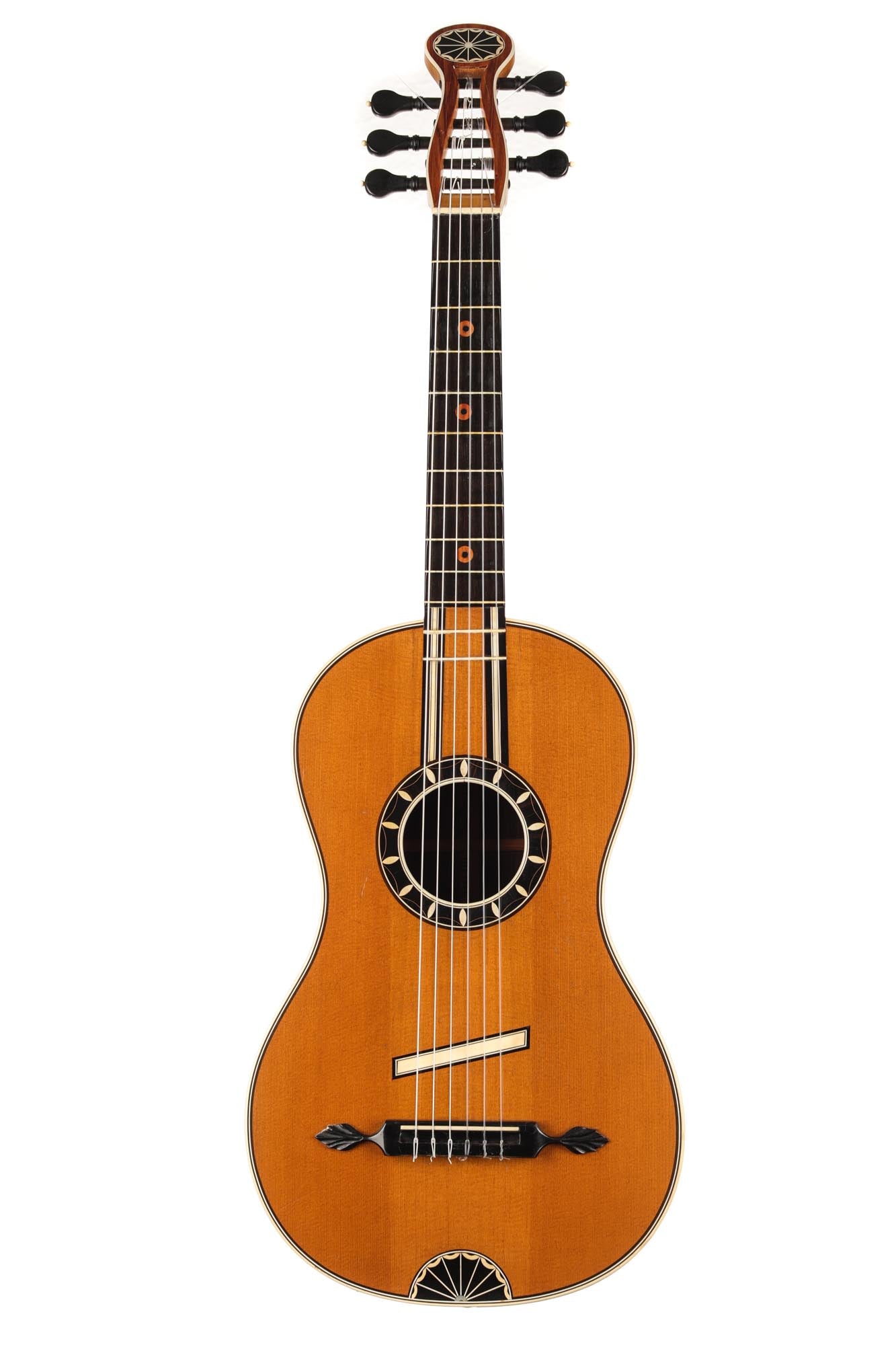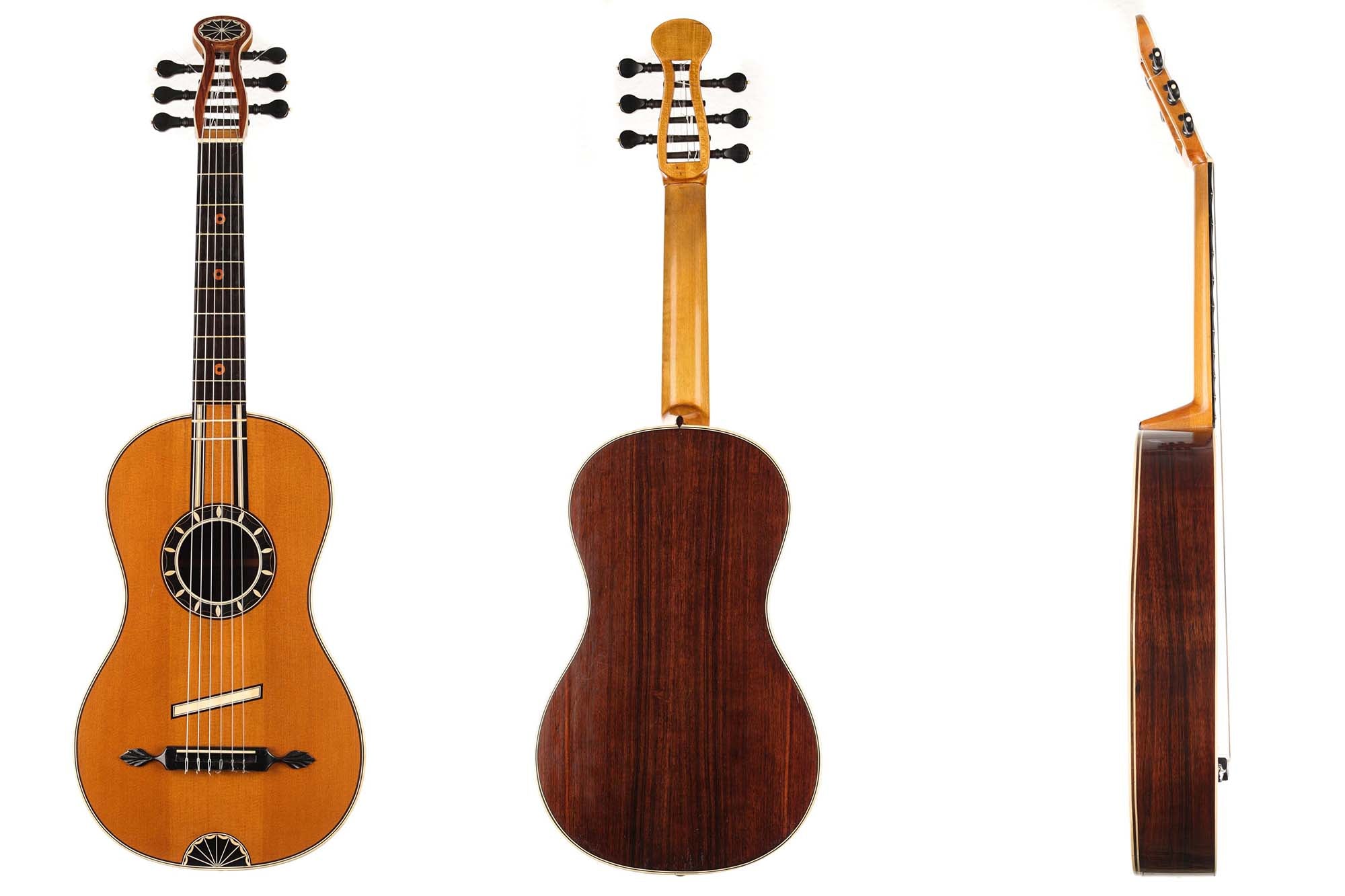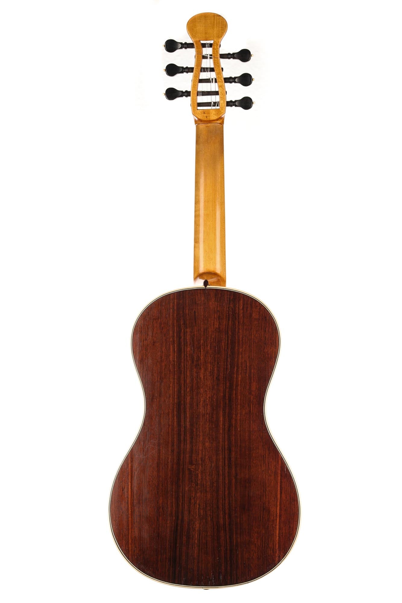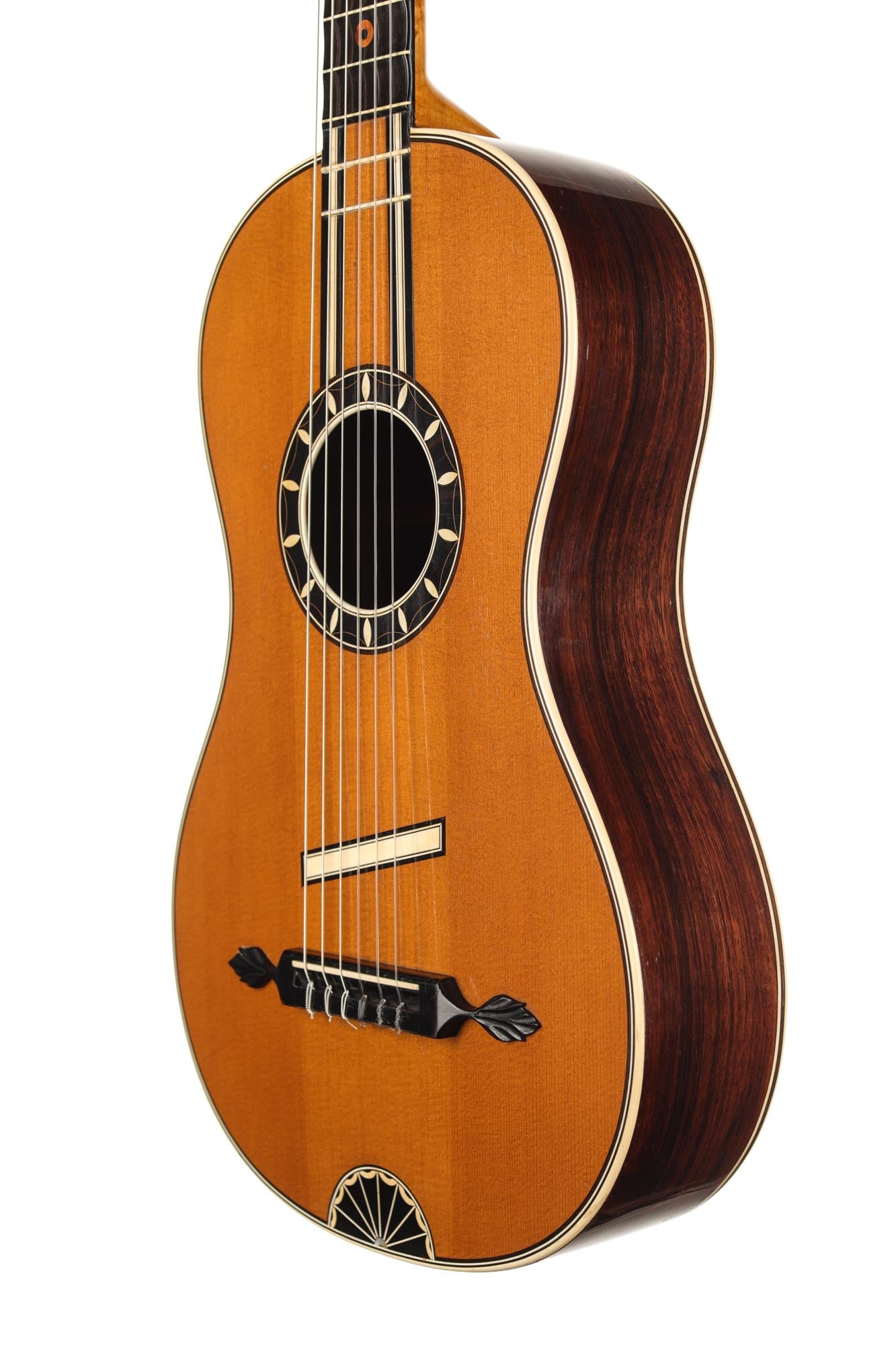 Richard Jacob Weissgerber built this splendid guitar in 1920 following the example of a model built by Johann Knößing in 1804. He used the best materials for this guitar, chose a beautiful spruce wood for the top and beautiful rosewood for back and sides. This highly ornate model displays an abundance of subtle details that make it unique and valuable.