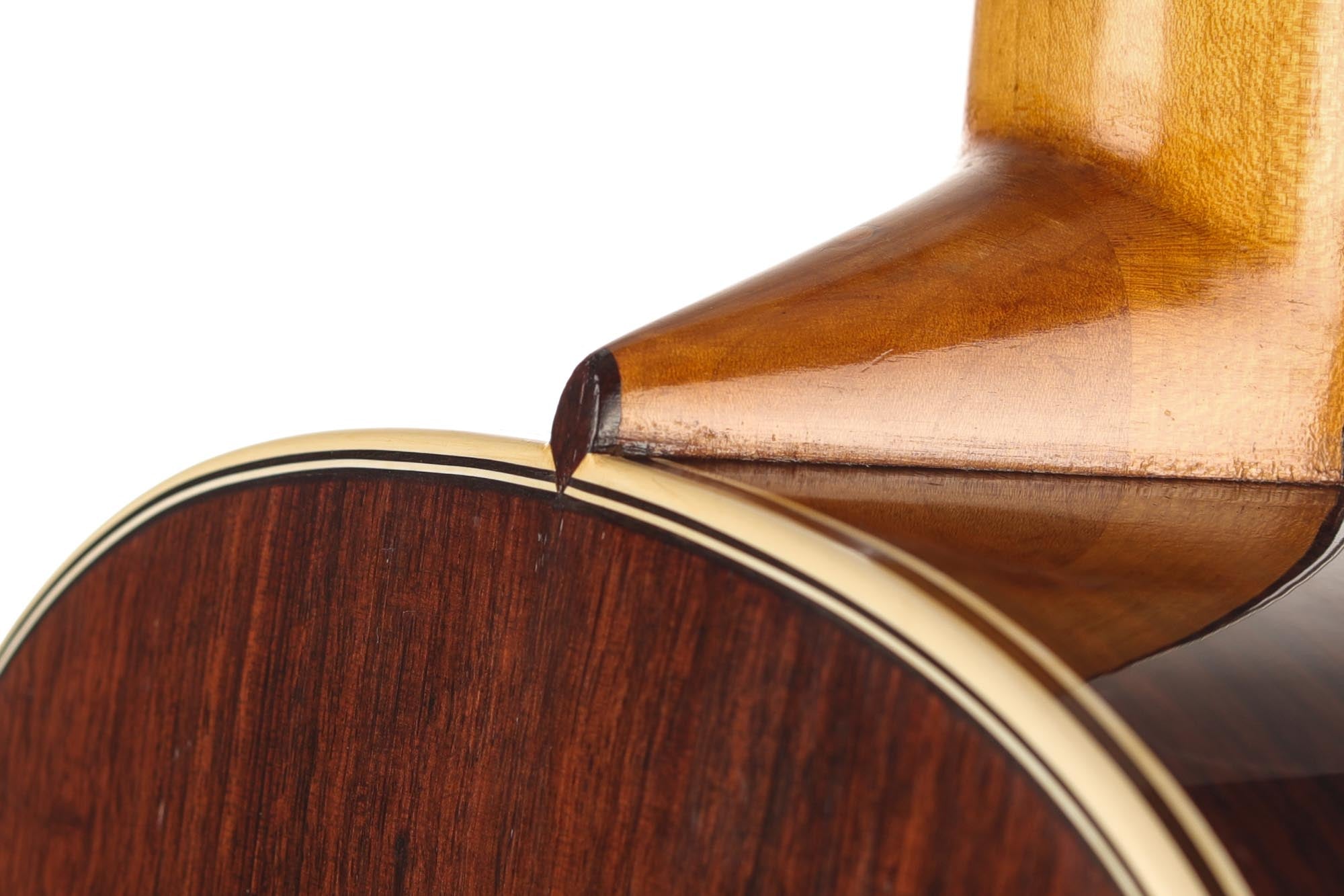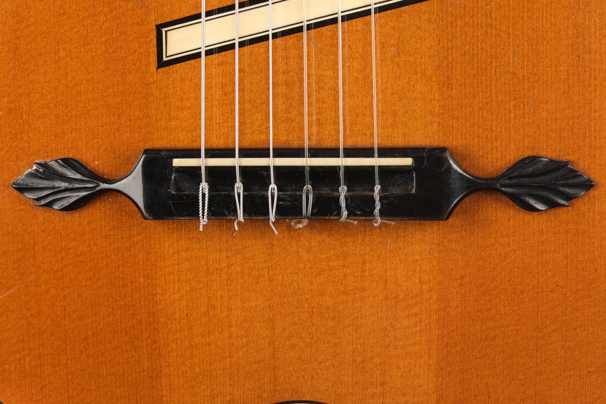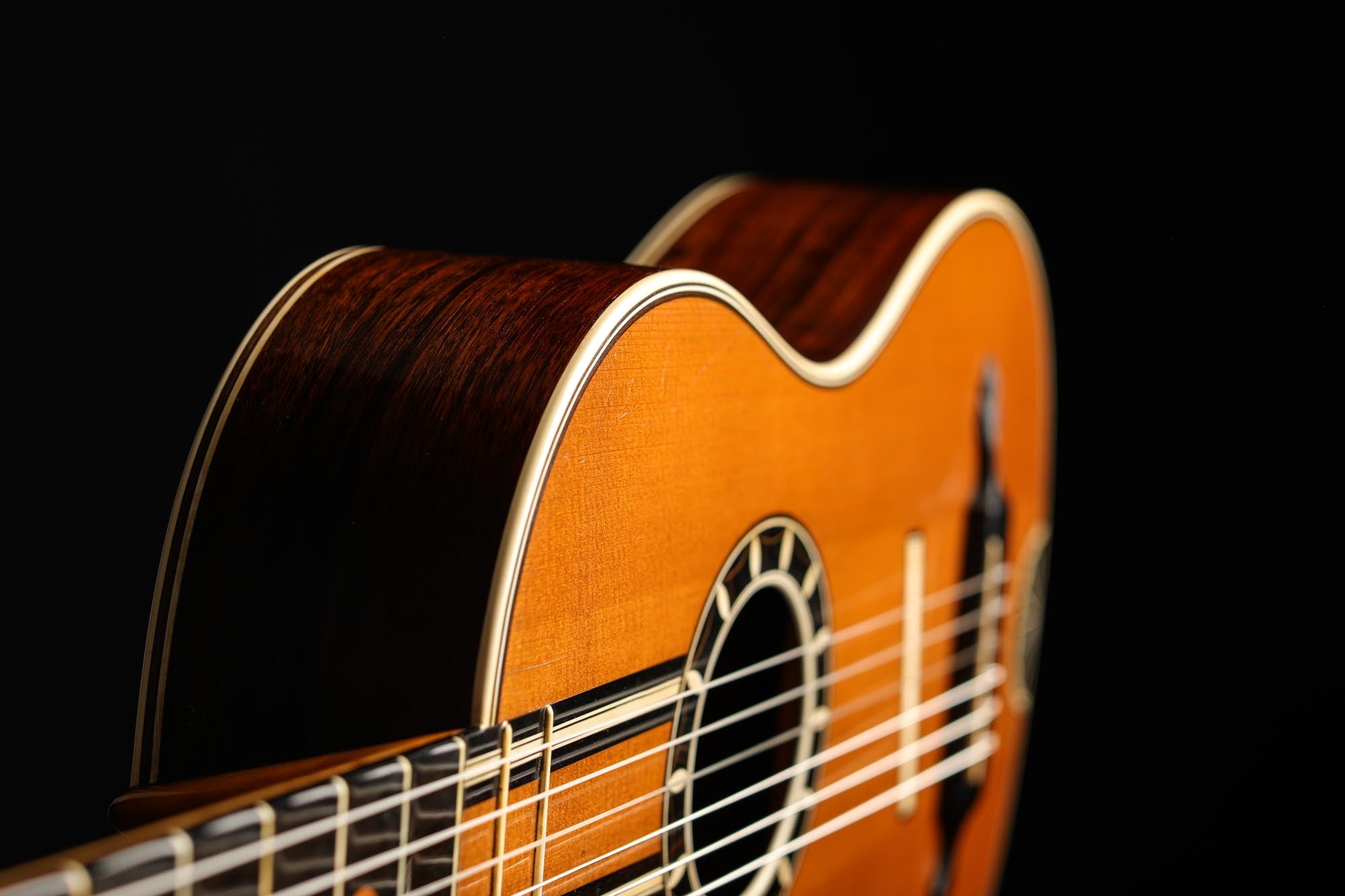 The playability of this guitar is perfect and its sound is just remarkable. Here Weissgerber proves the extent of his genius by creating a fairly small guitar with such a full sound. Its sounds is clear and precise, with exceptional delicacy and balance. Moreover, this instrument is truly in perfect playing condition and offers the guitarist great playing satisfaction with rich timbres and a unique character. Finally, it is in excellent condition for its 100th anniversary this year, with only two perfectly repaired cracks on the top and two on the sides. The pegs are original and in perfect condition, and this guitar comes with its original fitting case.