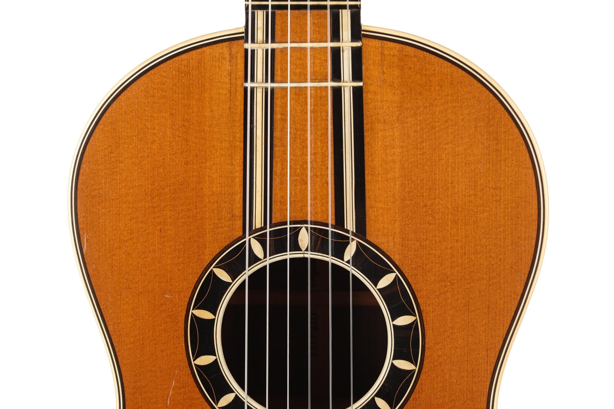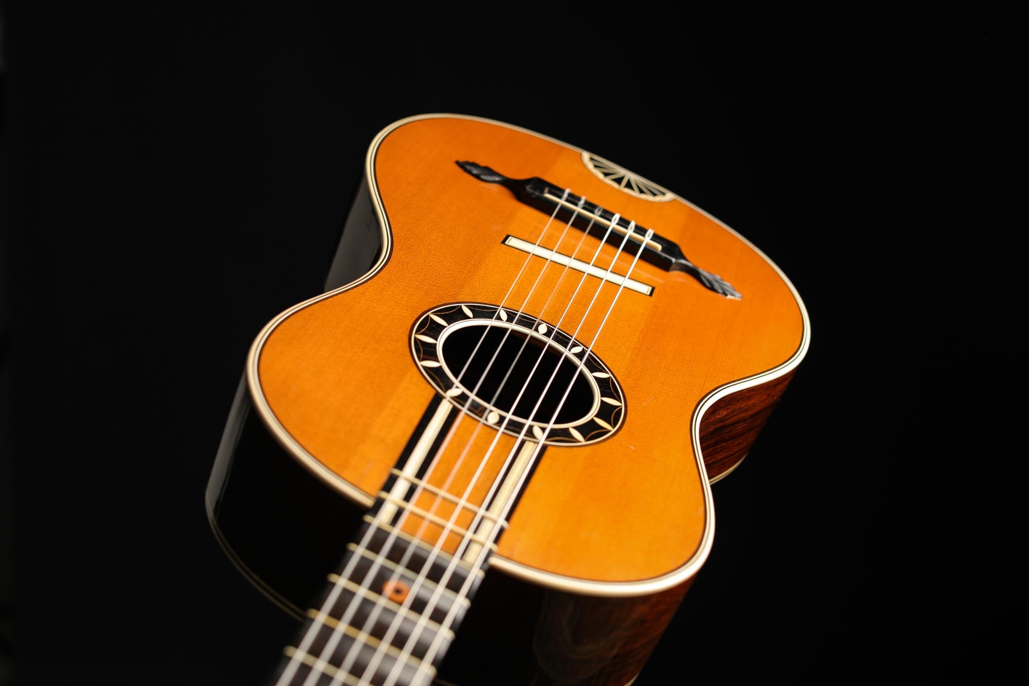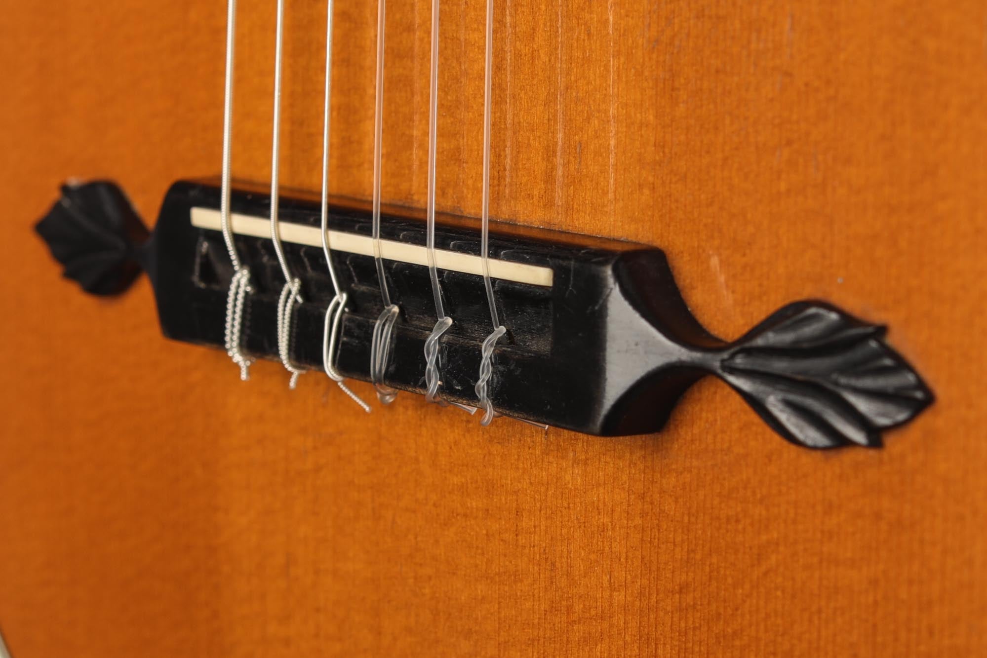 The playability of this guitar is perfect and its sound is just remarkable. Here Weissgerber proves the extent of his genius by creating a fairly small guitar with such a full sound. Its sounds is clear and precise, with exceptional delicacy and balance. Moreover, this instrument is truly in perfect playing condition and offers the guitarist great playing satisfaction with rich timbres and a unique character. Finally, it is in excellent condition for its 100th anniversary this year, with only two perfectly repaired cracks on the top and two on the sides. The pegs are original and in perfect condition, and this guitar comes with its original fitting case.