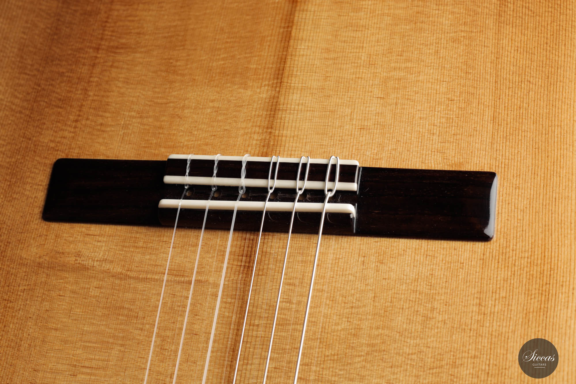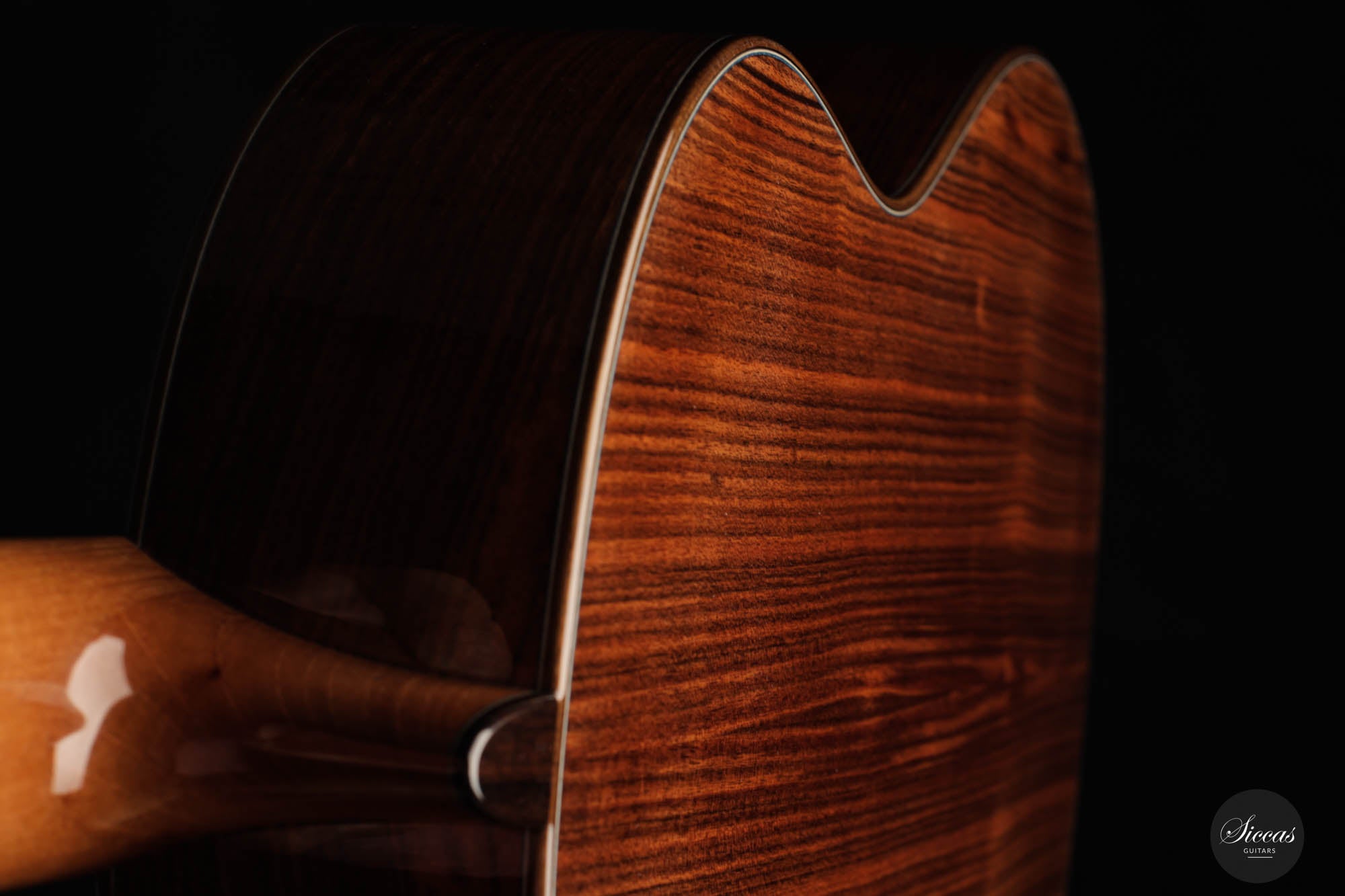 Presenting the 2023 Rinaldo Vacca 64 cm guitar, a veritable testament to the exquisite artistry of Italy's esteemed luthier craftsmanship. This all-wood lattice creation hails from the hands of Rinaldo Vacca, a globally recognized master luthier who has honed his skills over years to perfect the unique alchemy of traditional guitar making. Built without the interference of carbon or balsa, this guitar is a marvel of acoustic engineering. The guitar produces a resounding volume, harnessing the raw, undistorted power of its natural sound. Each pluck of the string generates a rich, authentic tone that fills any room with its harmonious presence. The 2023 Rinaldo Vacca guitar is not merely a musical instrument but also a visual masterpiece. It showcases a beautiful spruce top, emanating a timeless charm, contrasted by the darker tones of Indian rosewood for the back and sides, doubled with Spanish cypress inside. This wood combination brings an organic aesthetic to the instrument, reminiscent of the classic guitars of bygone eras. Its durability is ensured with a lacquer finish that guards against the common wears of avid playing. This protective layer preserves the guitar's stunning look while maintaining its excellent tonal qualities over time. Above all, the playability of this guitar is outstanding. The 64 cm length offers comfortable handling and easy reach across all frets. This allows musicians the freedom to interpret their music with versatility, encouraging exploration and innovation without limits. Whether it's fast arpeggios, complex chord shapes, or intricate fingerstyle passages, this guitar is a faithful companion to your musical journey. The 2023 Rinaldo Vacca 64 cm guitar is truly an intersection of tradition and innovation. It is not just an instrument, but an experience that engages all senses, redefining the boundaries of guitar performance.