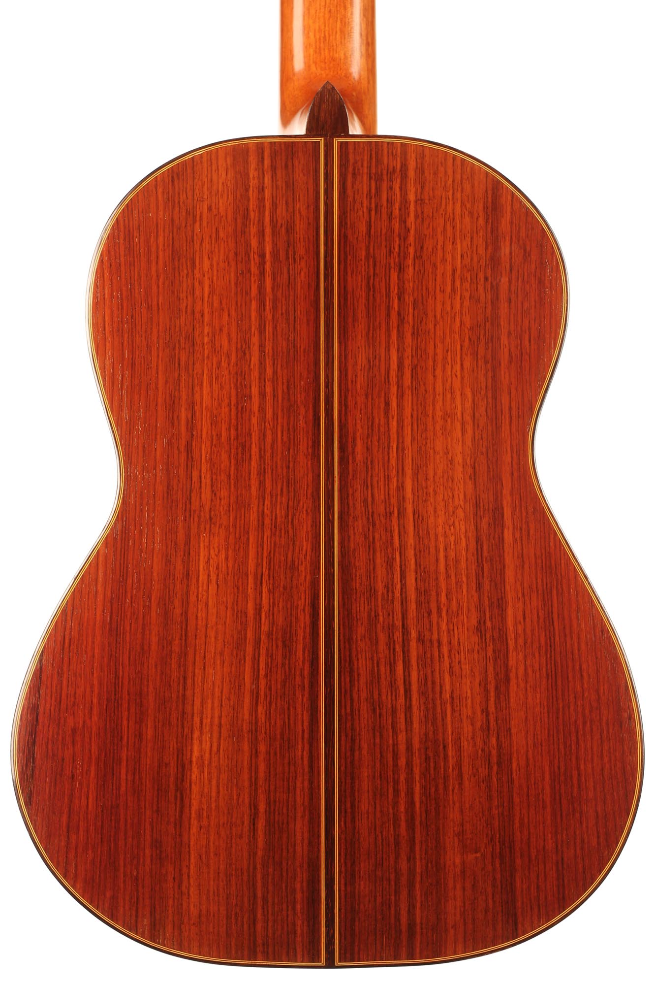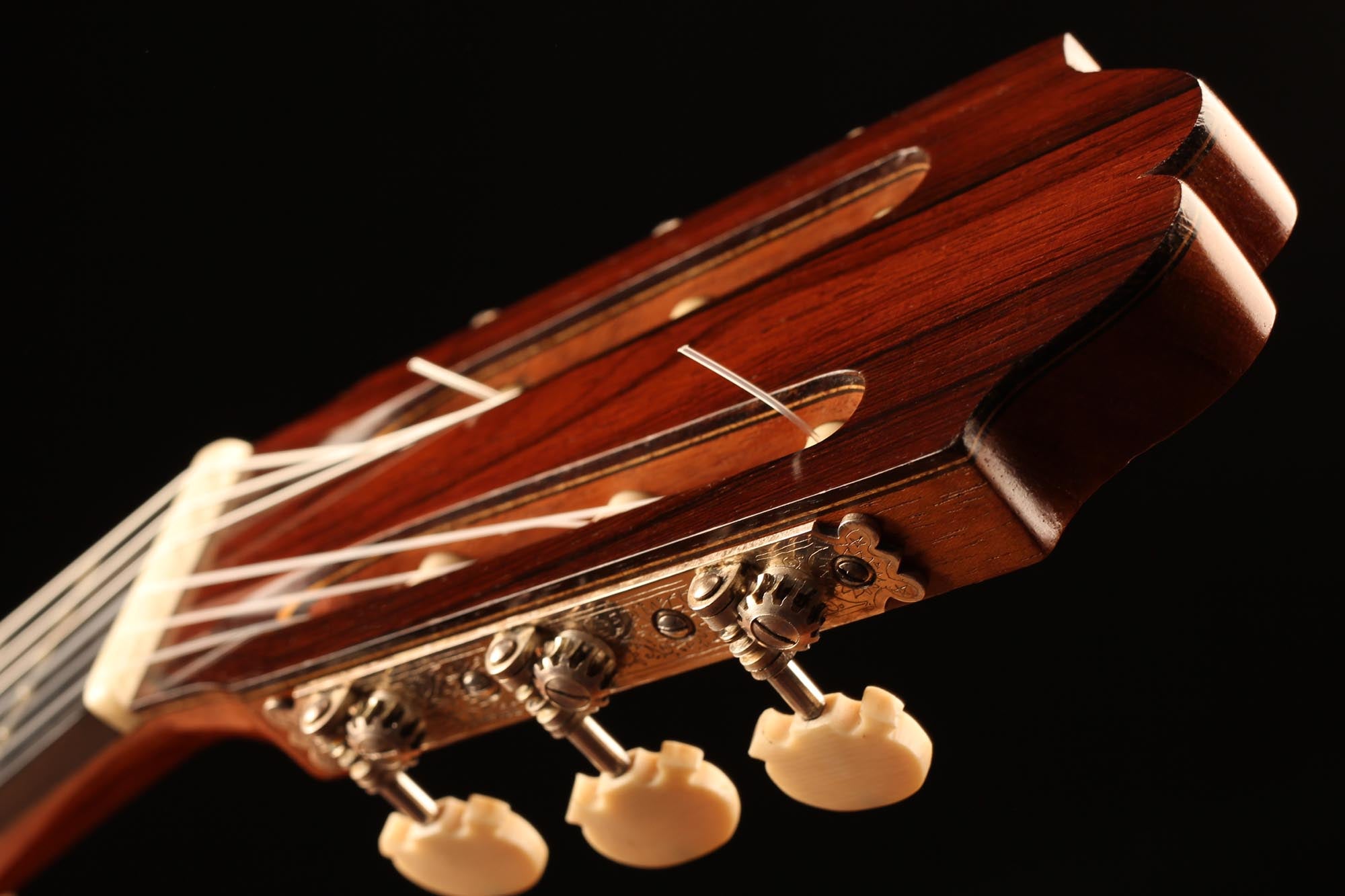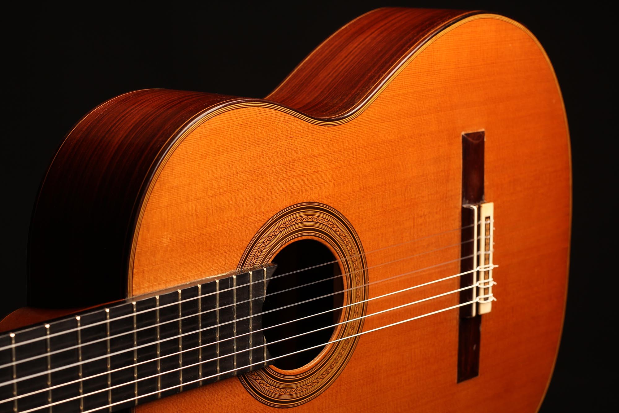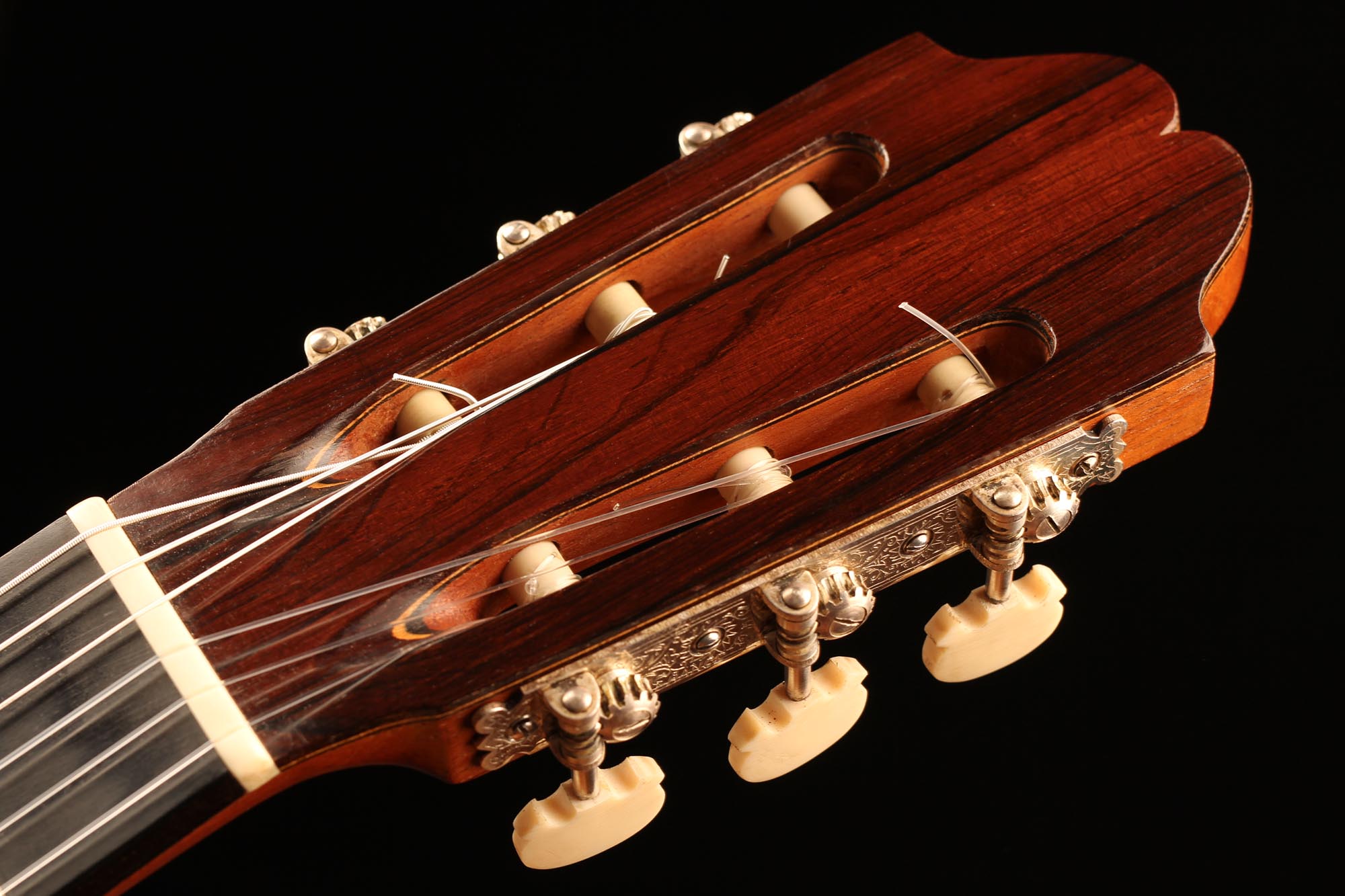 All conceivable qualities of a classical guitar are combined and united in this sophisticated instrument. Each note evolves and rings like the bell of a cathedral, with an incredible complexity and fullness. It has an endless sustain and the overtones are almost like a symphony orchestra. The dynamic possibilities are endless and the volume is remarkable. This instrument is perfectly tuned and allows the guitarist to play freely with ease.