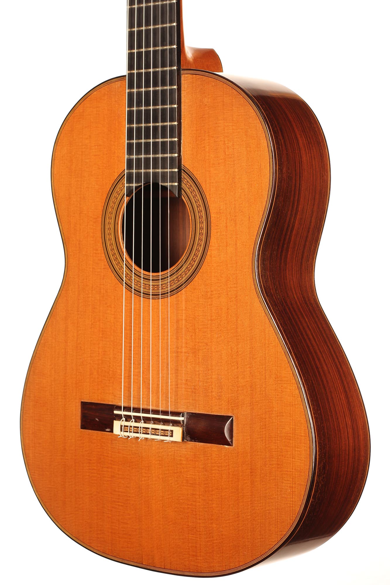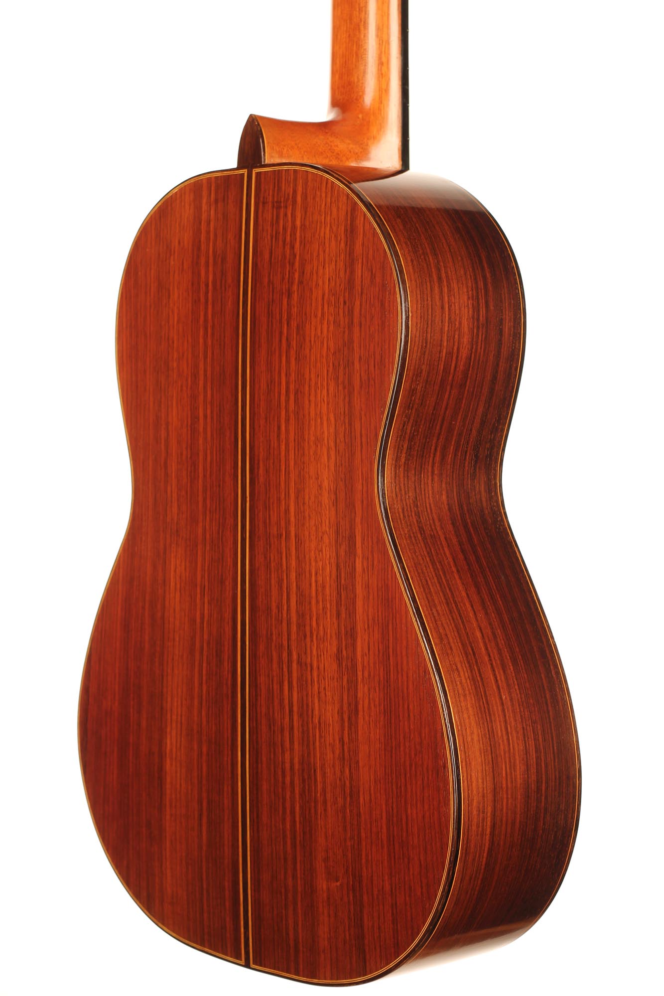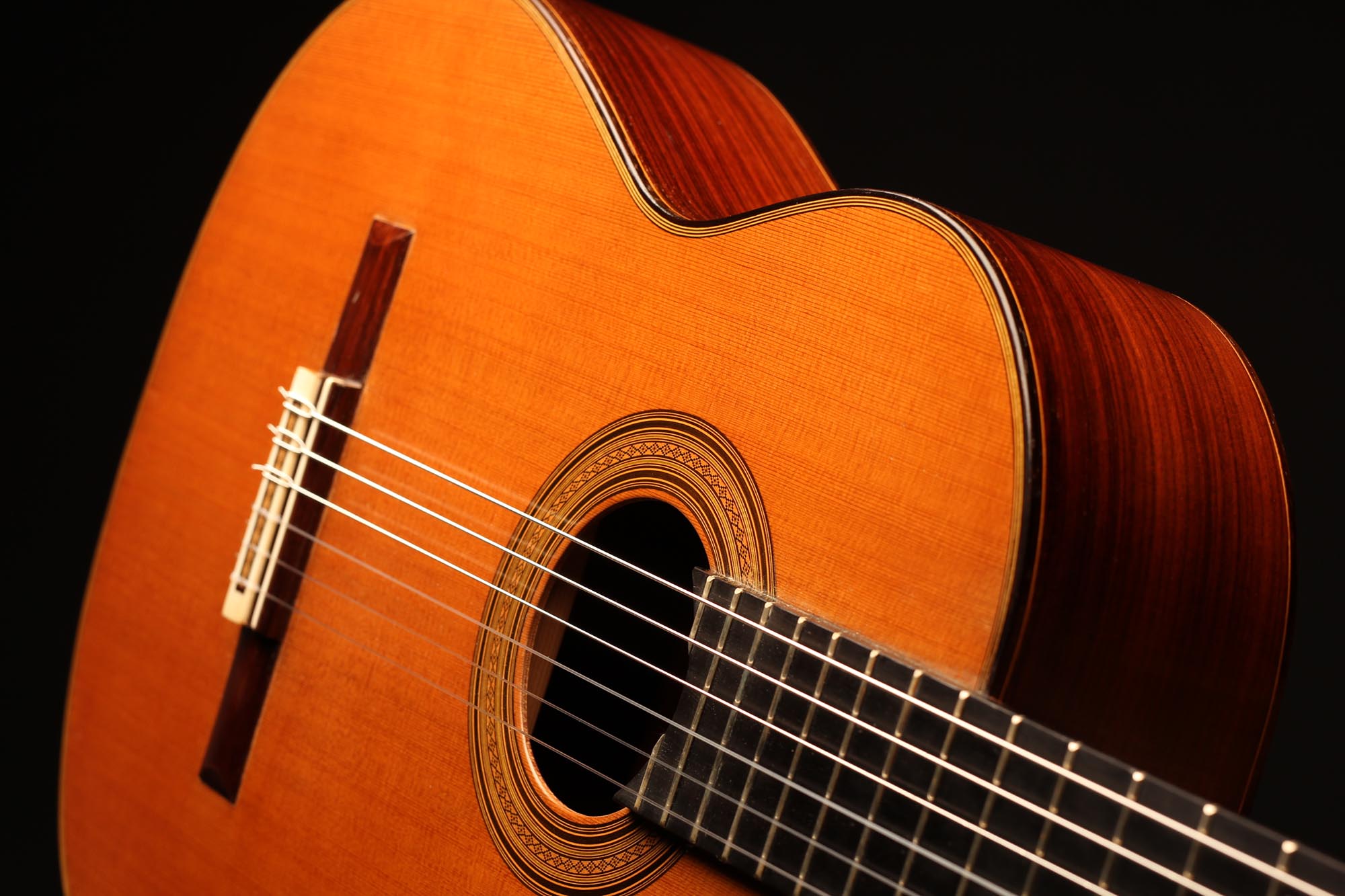 All conceivable qualities of a classical guitar are combined and united in this sophisticated instrument. Each note evolves and rings like the bell of a cathedral, with an incredible complexity and fullness. It has an endless sustain and the overtones are almost like a symphony orchestra. The dynamic possibilities are endless and the volume is remarkable. This instrument is perfectly tuned and allows the guitarist to play freely with ease.