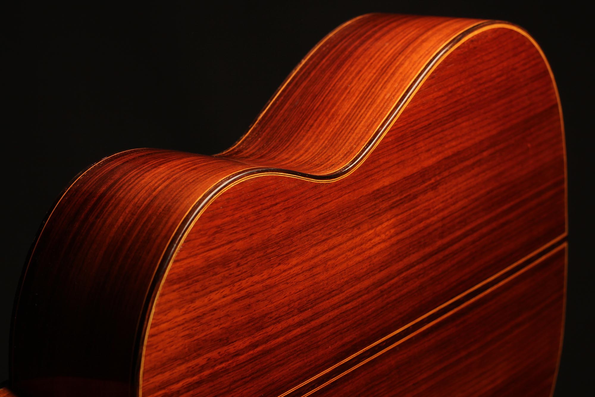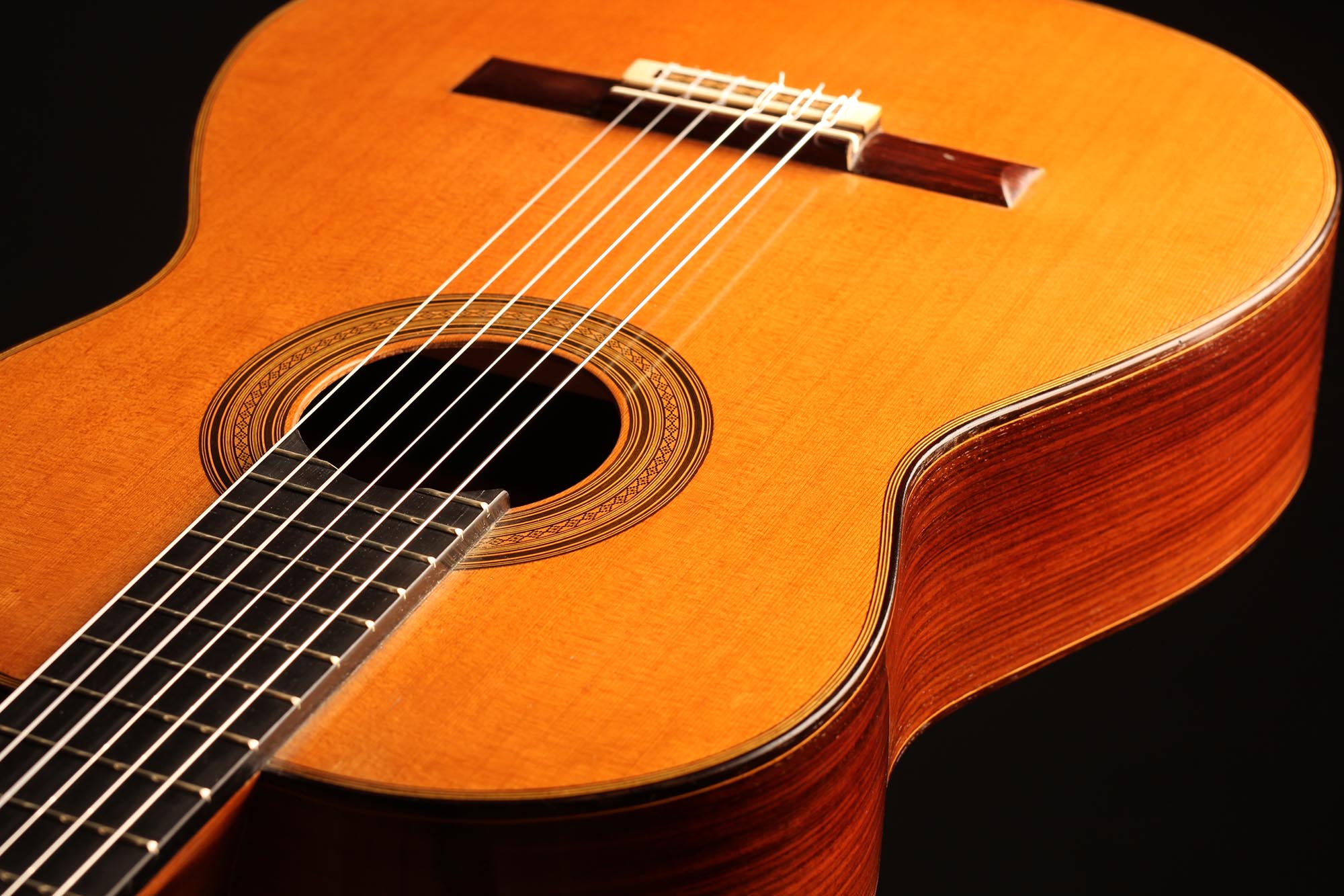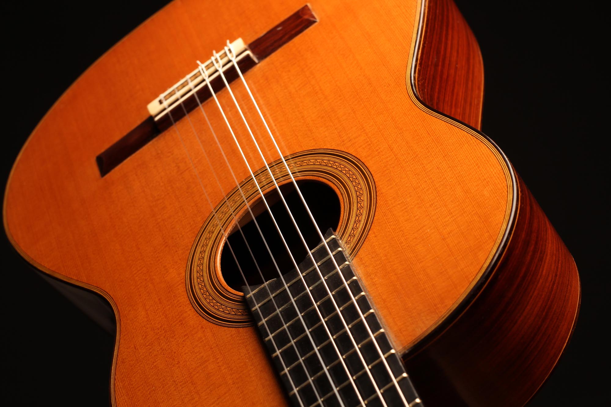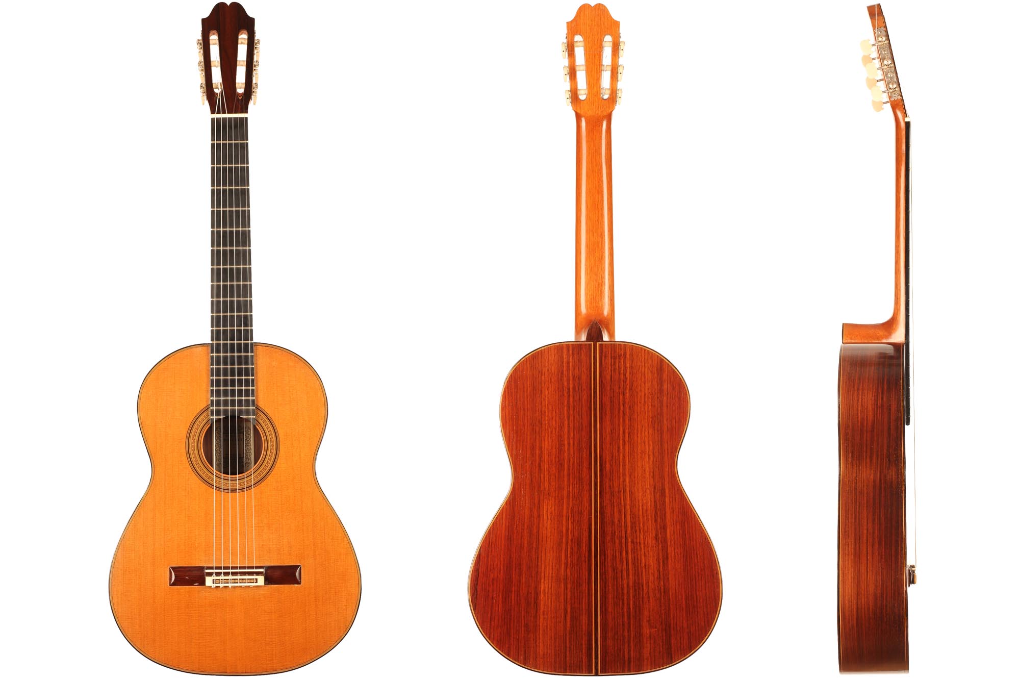 All conceivable qualities of a classical guitar are combined and united in this sophisticated instrument. Each note evolves and rings like the bell of a cathedral, with an incredible complexity and fullness. It has an endless sustain and the overtones are almost like a symphony orchestra. The dynamic possibilities are endless and the volume is remarkable. This instrument is perfectly tuned and allows the guitarist to play freely with ease.