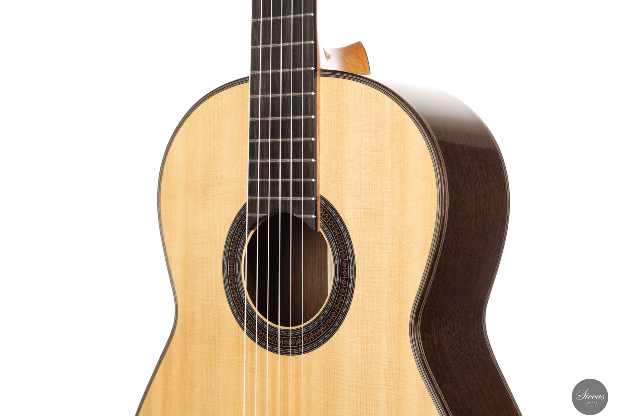 The classical guitar, with its soft nylon strings and characteristic timbre, has become a symbol of chamber music, Spanish tradition, and concert repertoire. Its modern form was shaped by Antonio de Torres in the 19th century, setting the standard for the body, fan bracing, and the 65-centimeter scale length that are still used today. Instruments in this category open up a rich palette from the refined Romantic miniatures of Tárrega to the majestic concertos of Rodrigo. Here you will find guitars that preserve historical continuity and at the same time inspire new interpretations.