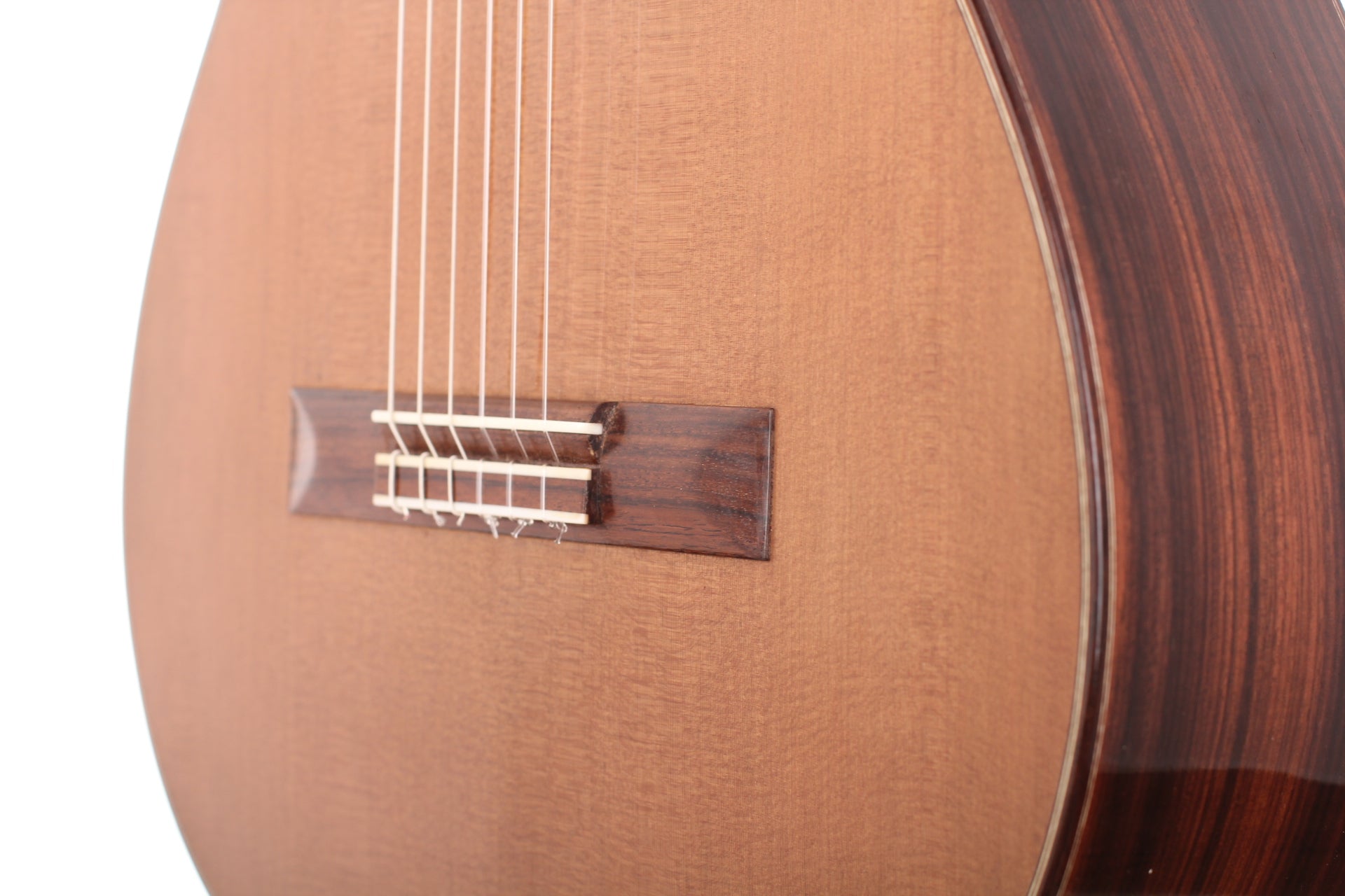 Luthier: Andrea TacchiConstruction Year: 1994Construction Type: TraditionalTop: CedarBack and Sides: Indian rosewoodSoundboard Finish: NitrocelluloseBody Finish: NitrocelluloseAir Body Frequency: F sharp / GWeight (g): 1630Tuner: FusteroCondition: Excellent