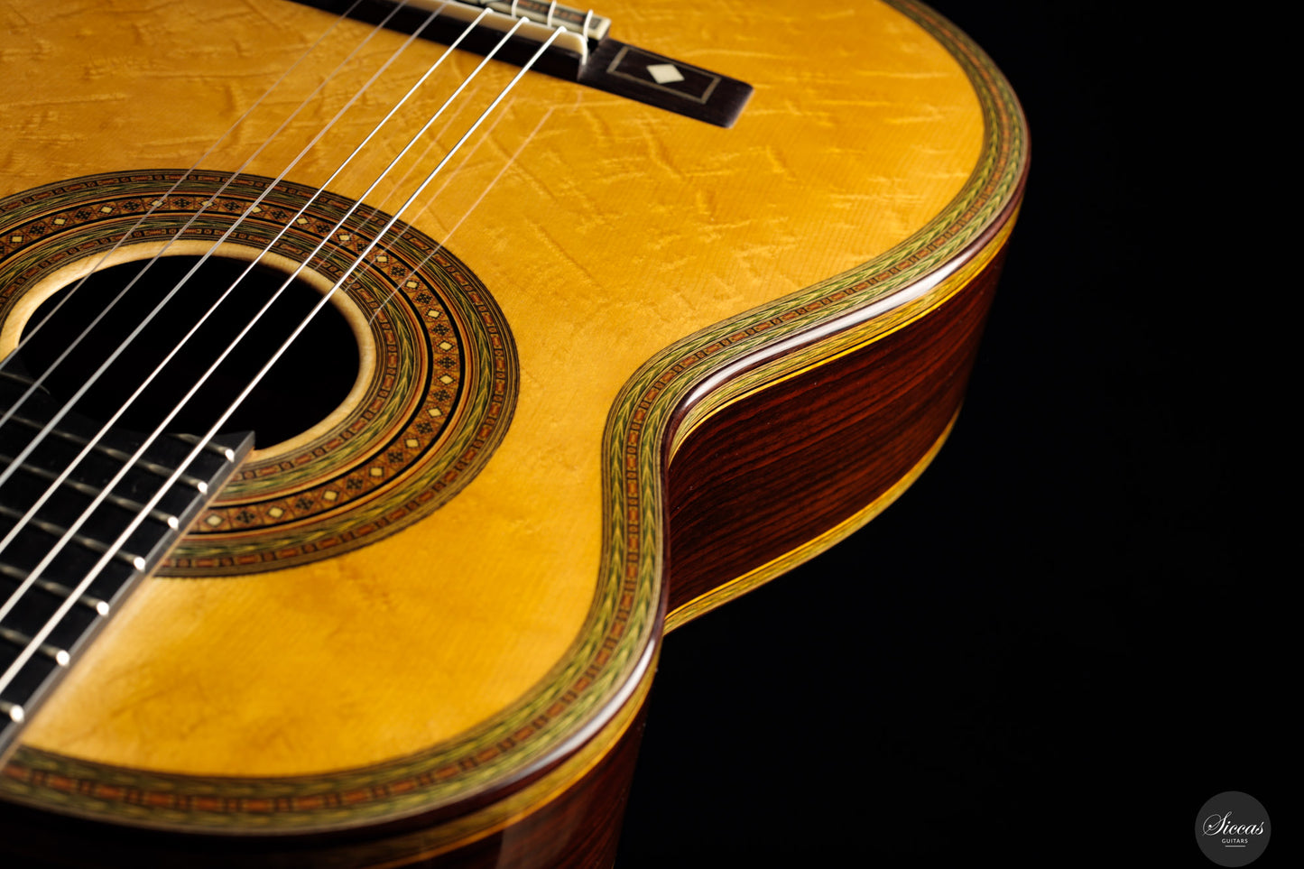 Tonally, the guitar offers a warm, intimate sound with excellent projection when played with intensity. The first string sings effortlessly, and the instrument responds with clarity and elegance across its entire range. This Meisterstück embodies a thoughtful synthesis of Roy Fankhänel’s craftsmanship and artistic sensibility.