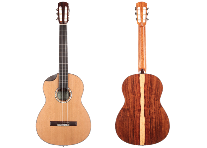 Price: $7,083Sale price $7,083 Price:Unit price / per Tax free (0% BM)$0Save: $-7,083Luthier: Elvis PajaresConstruction Year: 2025Construction Type: Double TopTop: CedarBack and Sides: Indian rosewoodSoundboard Finish: French polishBody Finish: French polishAir Body Frequency: F / F sharpWeight (g): 1415Tuner: Kris BarnettCondition: New -