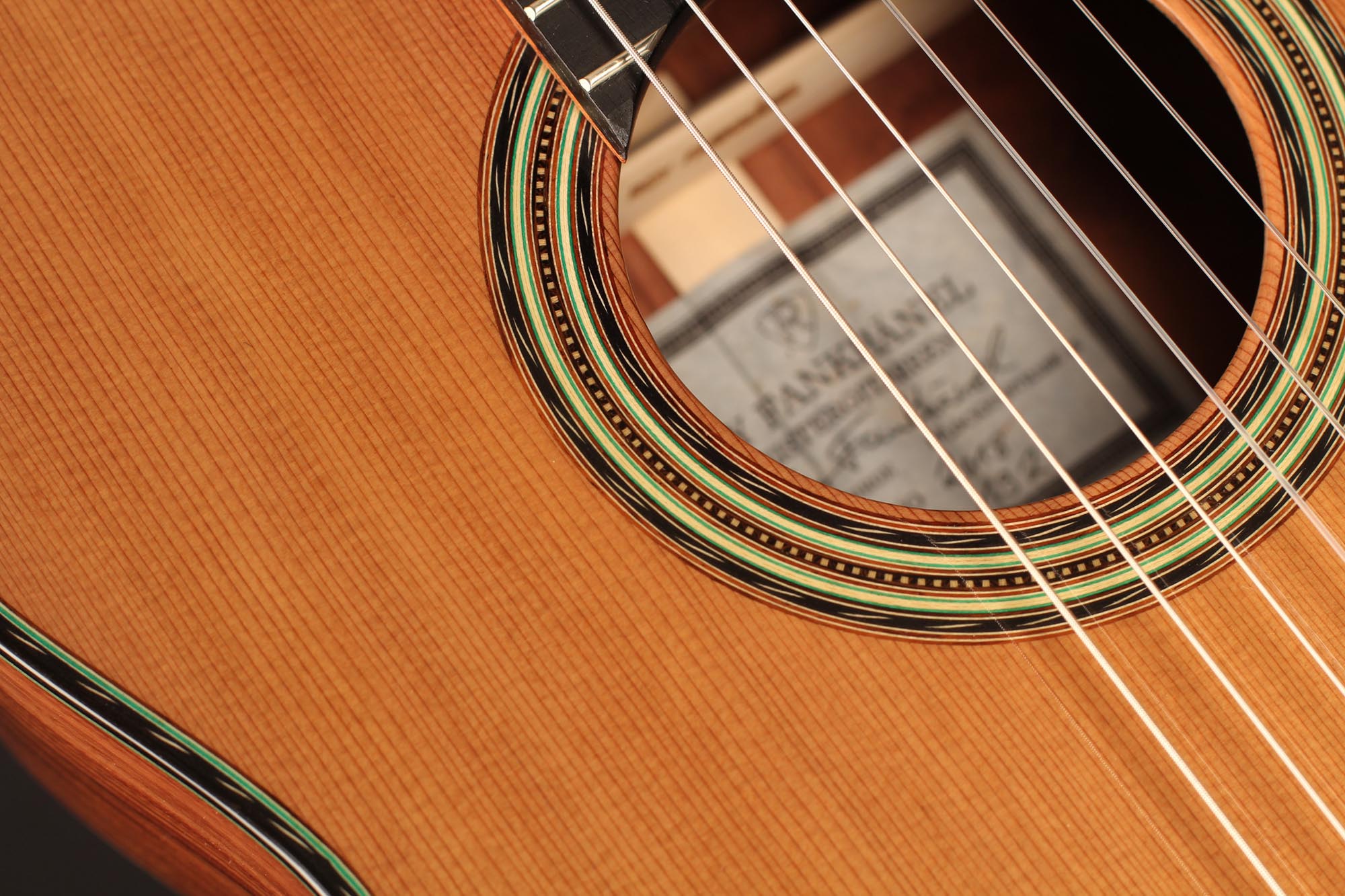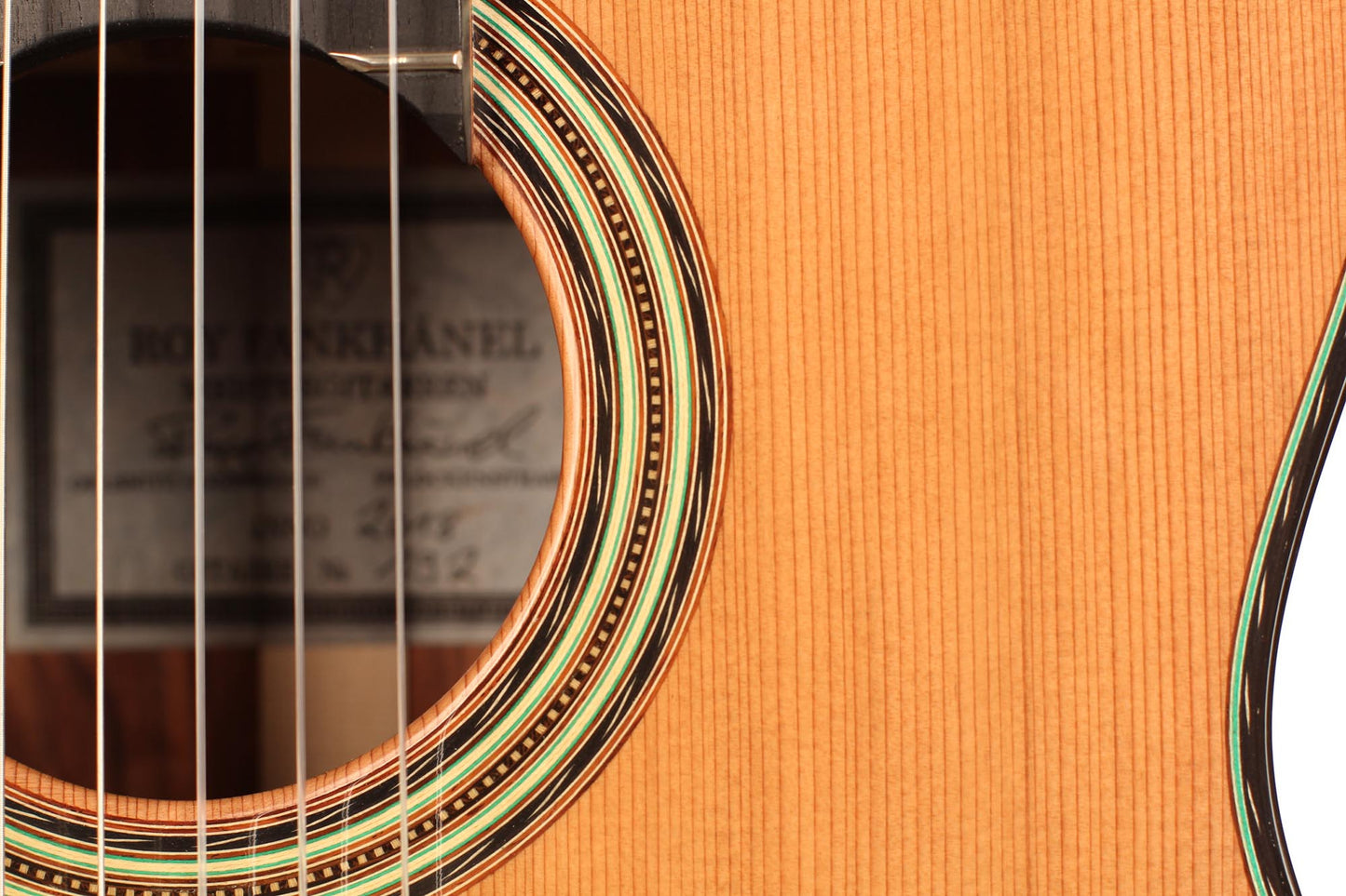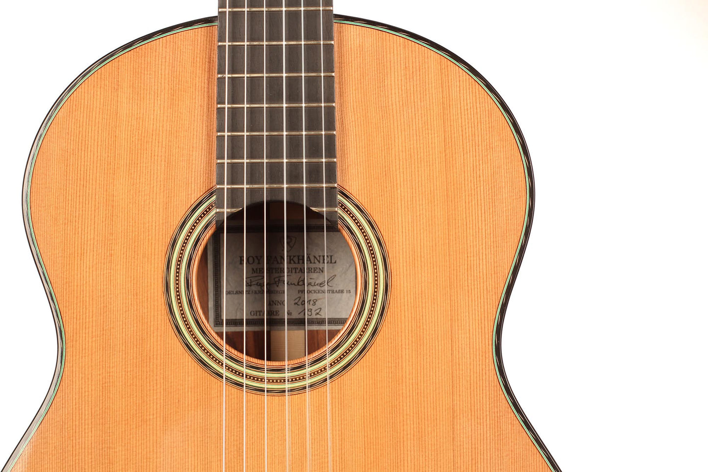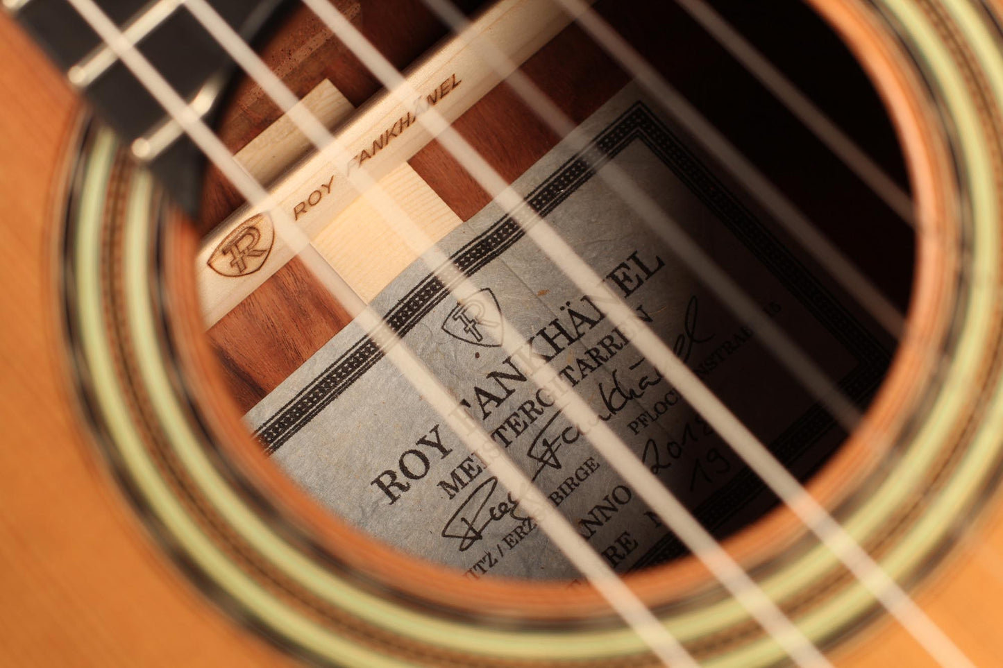Roy Fankhänel’s workshop is located in Oelsnitz, Germany, where he builds guitars in the German tradition. He shows a very high level of craftmanship that can be seen in features such as the V-joint, the details of the rosette, the design of the head and the quality of the construction in general. His guitars are powerful instruments with a generous rich sound. They are very easy to play and feature a slightly radiused elevated fingerboard.