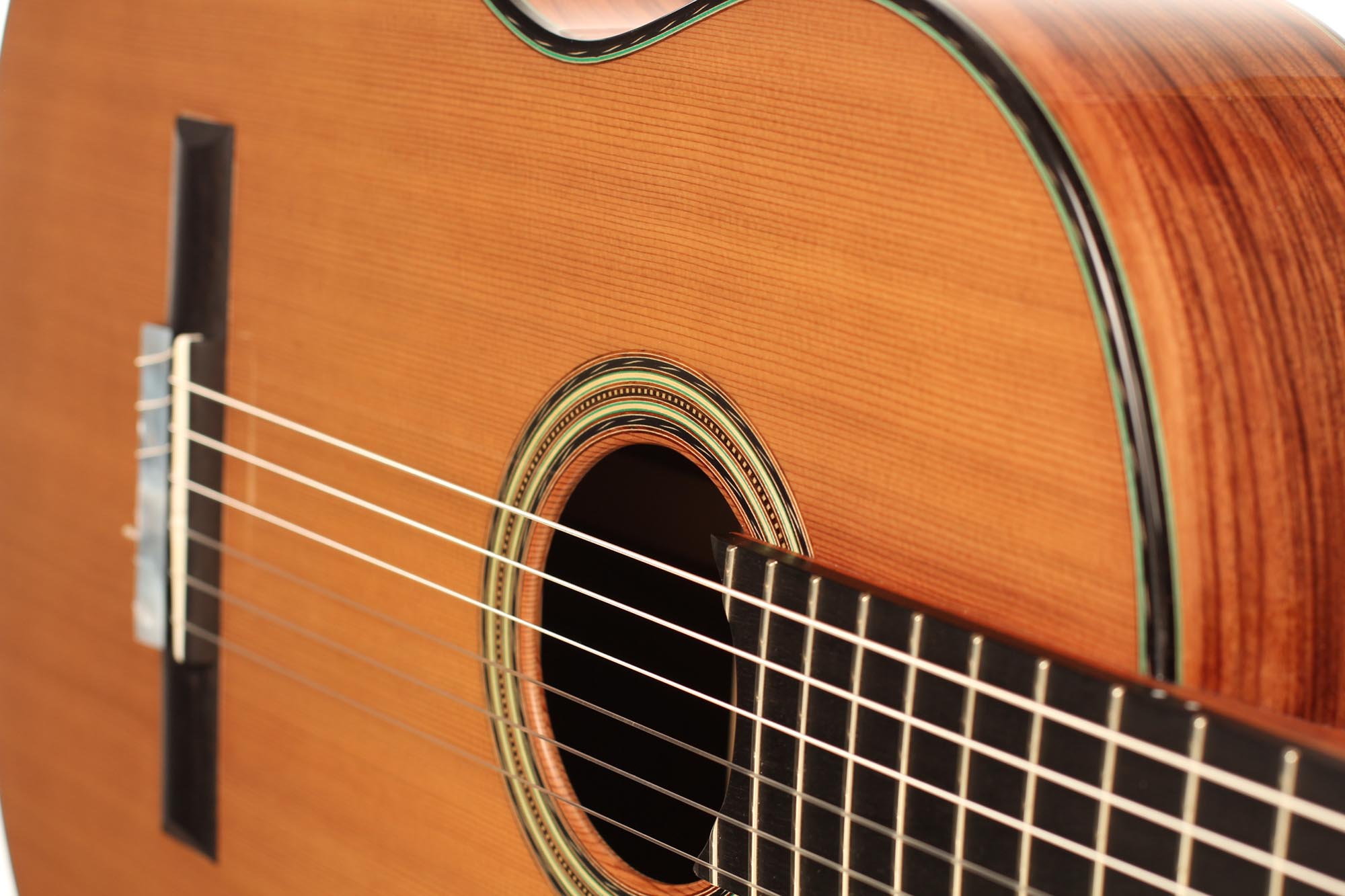 This cedar top instrument has an extraordinary openness. It has generous complex basses, rather reactive with a lot of sustain and intense trebles with abundant overtones.