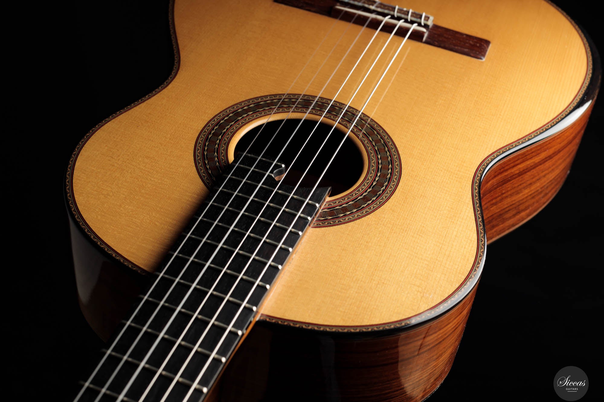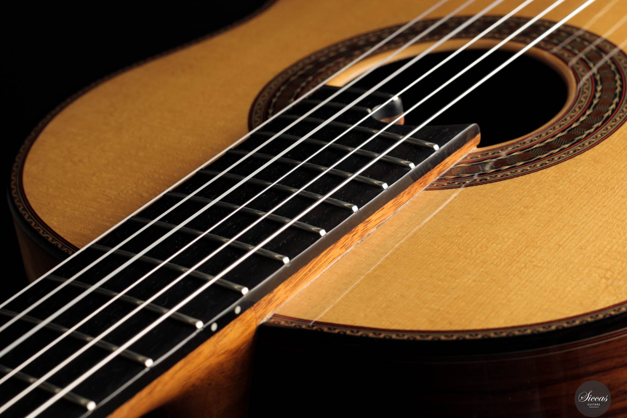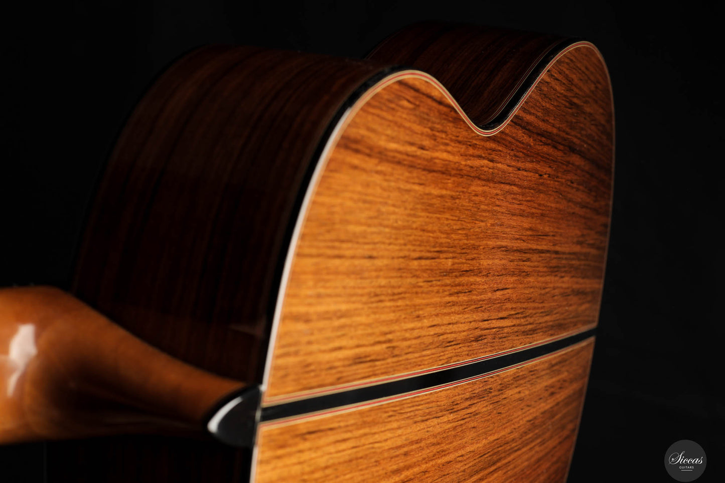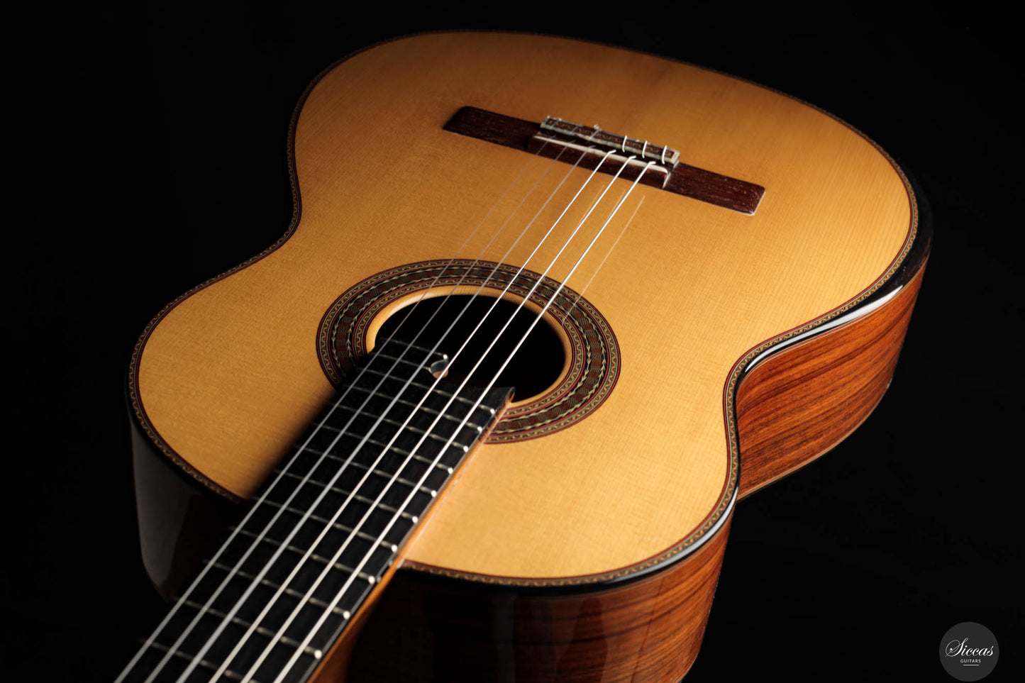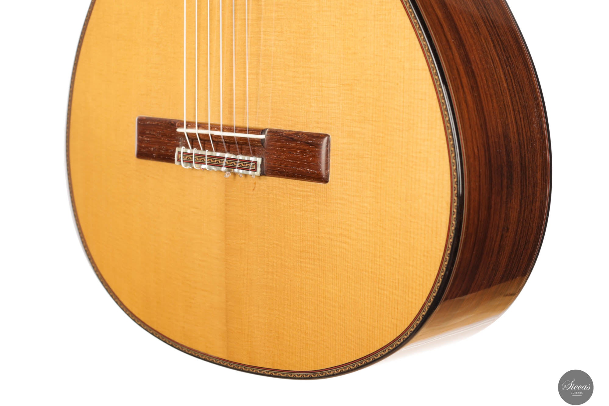 Roy Fankhänel’s runs his workshop in Oelsnitz, Germany, where he builds guitars in the German tradition. He shows a very high level of craftmanship that can be seen in features such as the V-joint, the details of the rosette, the design of the head and the quality of the construction in general. His guitars are powerful instruments with a generous rich sound. They are very easy to play and feature a slightly radiused elevated fingerboard.